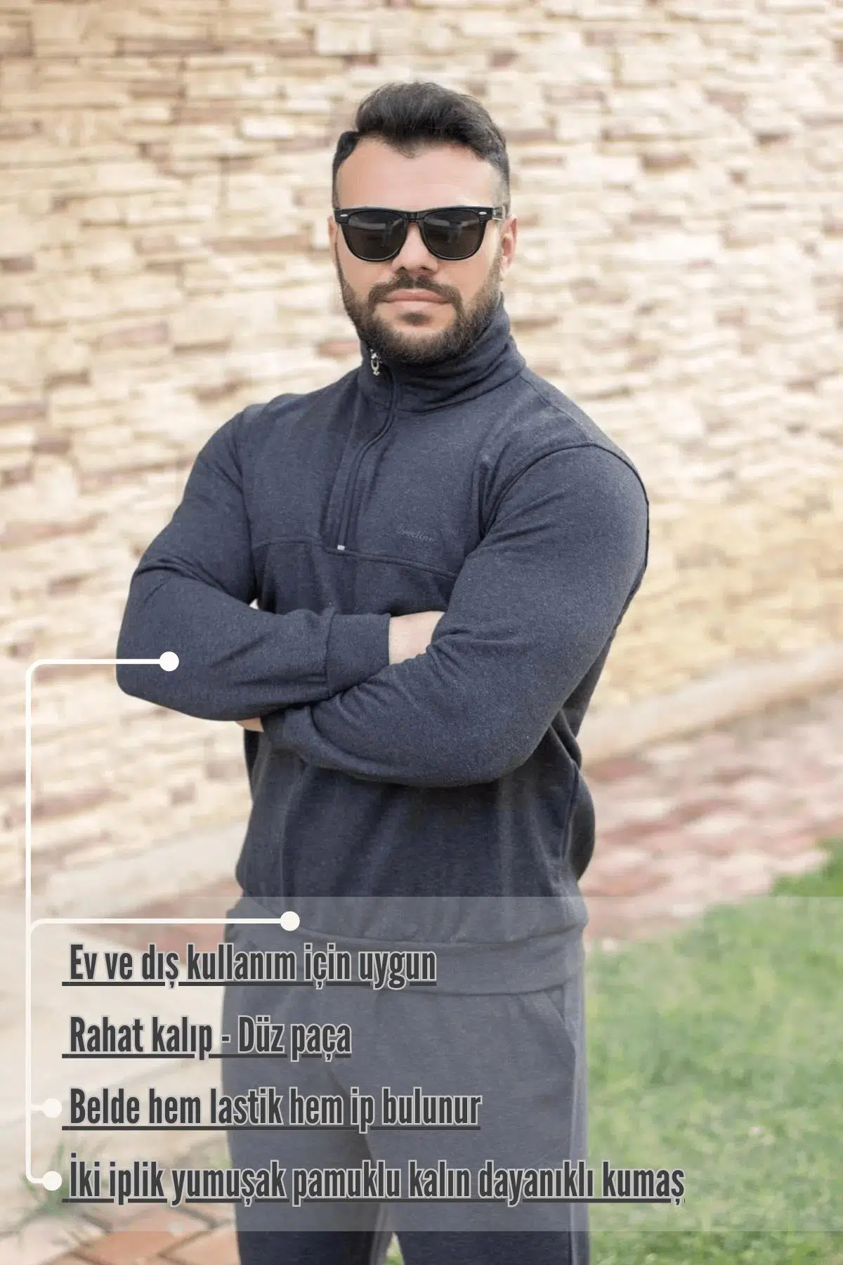 | Etiketler | Antrasit Battal Büyük - Normal Beden Yarım Fermuarlı Erkek Eşofman Takımı 21EESTYAKT |