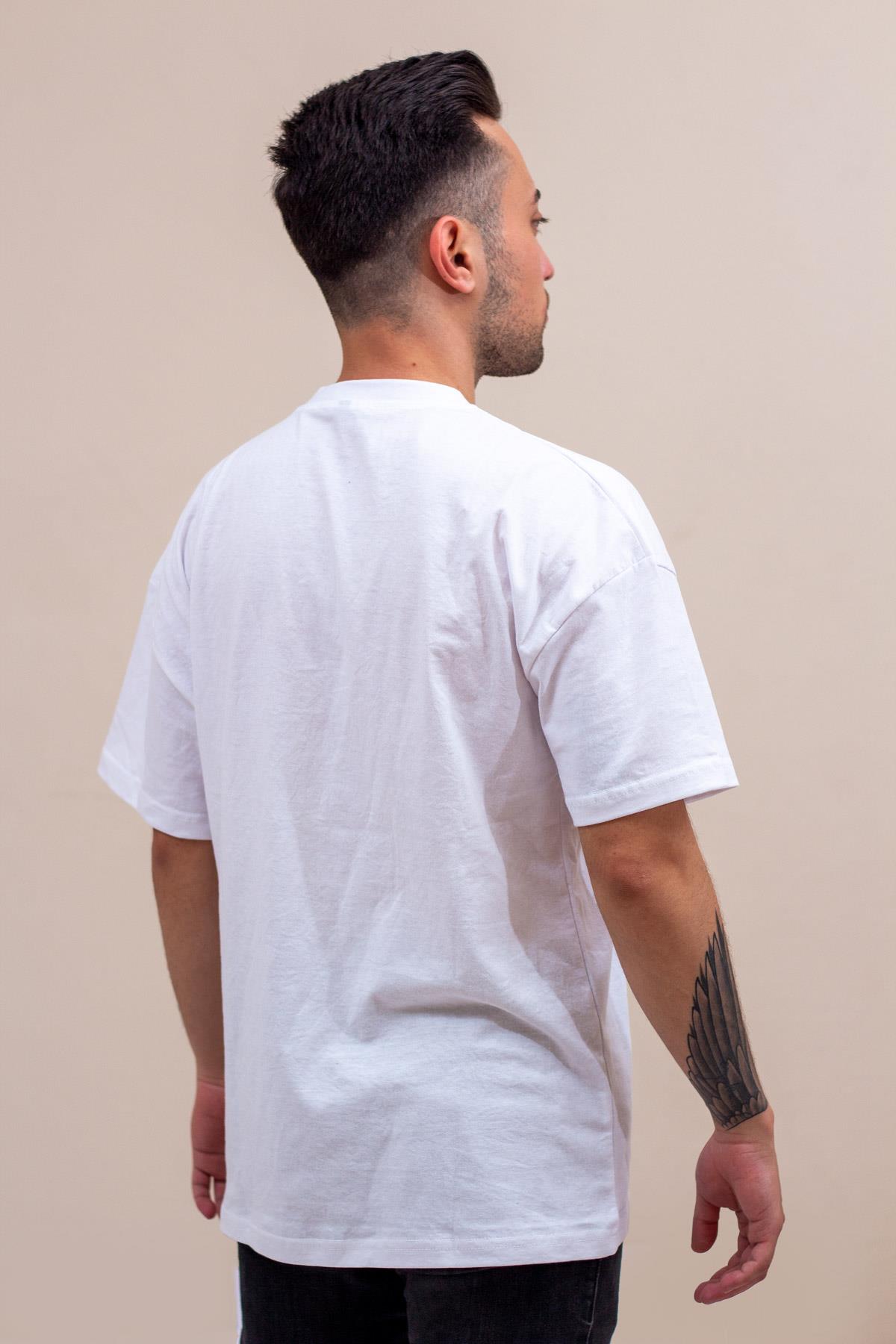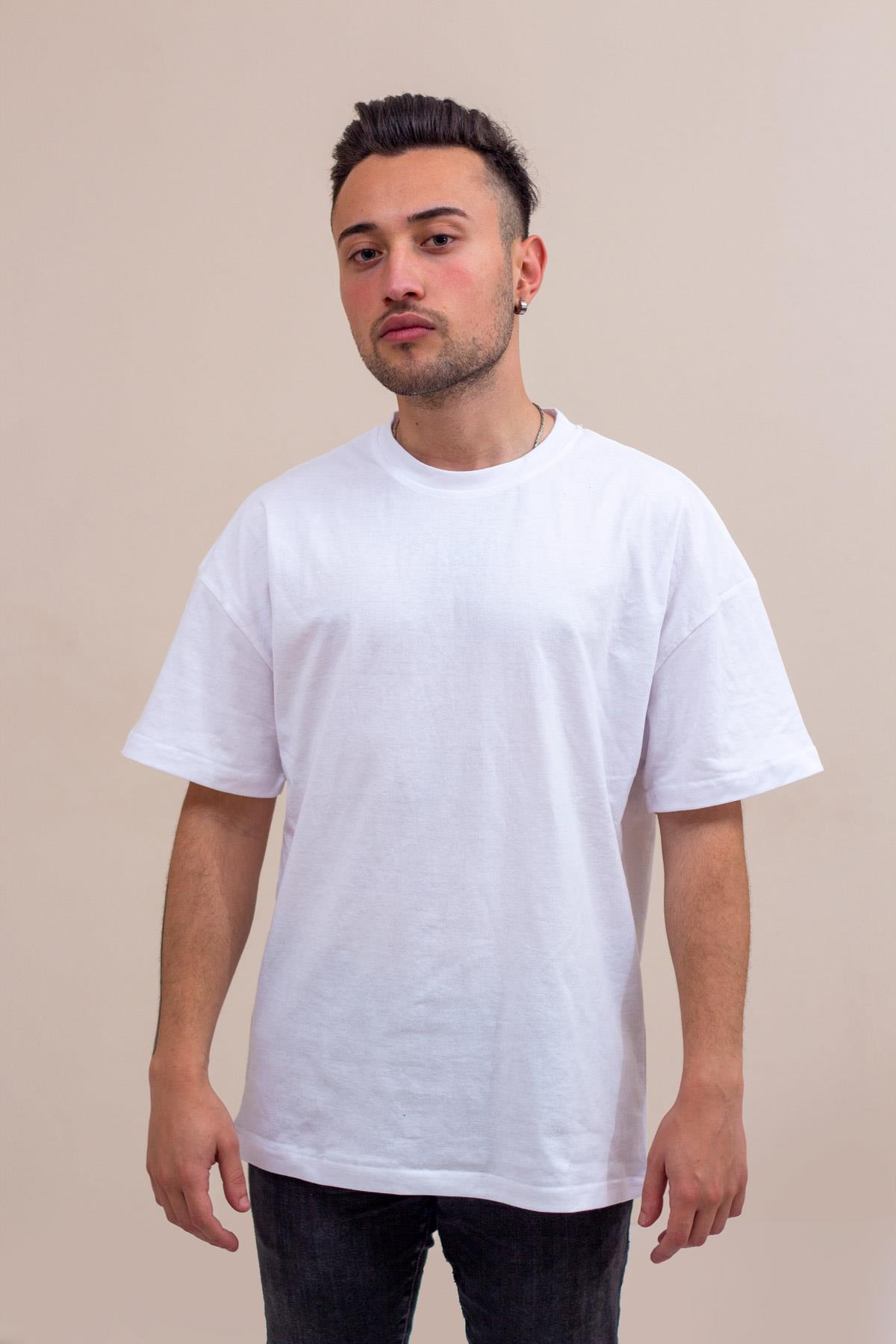 Beyaz Basic Düz Baskısız Pamuklu Oversize Tişört 22ETSHOVRSModel üstündeki beden : S