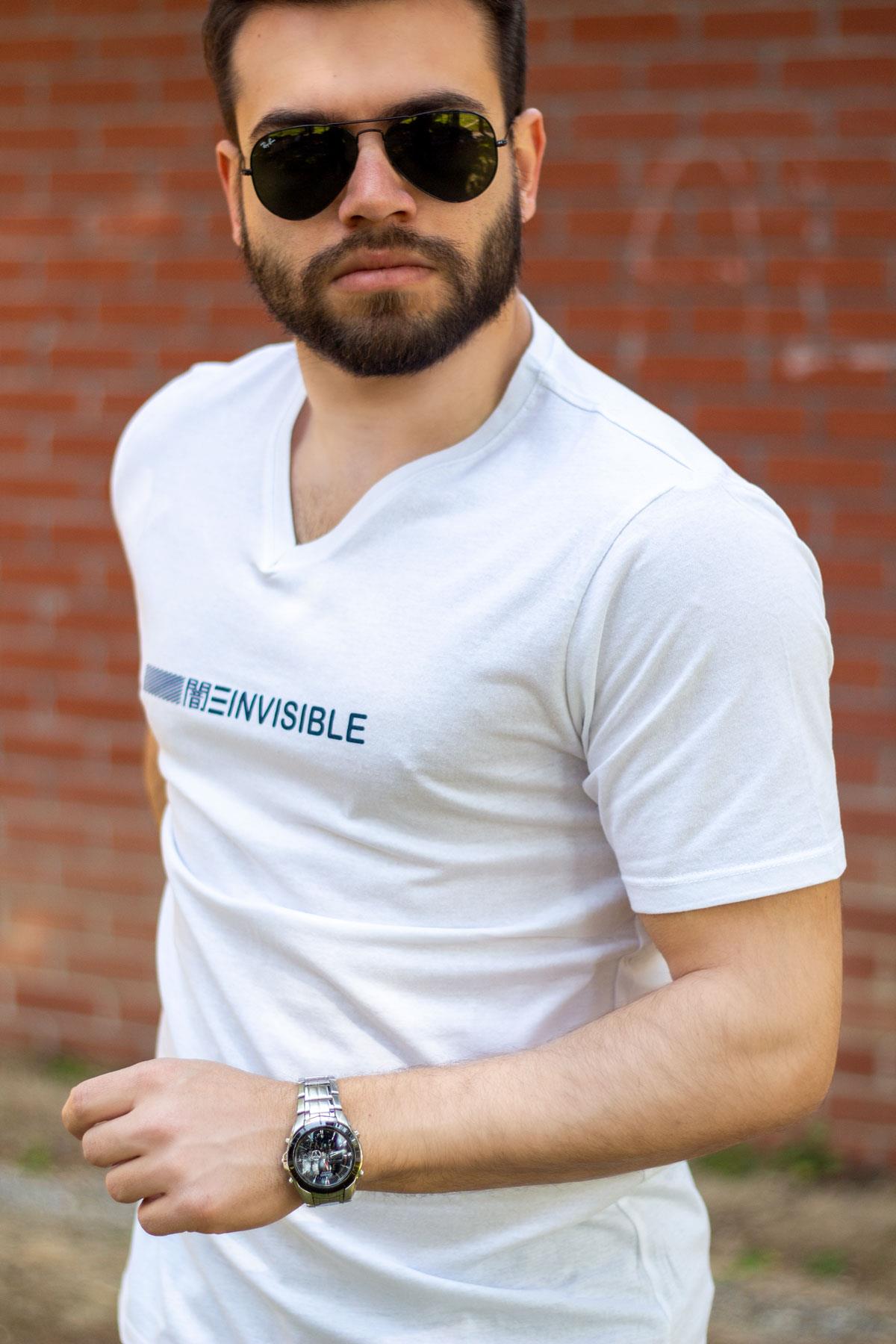 EtiketlerBeyaz Invisible Yazılı Kısa Kollu V Yaka Erkek Tişört 20ETSHNVSB