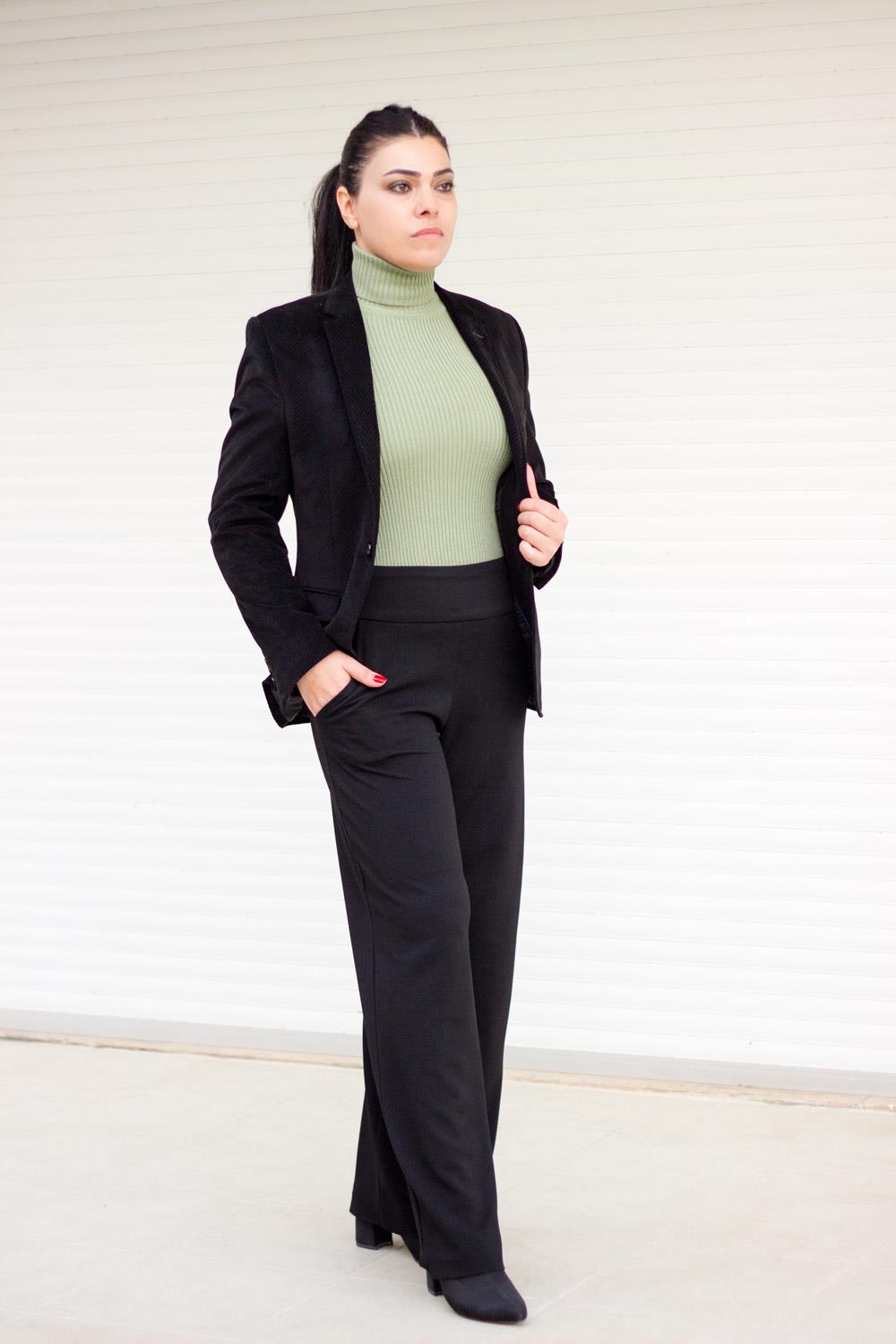 Siyah Tam Balıkçı Yaka Fitilli Triko Kadın Kazak 20KKZKBALK