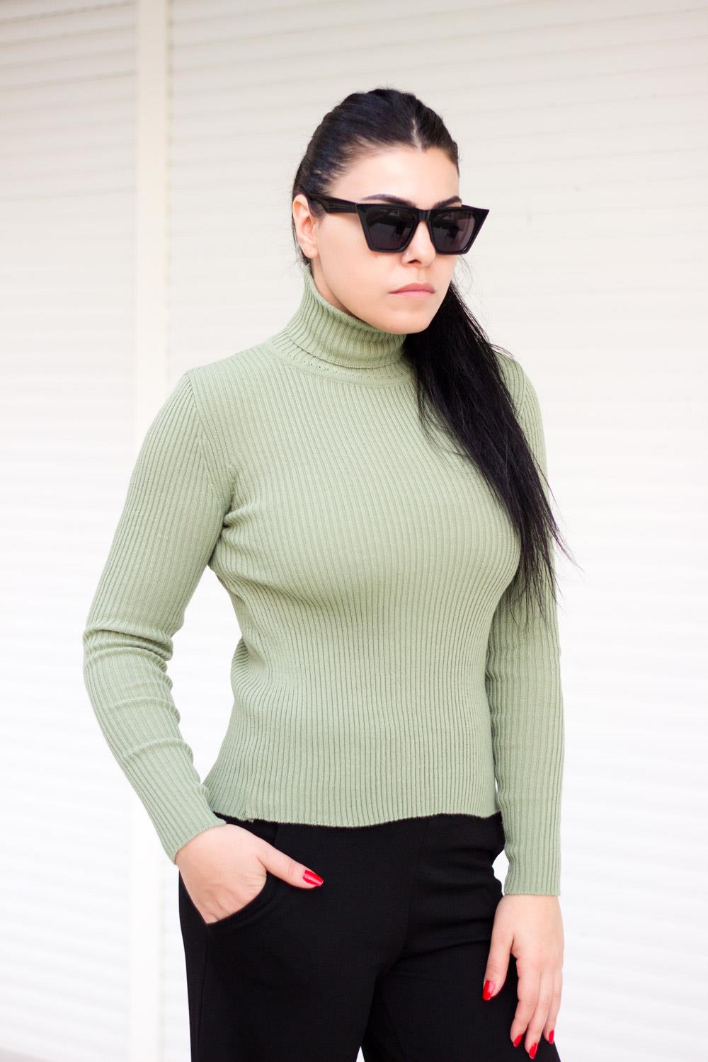 Kadın Haki Yeşil Uzun Kollu Balıkçı Yaka Fitilli Triko Kazak 20KKZKBALK