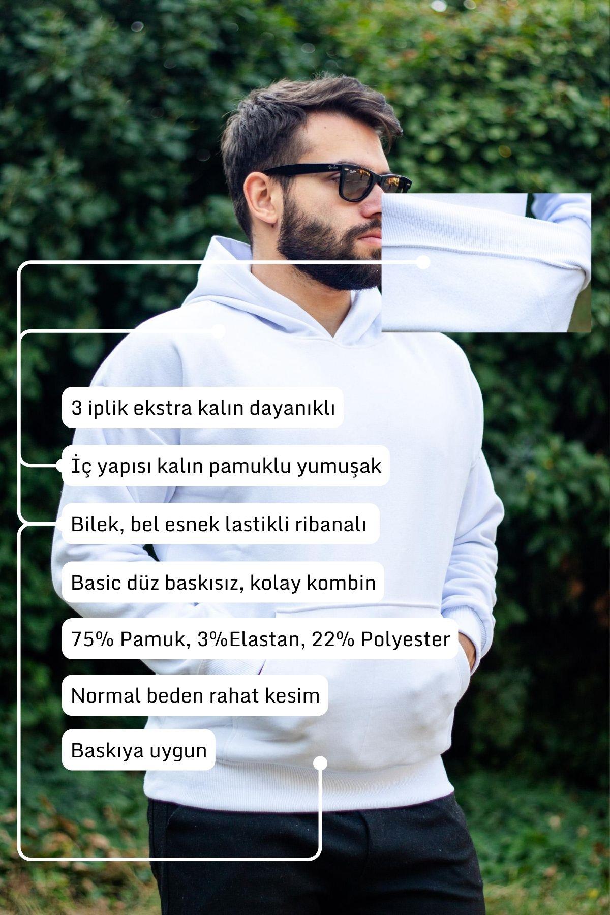| Etiketler | Erkek Beyaz Basic 3 Üç İplik Ekstra Kalın Kapüşonlu Kanguru Cep Uzun Kollu Sweatshirt 23ESWTUCPL |