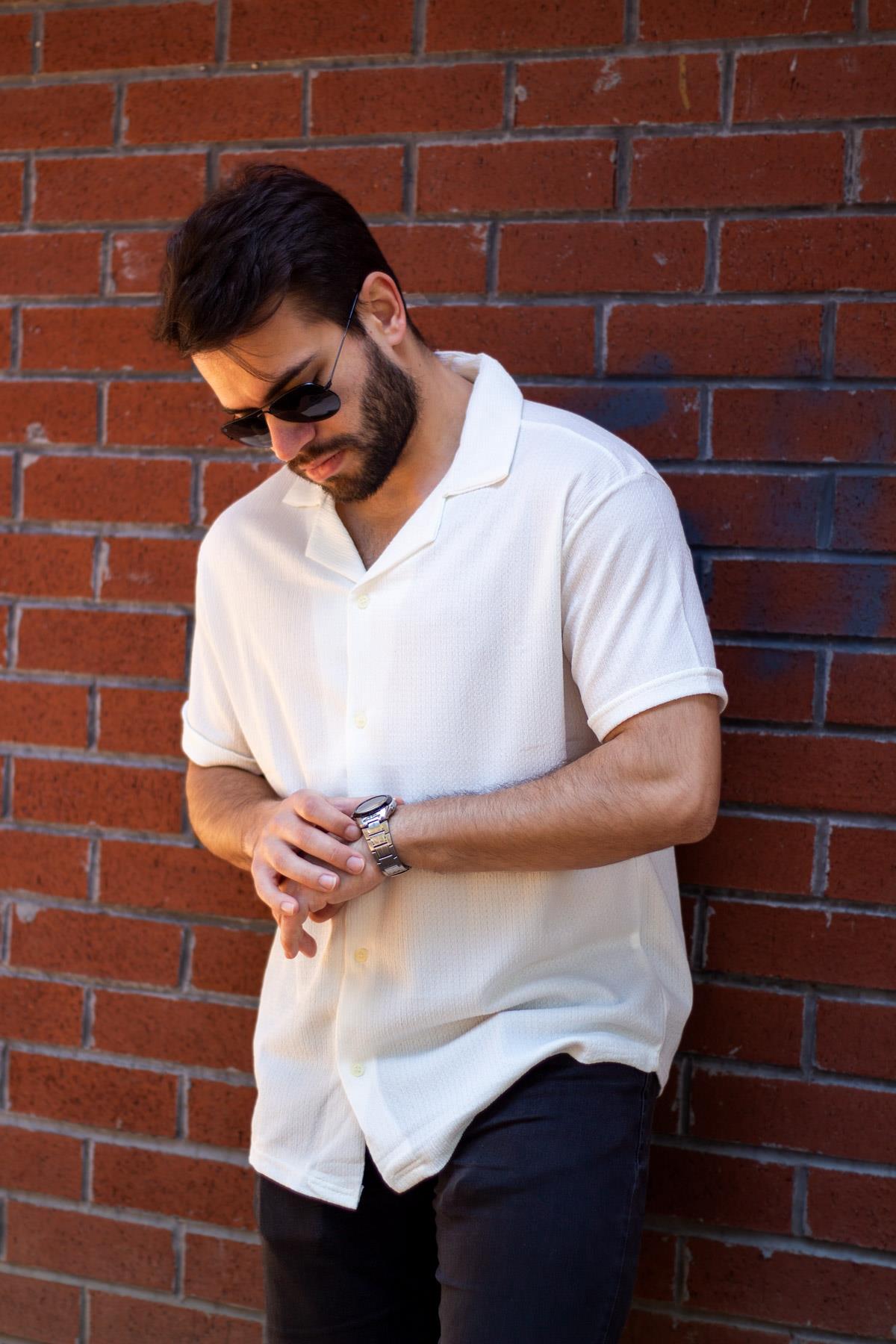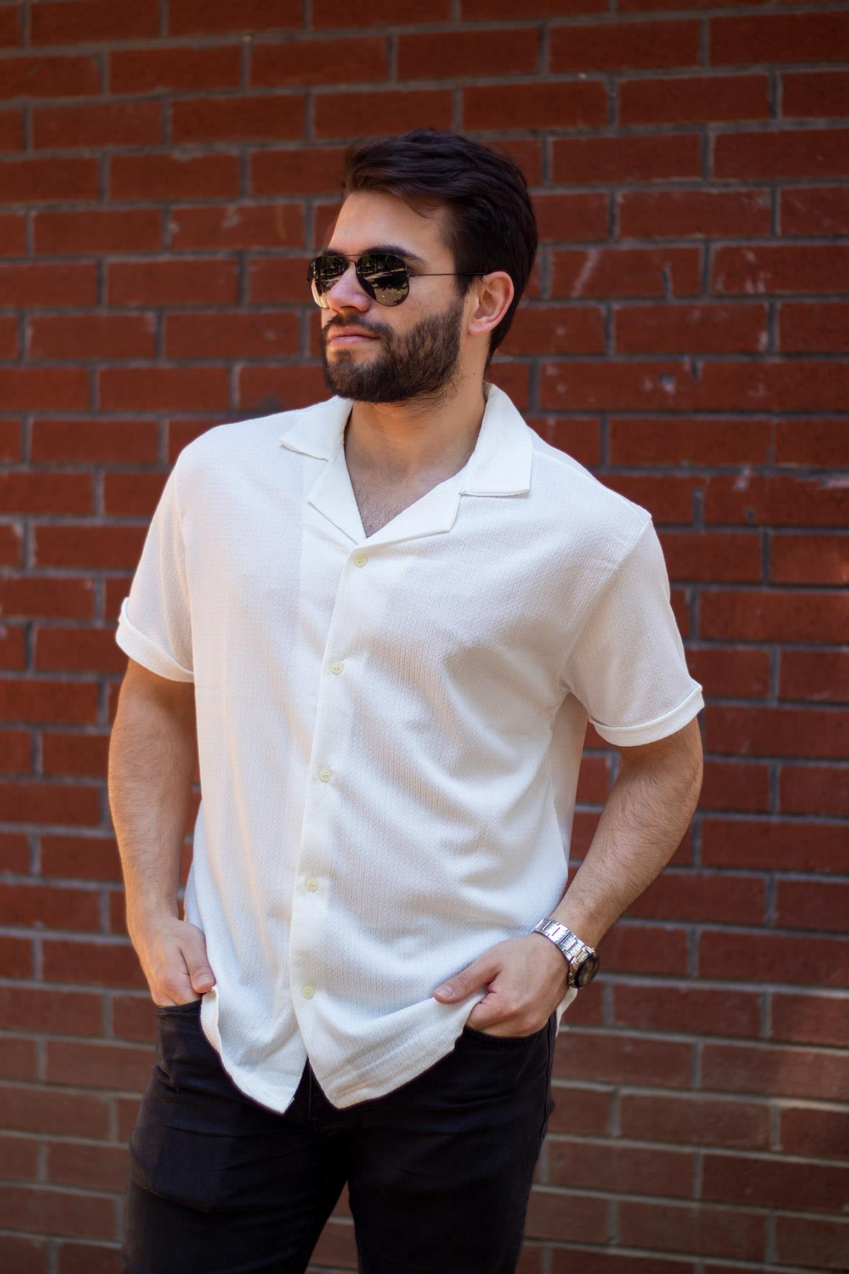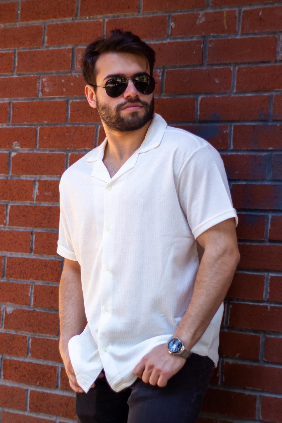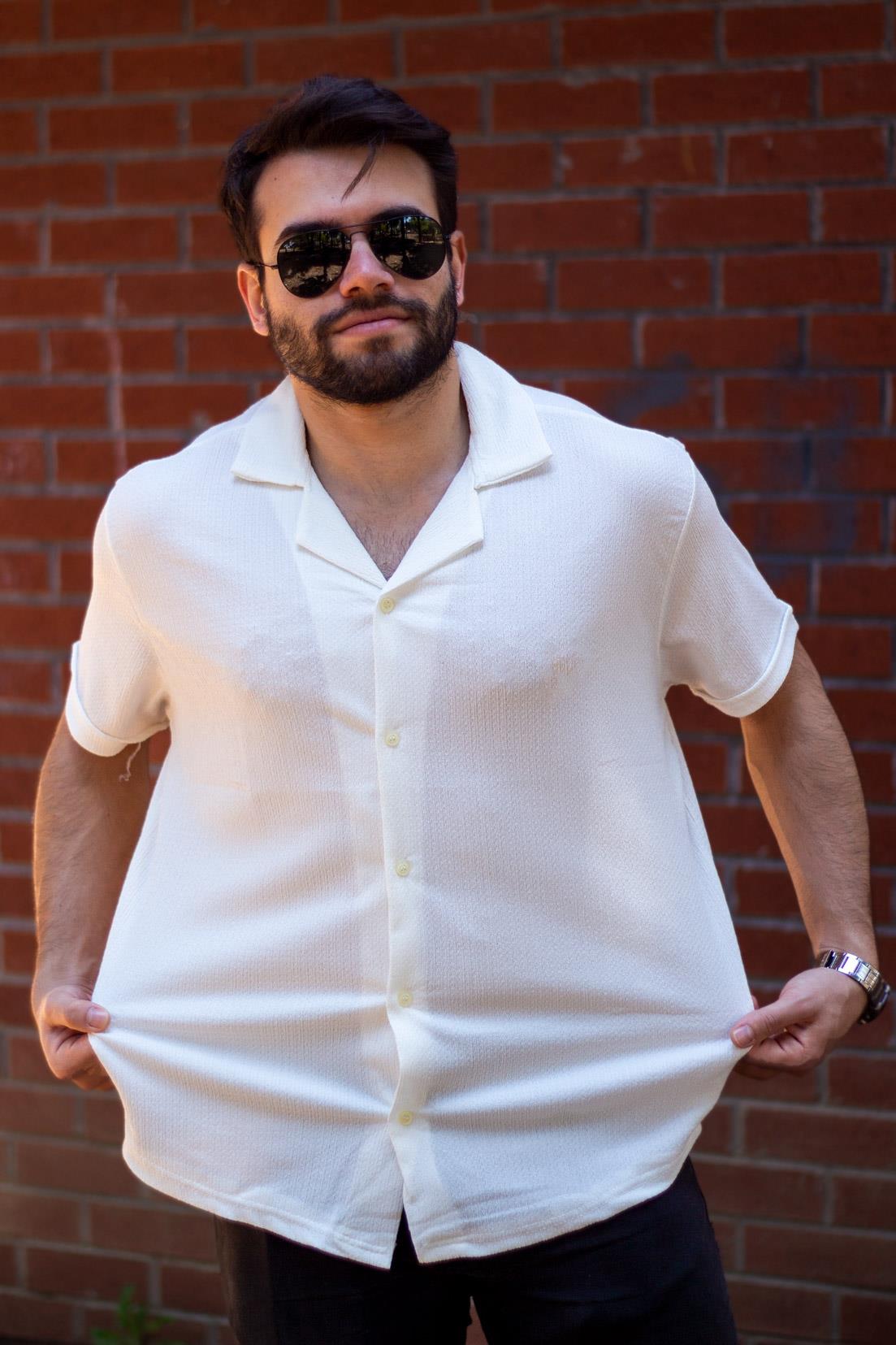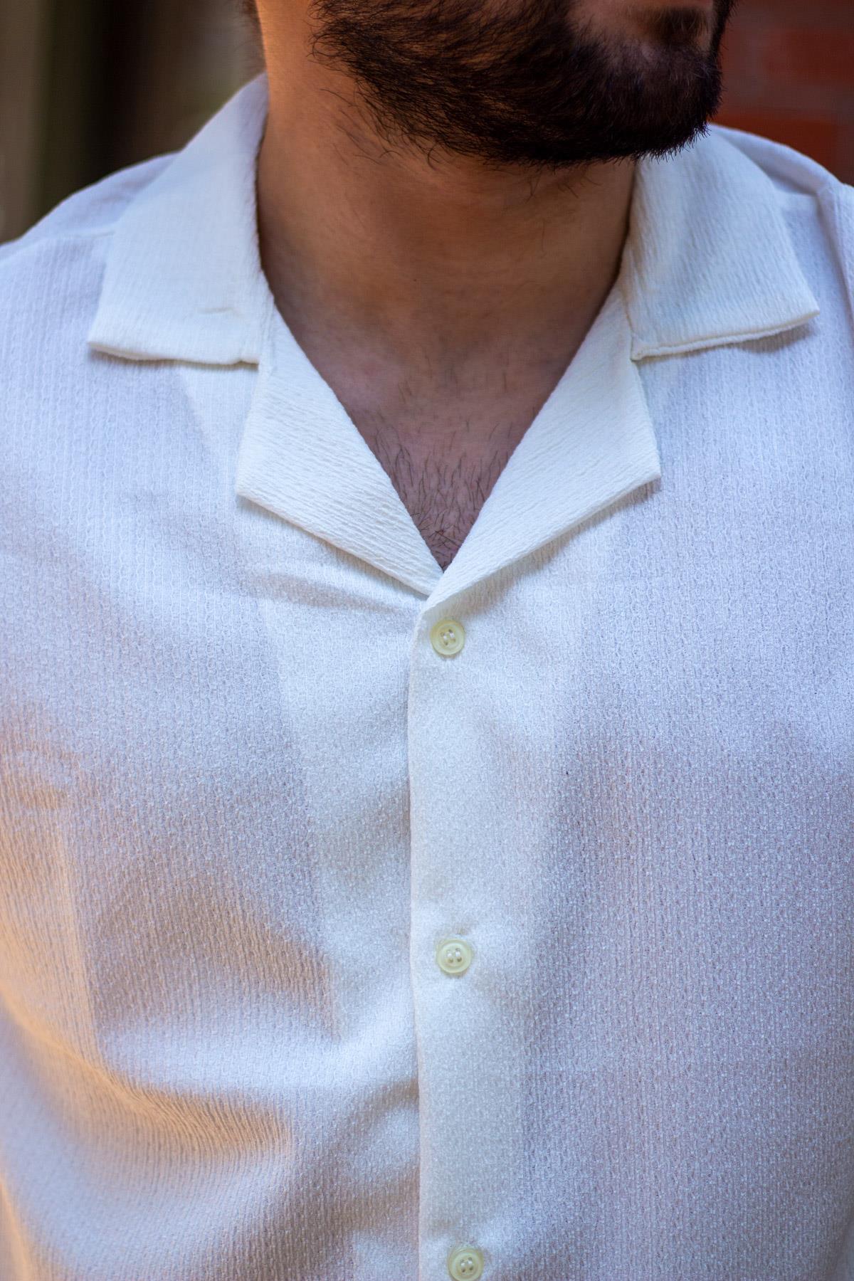 • Erkek Beyaz Krep Kumaş İtalyan Kesim Rahat Gömlek 23EGMLCARP