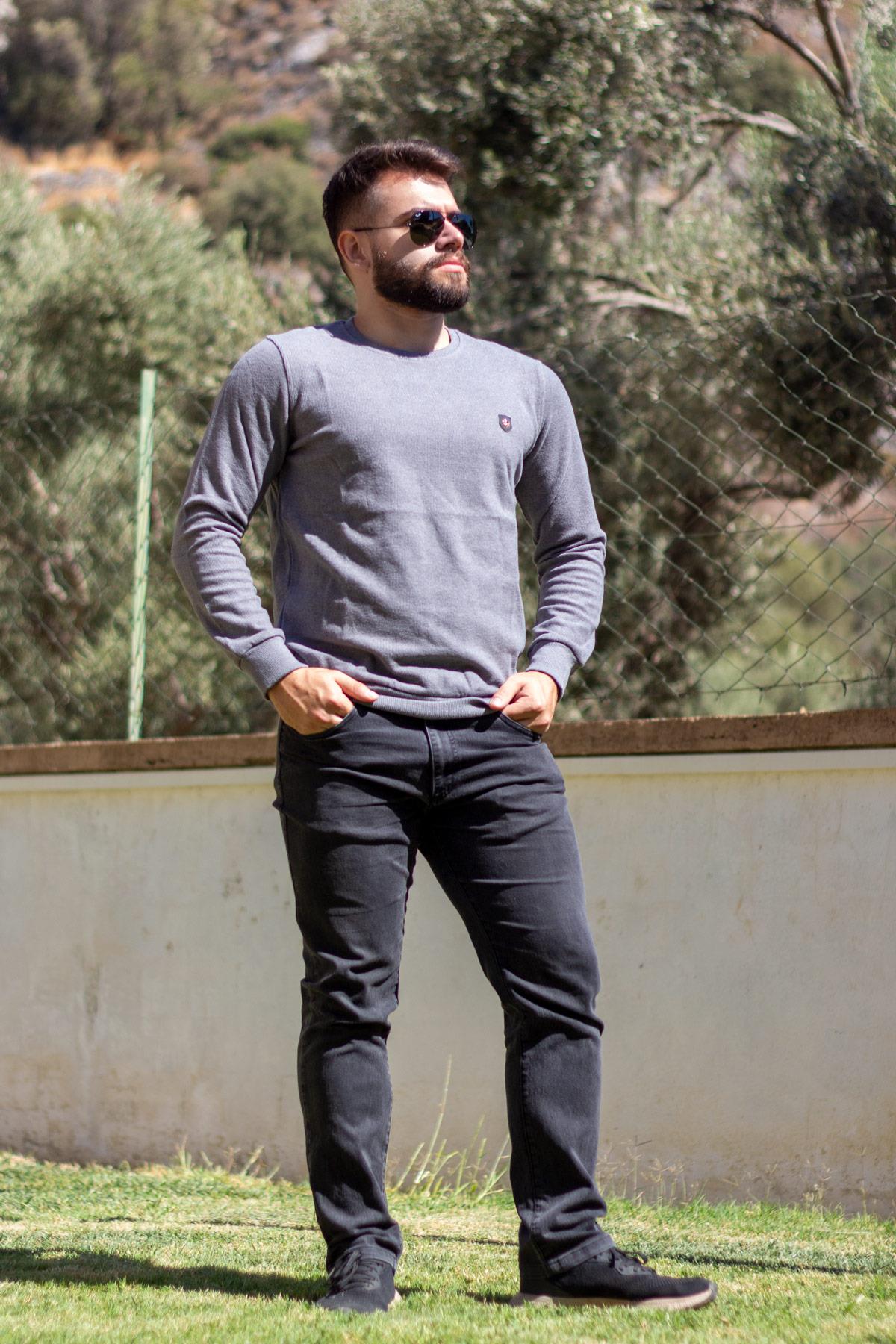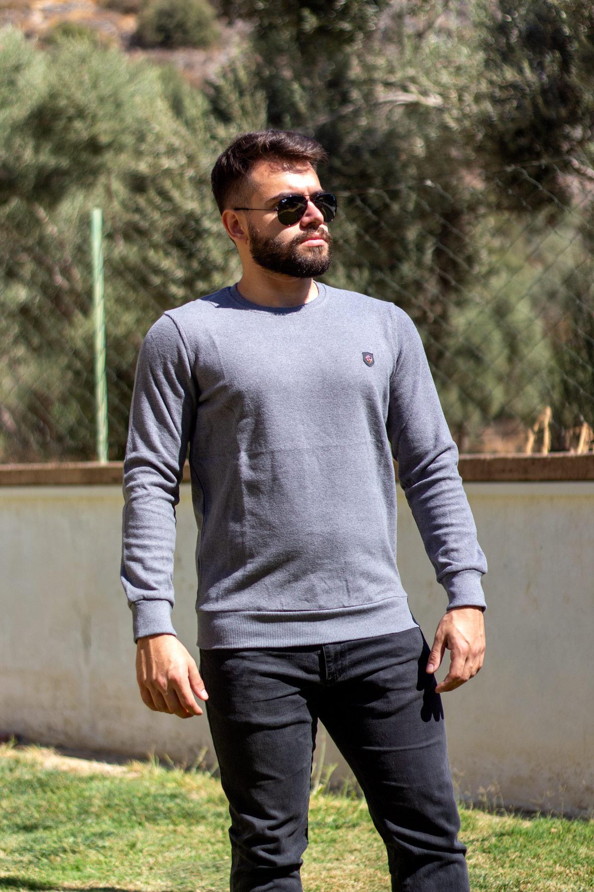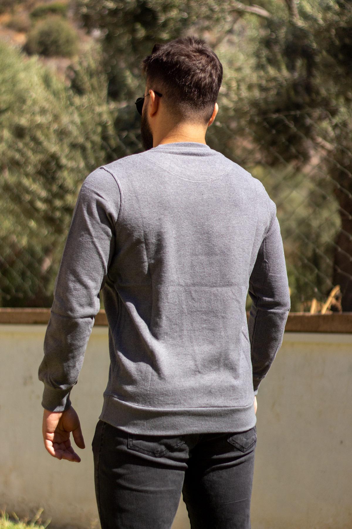 Erkek Gri Melanj Fitilli Selanik Kumaş Sweat Kazak 21EKZKFILL