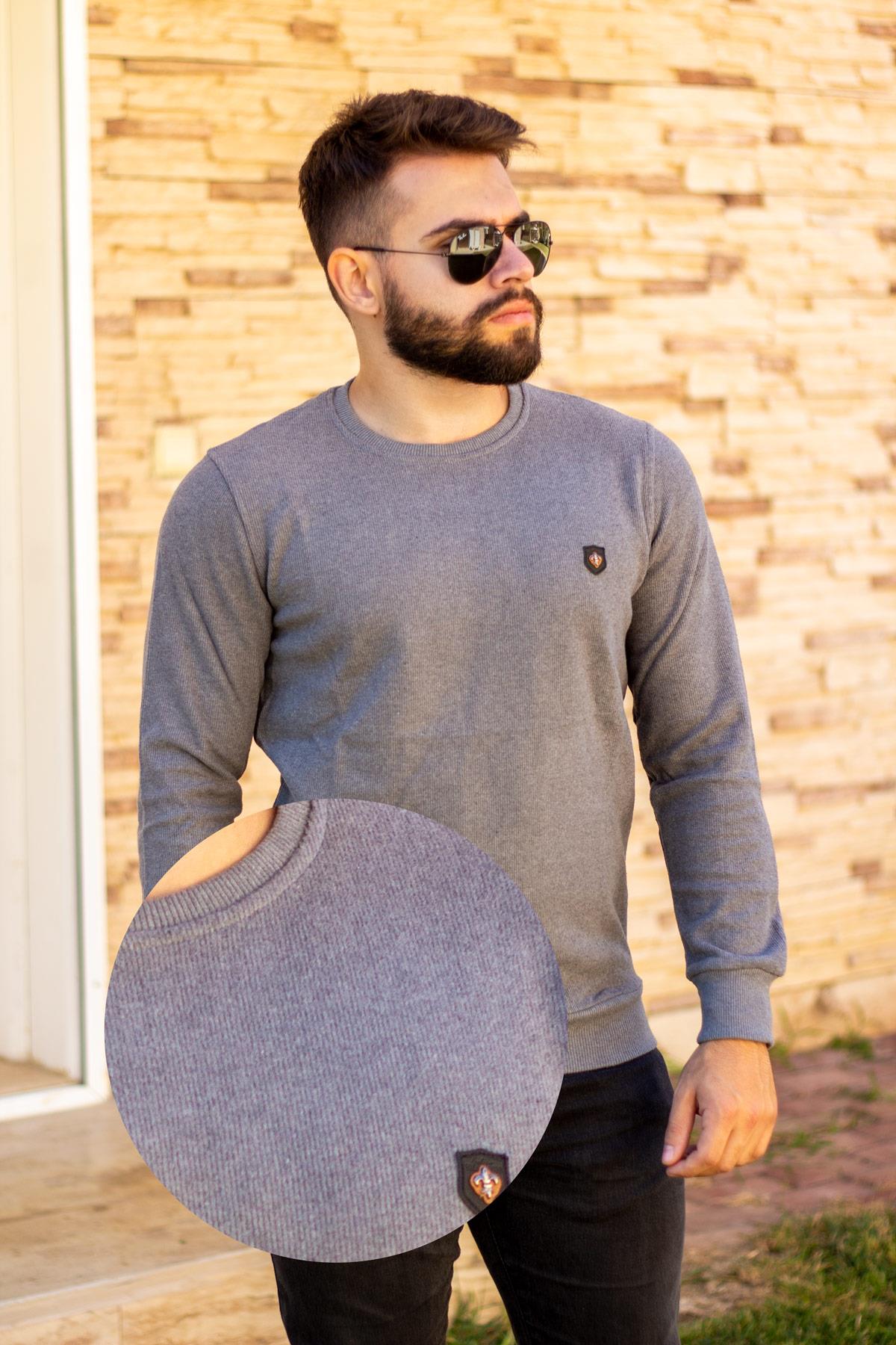 EtiketlerErkek Gri Melanj Fitilli Selanik Kumaş Sweat Kazak 21EKZKFILL