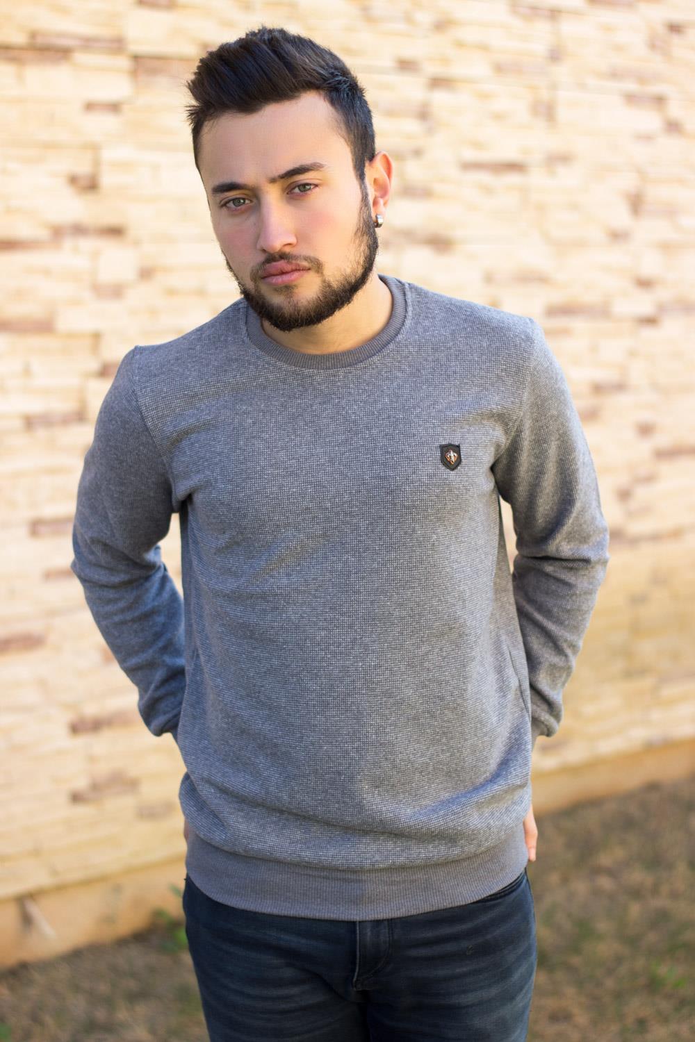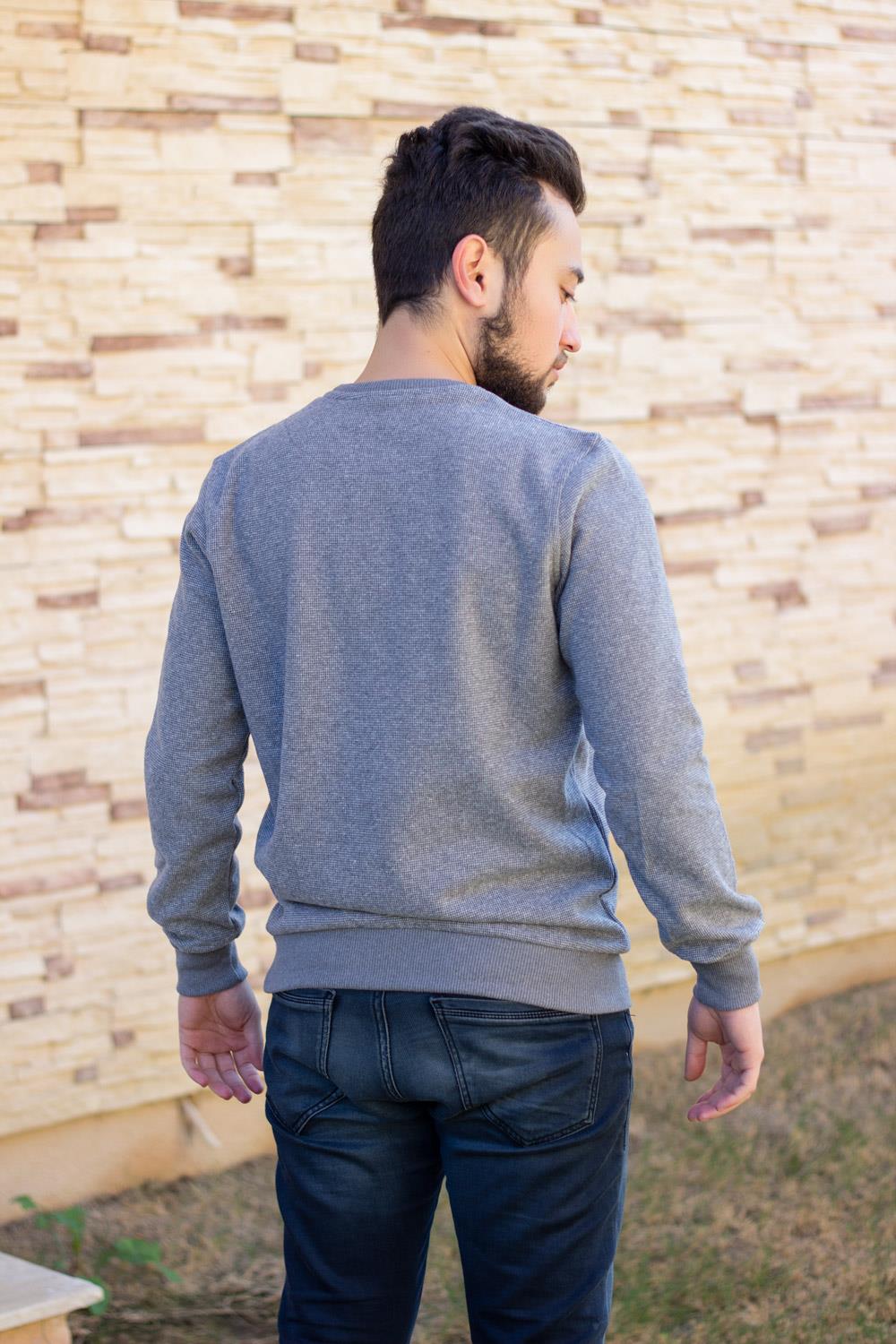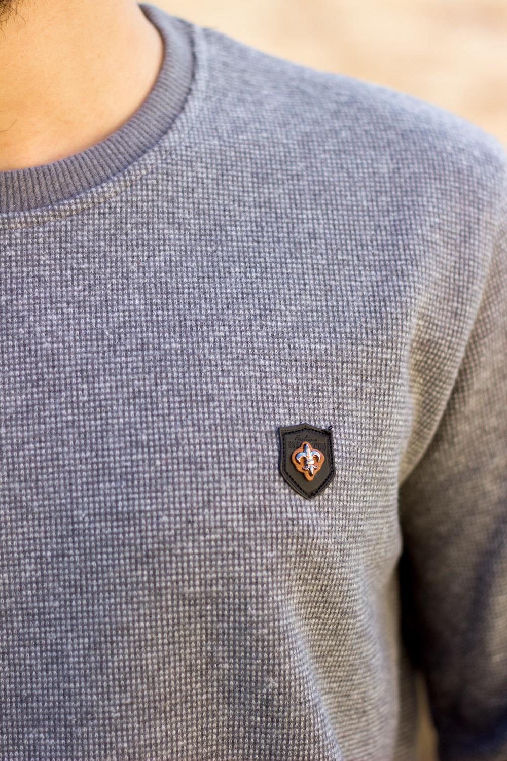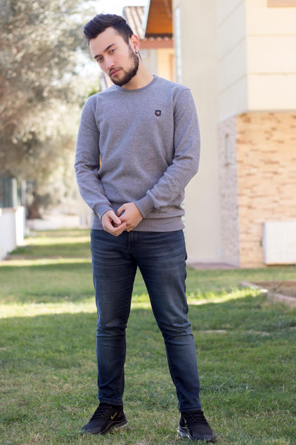 EtiketlerErkek Gri Melanj Selanik Kumaş Sweat Kazak 20EKZKBSIC