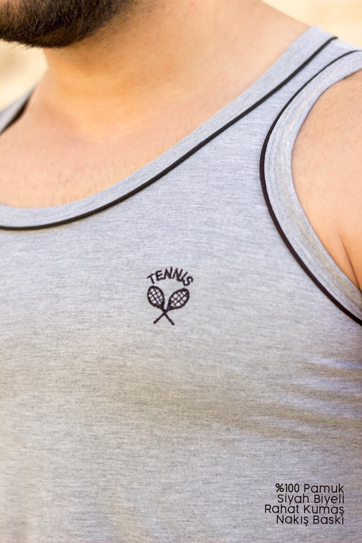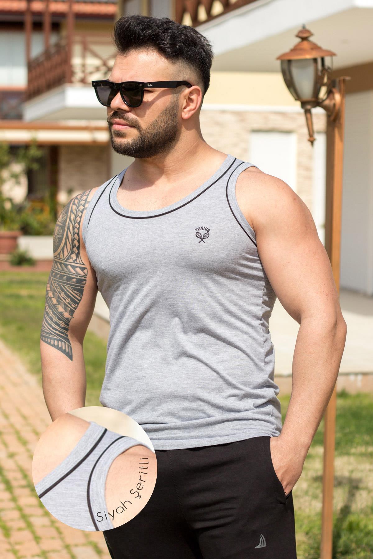 Erkek Gri Pamuklu Siyah Biyeli Atlet 21EATLATLT