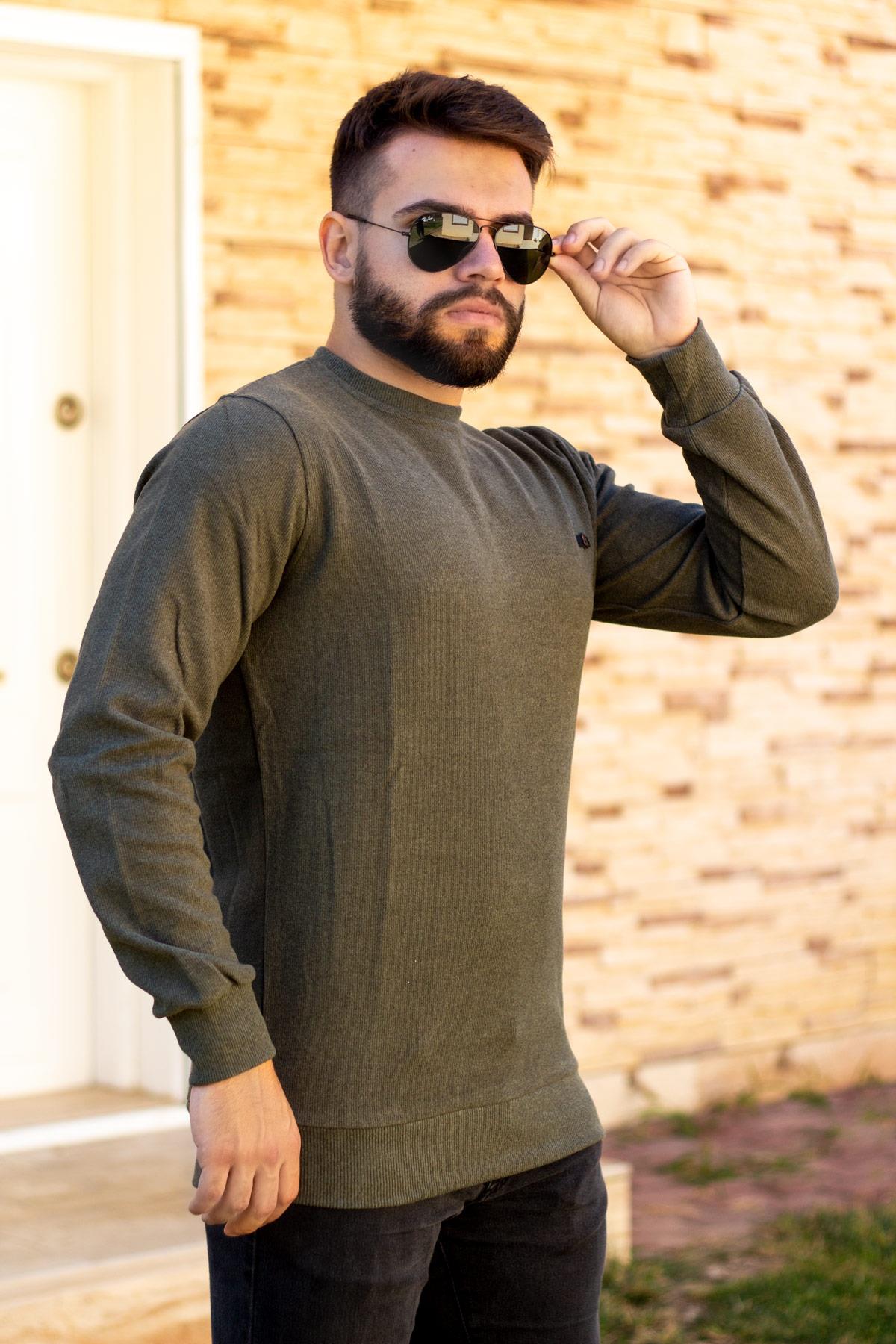 Erkek Haki Fitilli Selanik Kumaş Sweat Kazak 21EKZKFILL