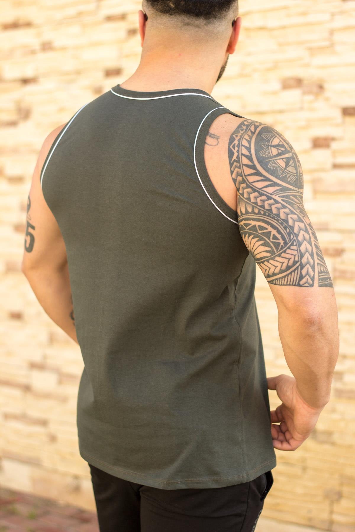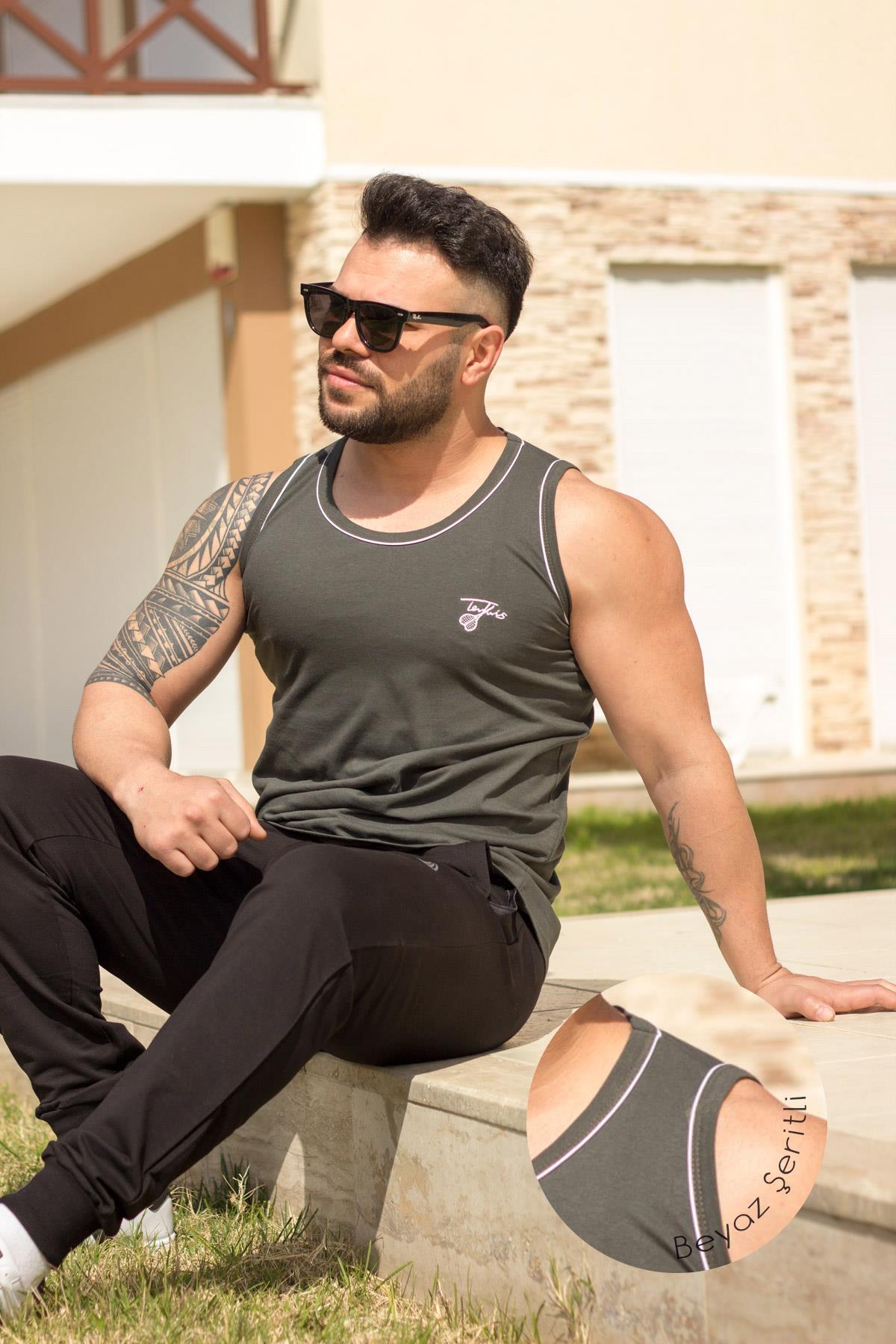 Erkek Haki Pamuklu Beyaz Biyeli Atlet 21EATLATLT