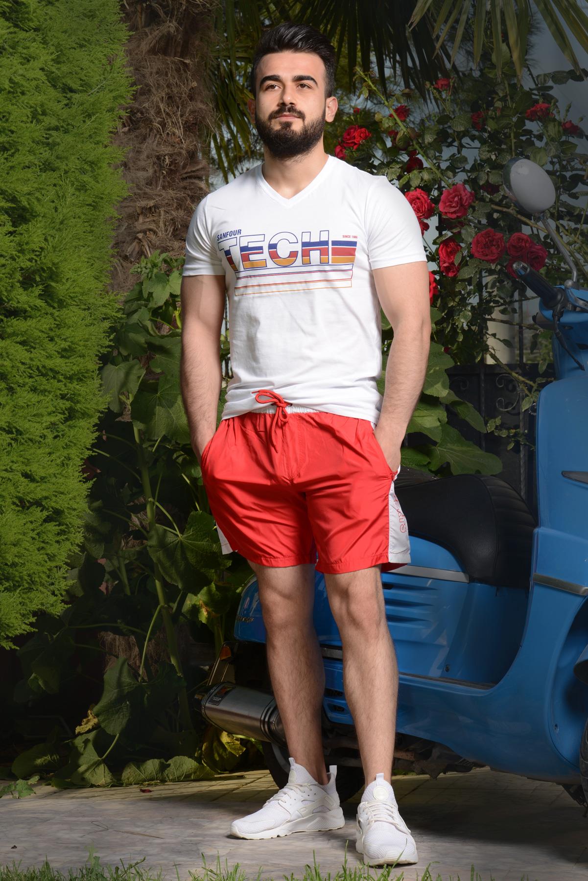 EtiketlerErkek Kırmızı Cep Fermuarlı İpli Mayo Deniz Şortu 21EDSTUDNZ
