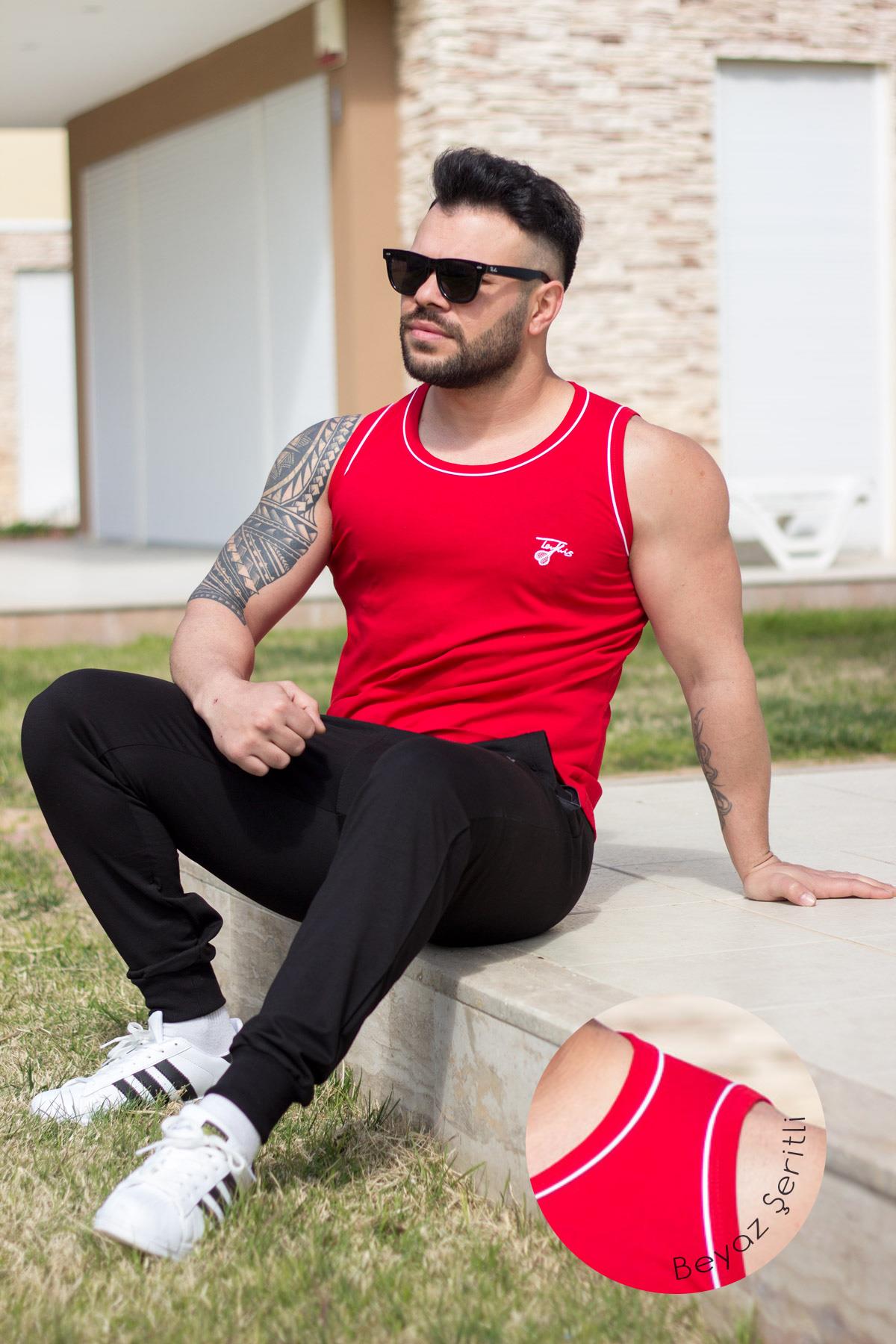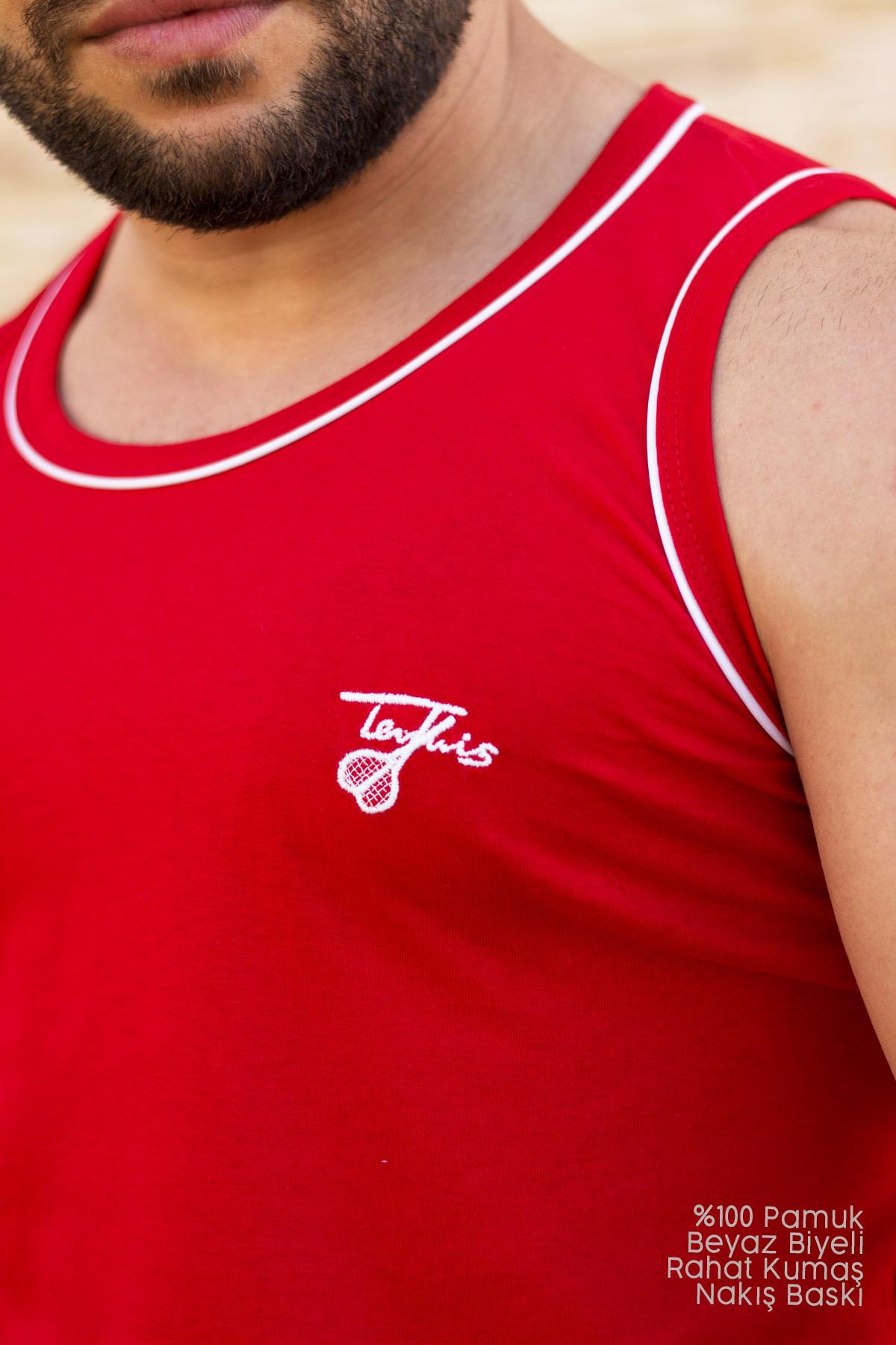 Erkek Kırmızı Pamuklu Beyaz Biyeli Atlet 21EATLATLT