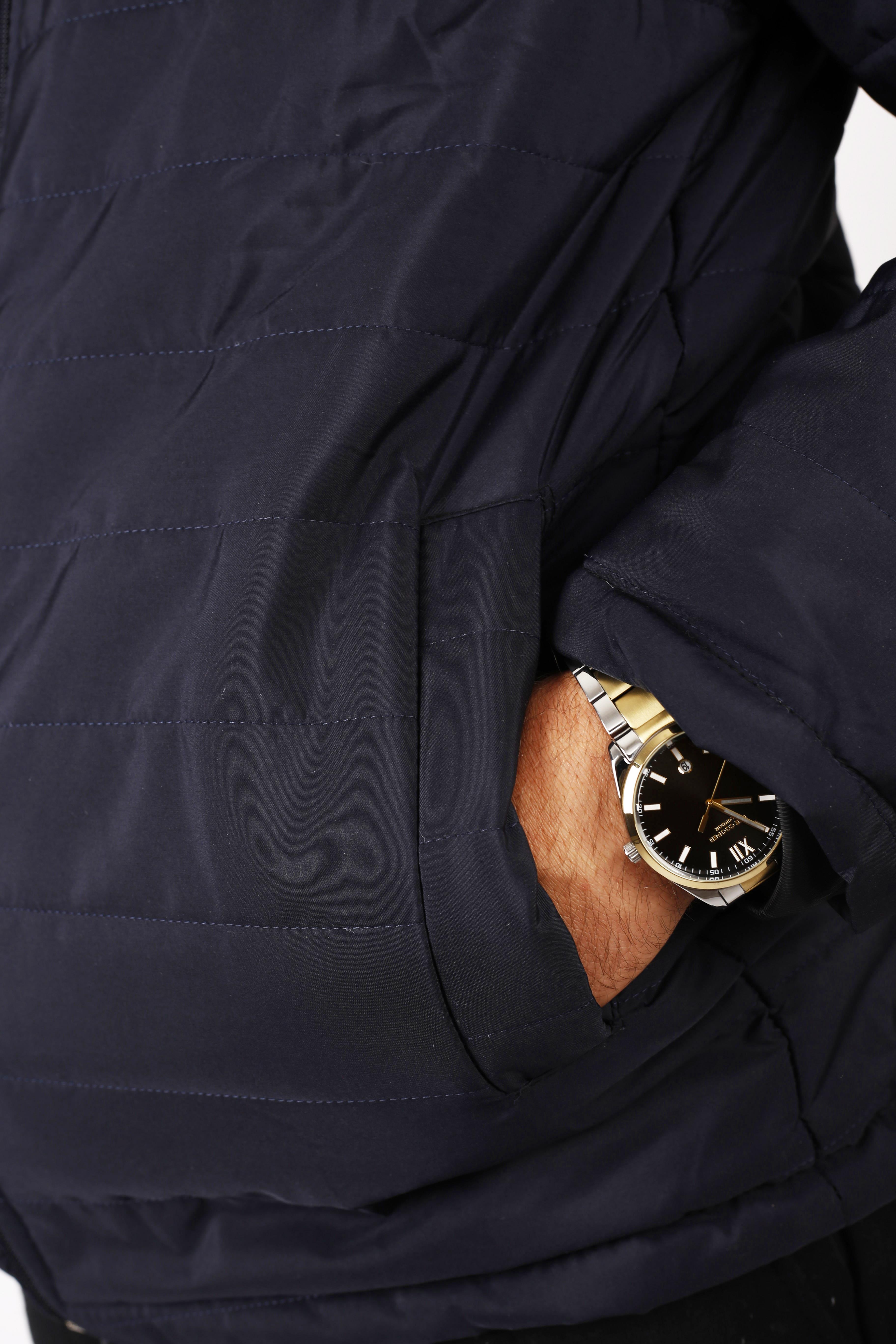 Erkek Koyu Lacivert Çıkarılabilir Kapüşonlu Şişme Mont 22EMNTBONG