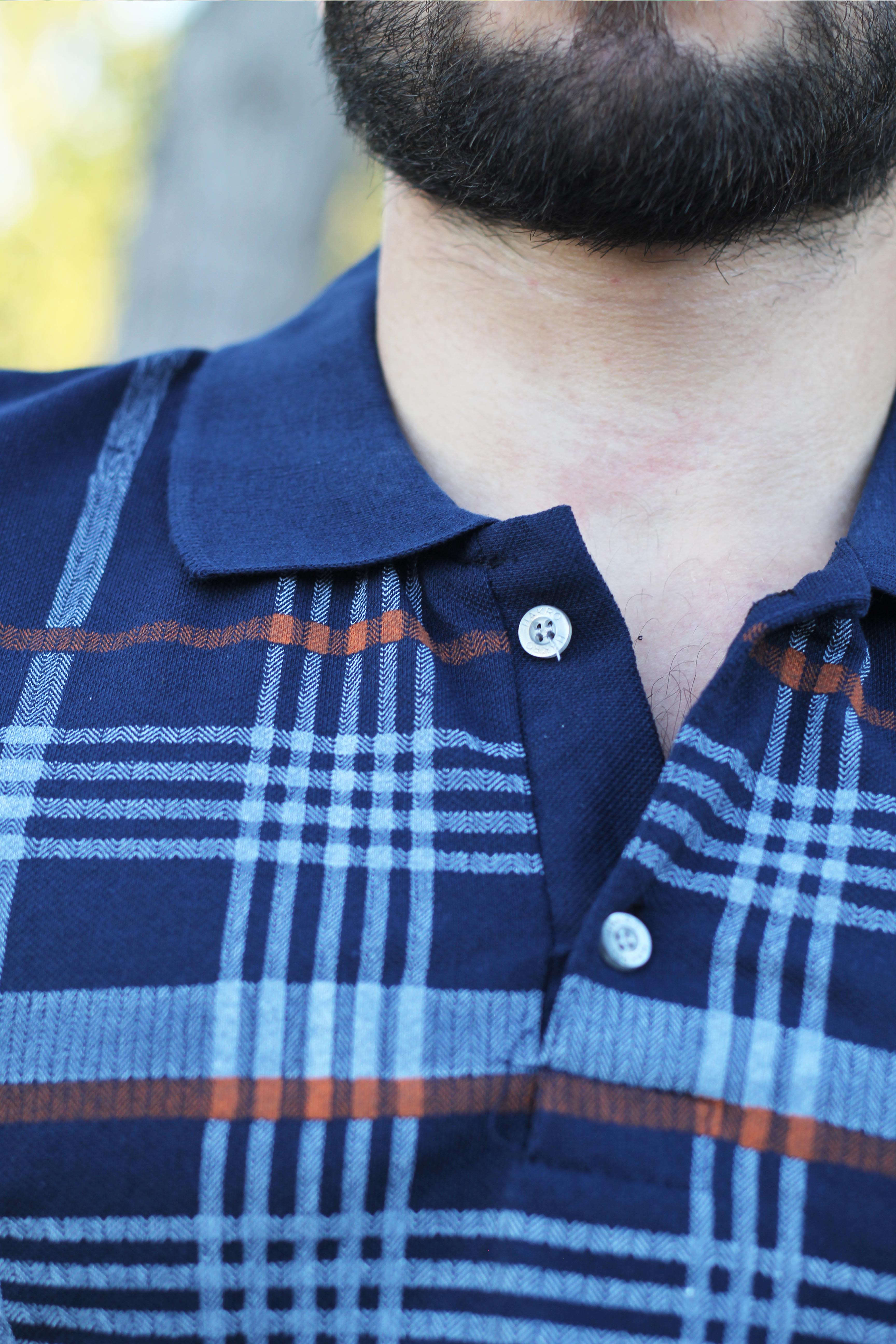 Erkek Lacivert Normal Kesim Kare Nokta Desen Polo Yaka Tişört 20EPLYKRPT