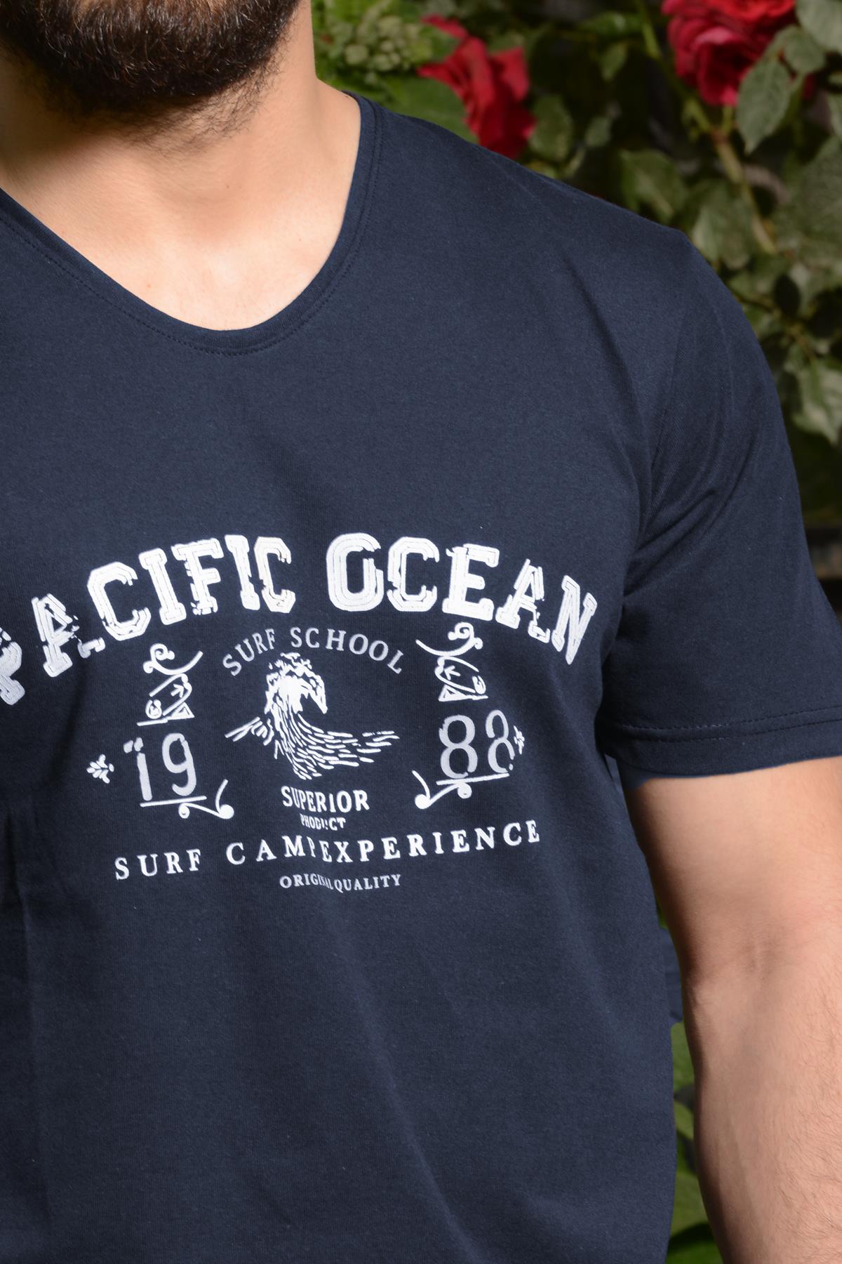 Erkek Lacivert Slim Fit Pacific Ocean Yazılı Kısa Kollu V Yaka Tişört 21ETSHPSCF