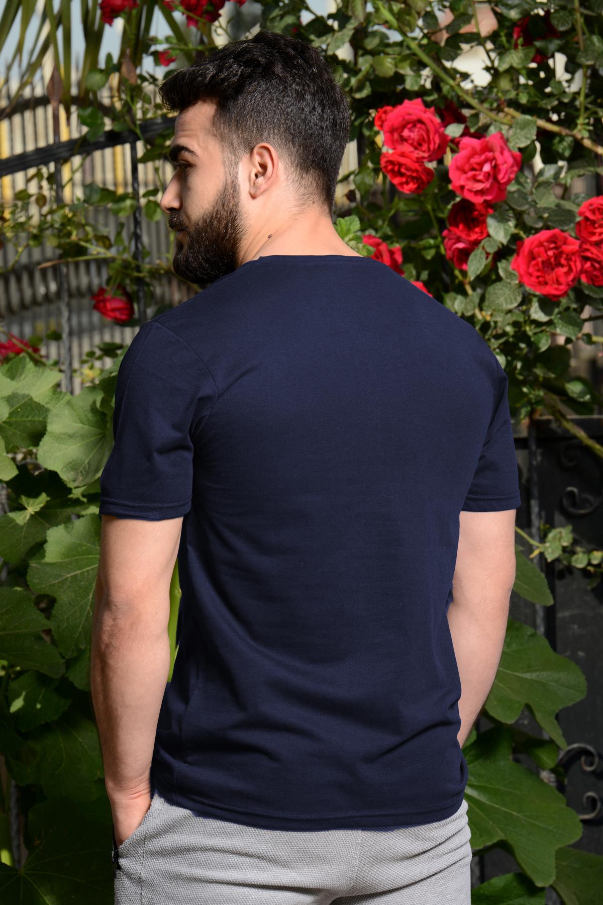 Erkek Lacivert Slim Fit Kısa Kollu V Yaka Tişört 21ETSHPSCF