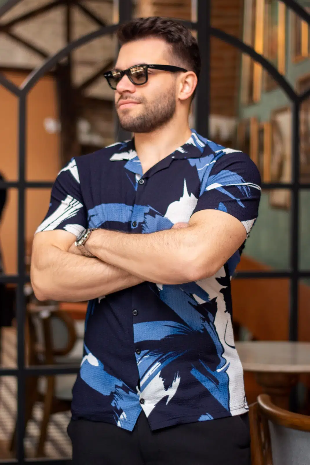 | Etiketler | Erkek Mavi Beyaz Desen Esnek Bürümcük Regular Fit Kısa Kol Gömlek 25EGMLGIMM |