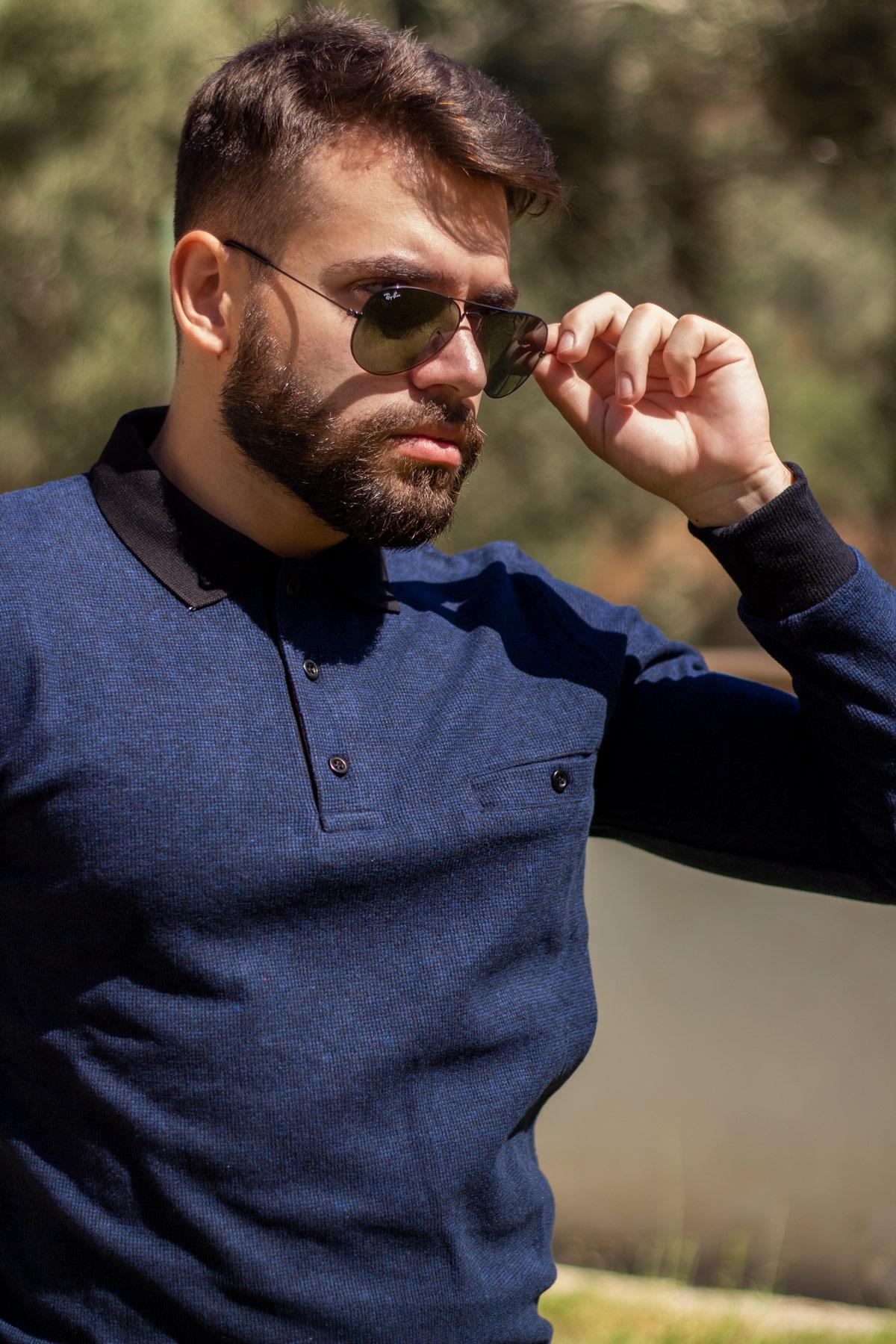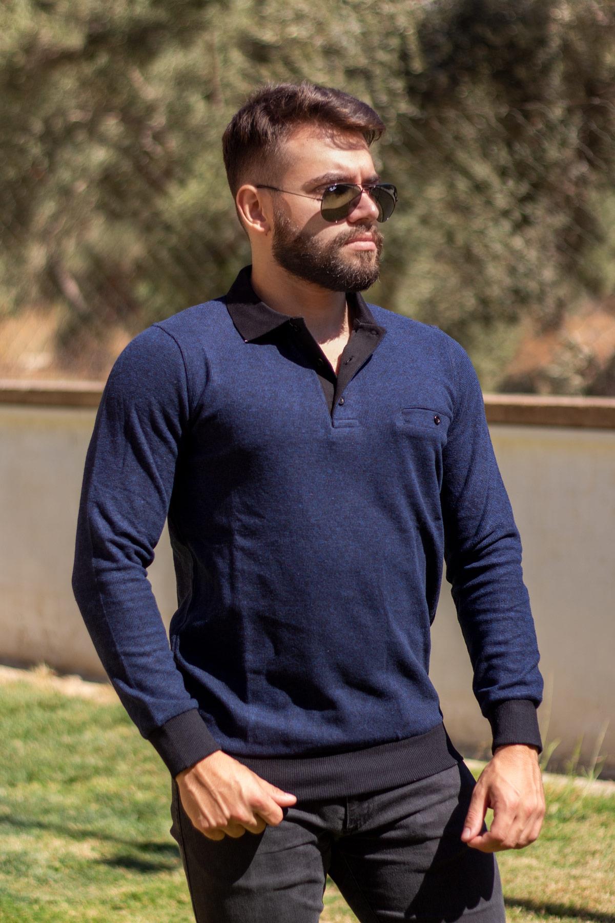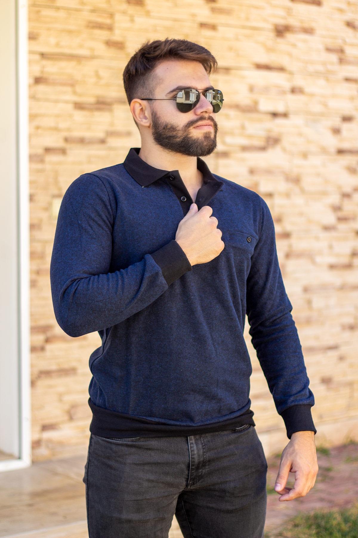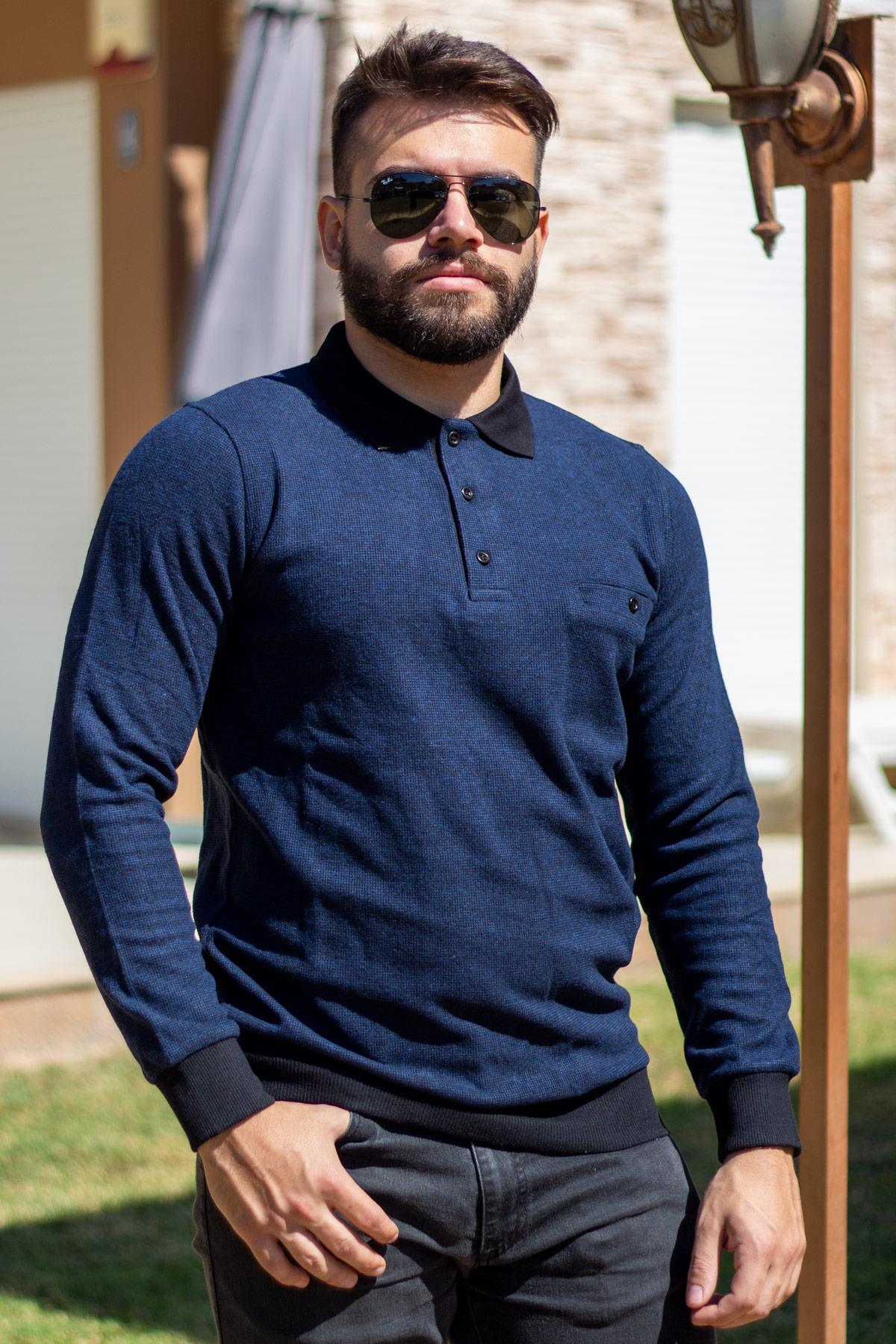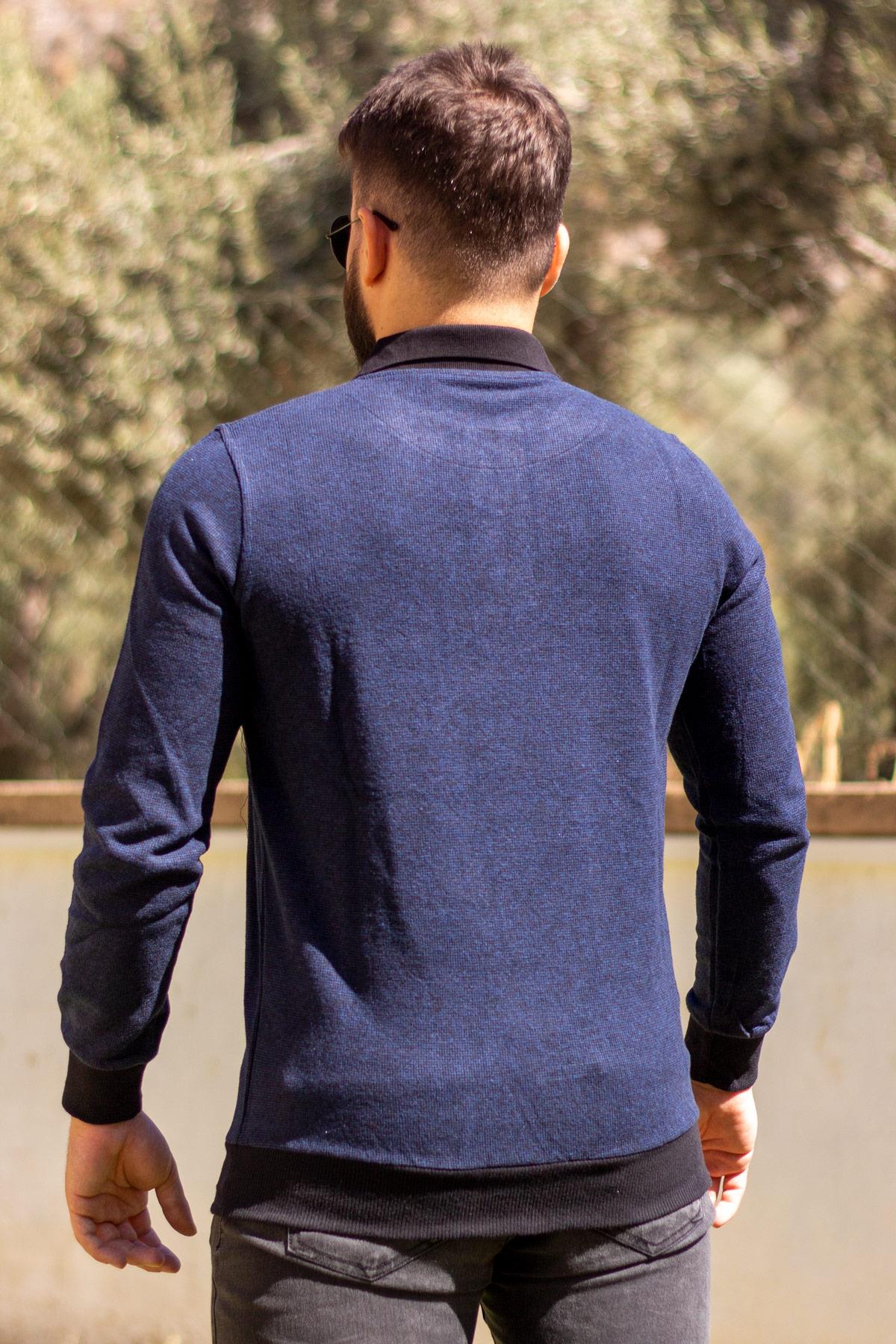 Erkek Mavi Polo Yaka Selanik Kumaş Sweat Kazak 21EKZKPLSL