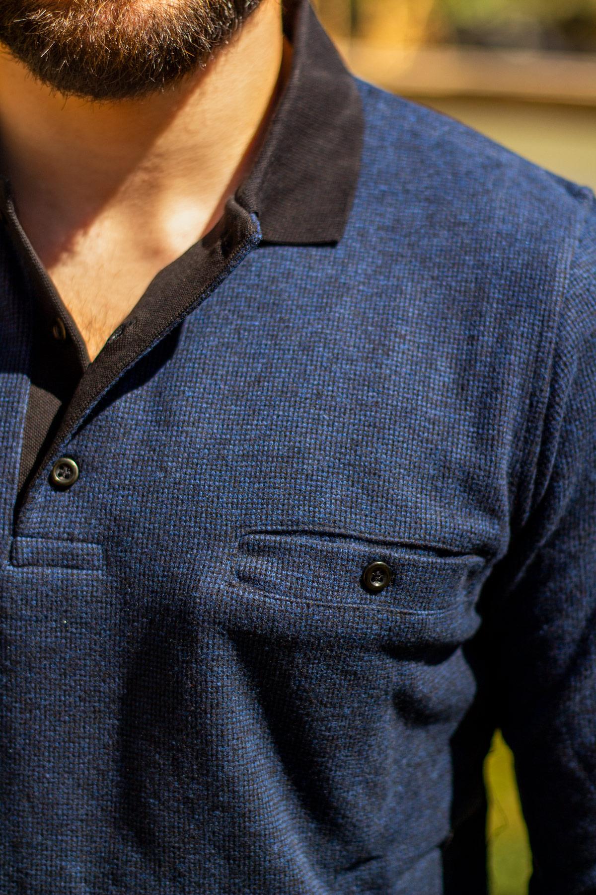 EtiketlerErkek Mavi Polo Yaka Selanik Kumaş Sweat Kazak 21EKZKPLSL