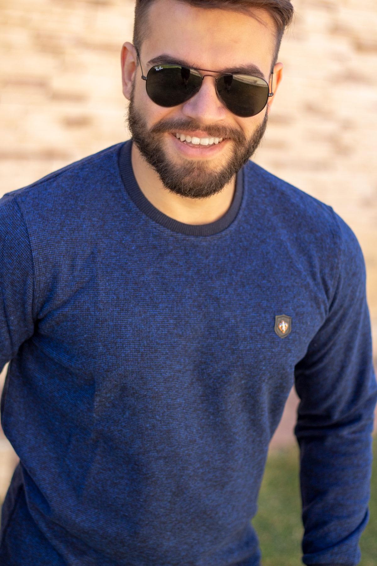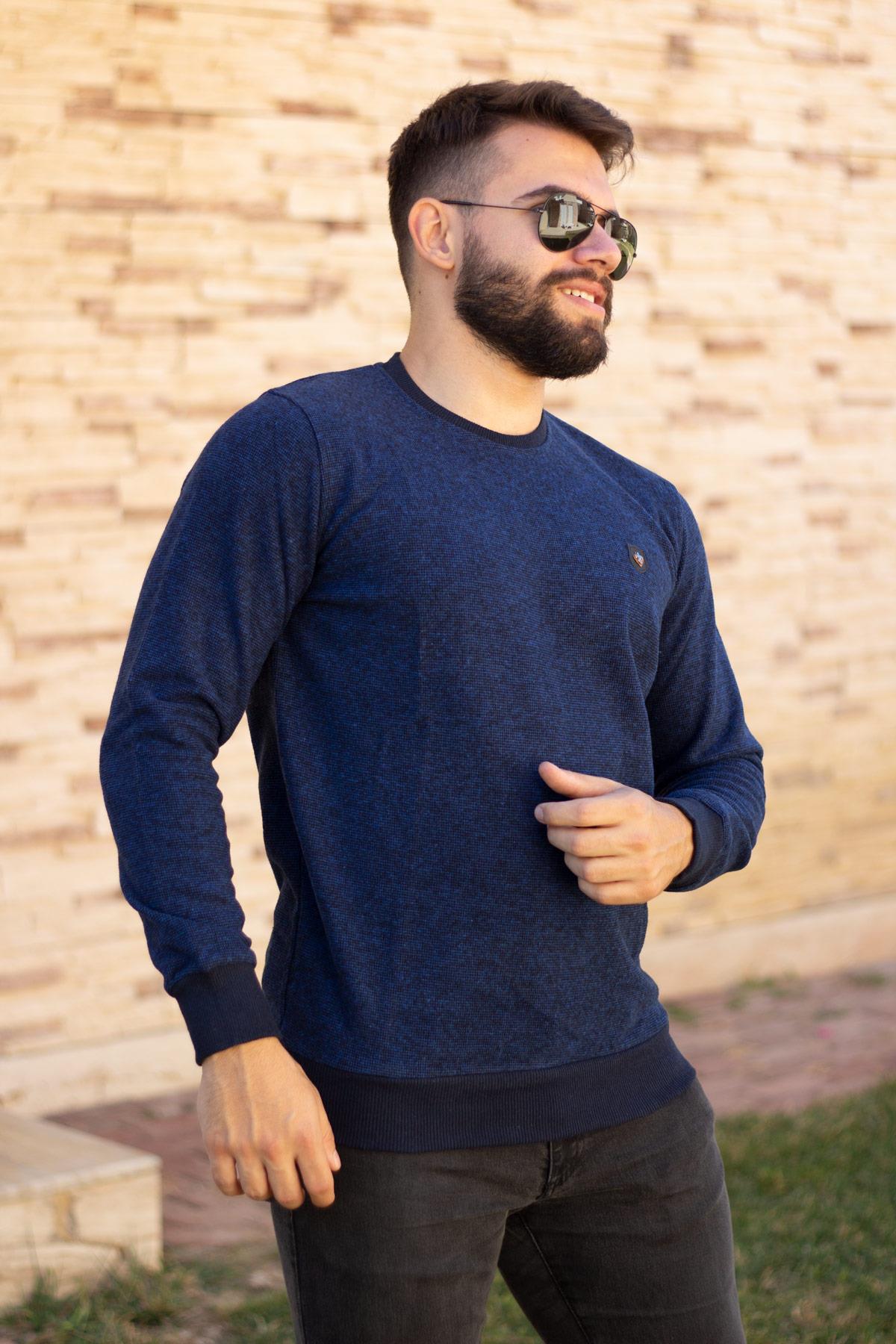 Erkek Mavi Selanik Kumaş Sweat Kazak 20EKZKBSIC