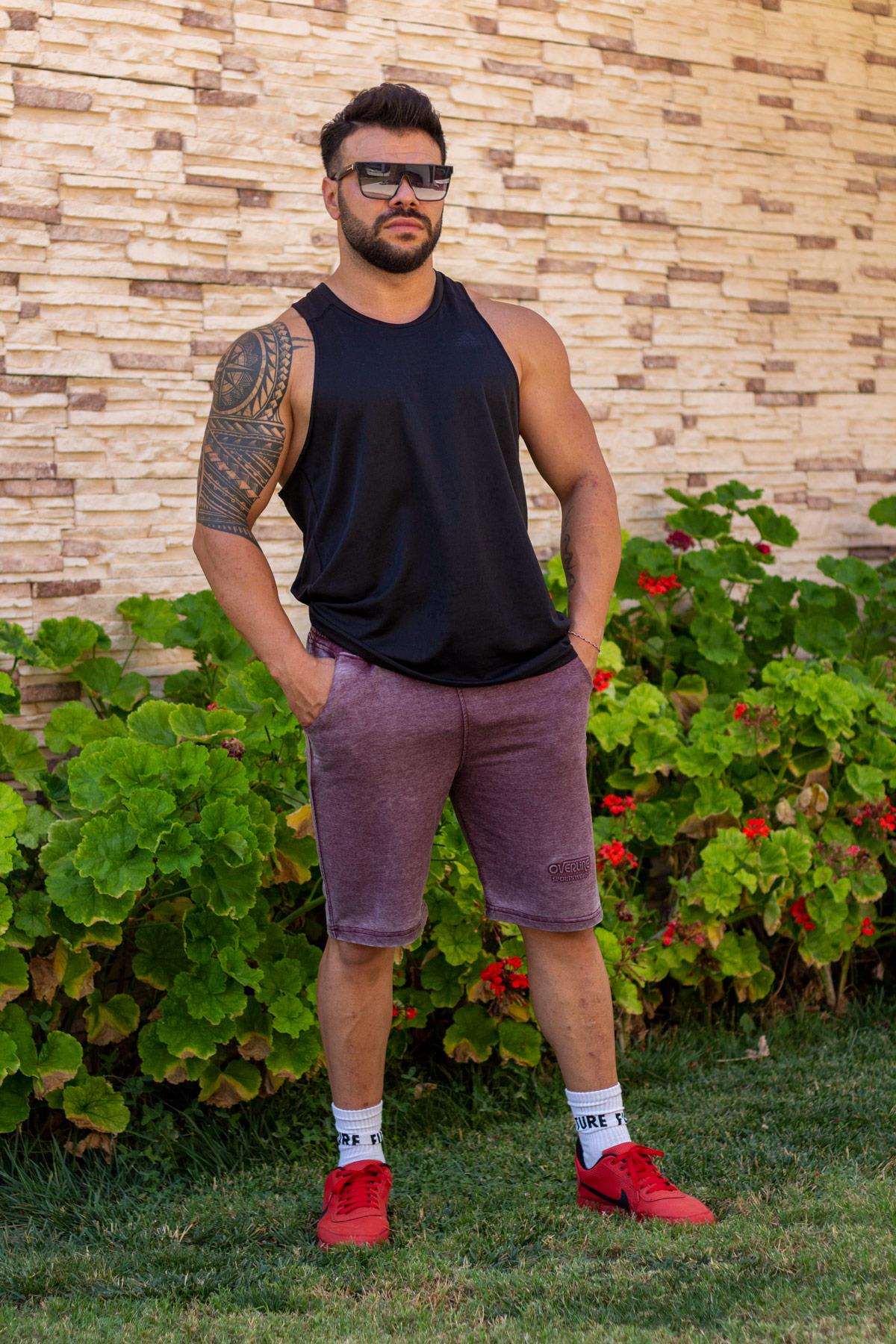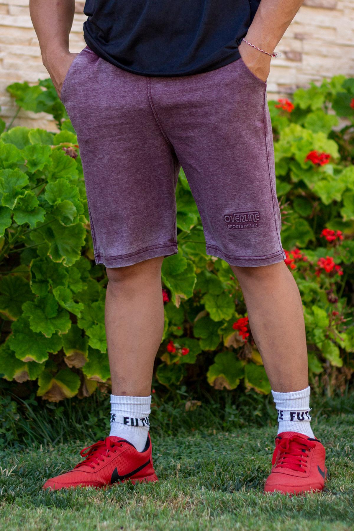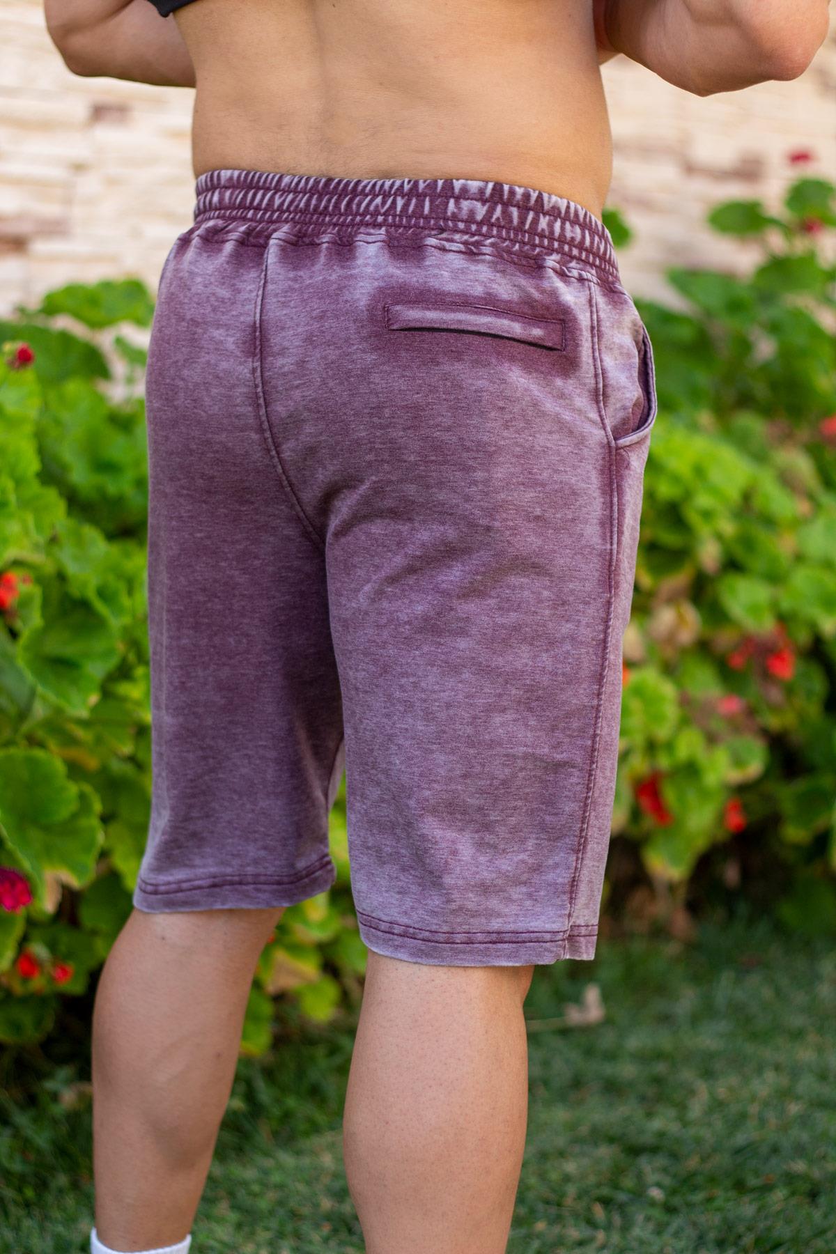 Erkek Mor Eskitme Desen Kabartma Baskı Cepli Şort 21ESRTESTM
