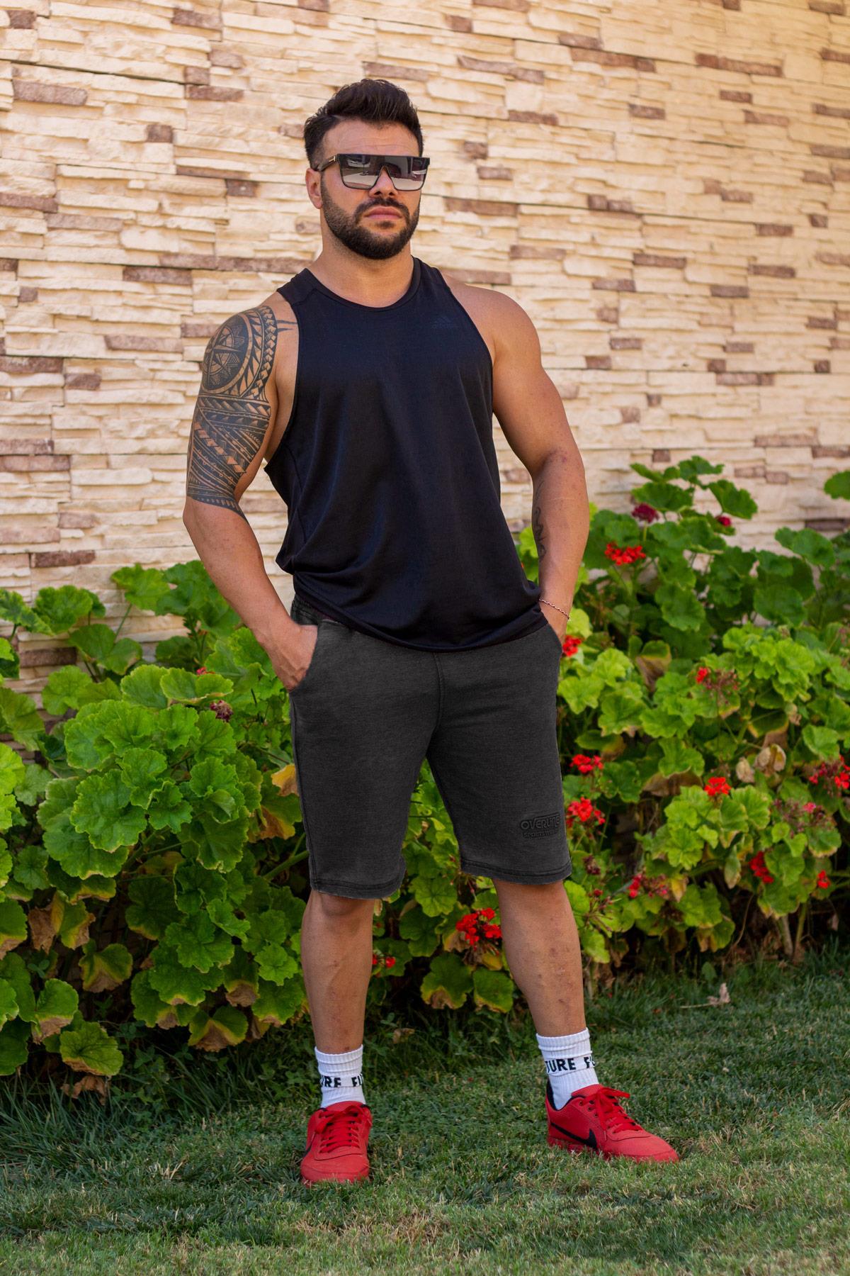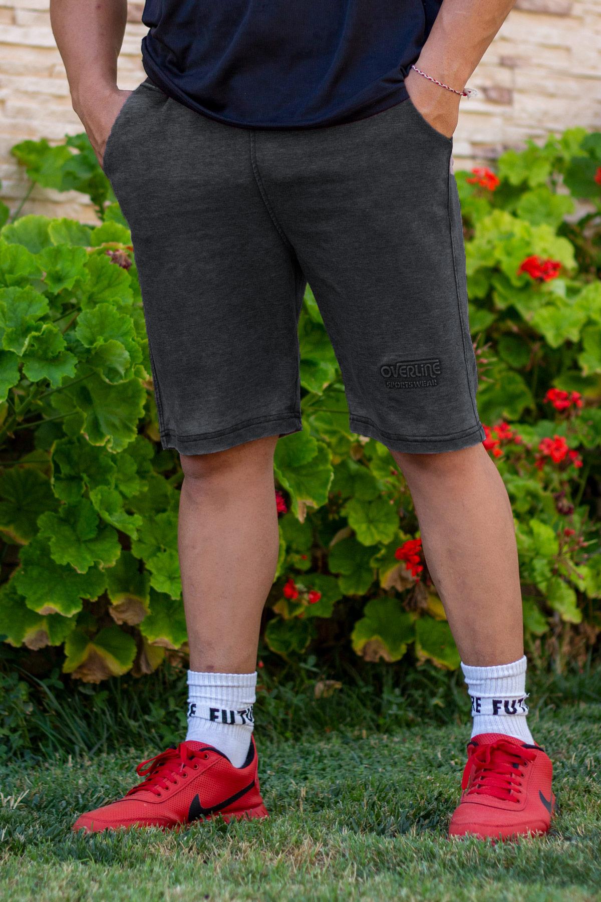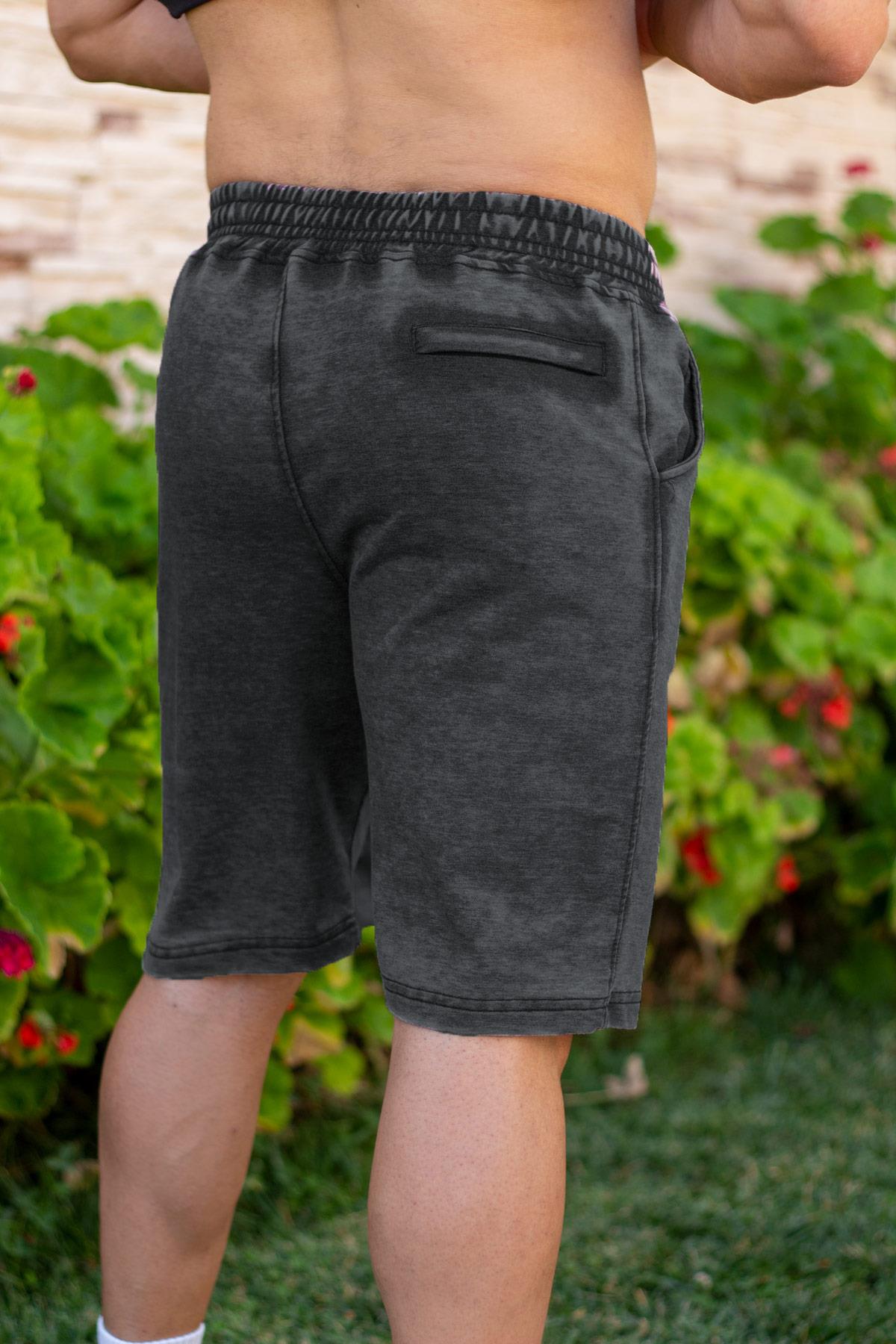 Erkek Siyah Eskitme Desen Kabartma Baskı Cepli Şort 21ESRTESTM