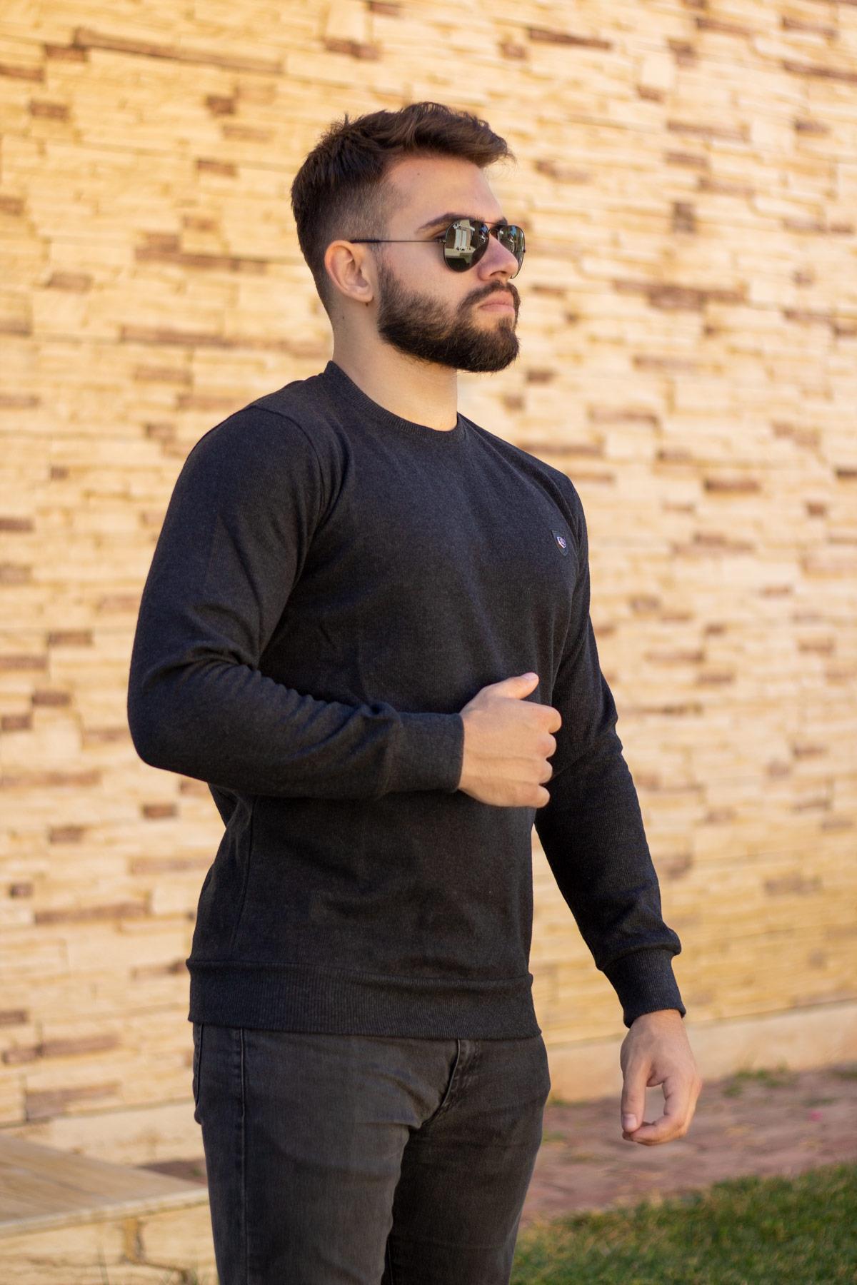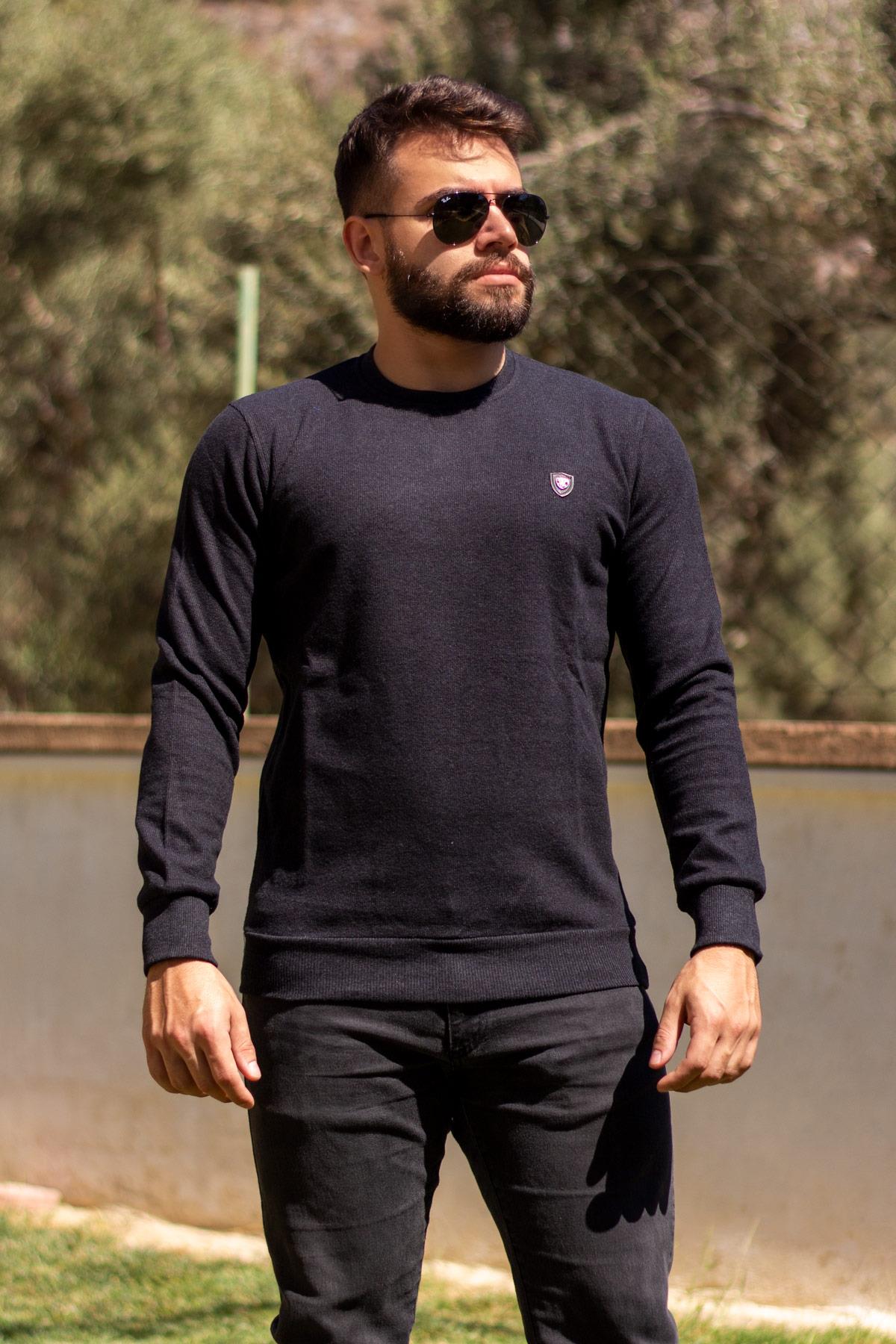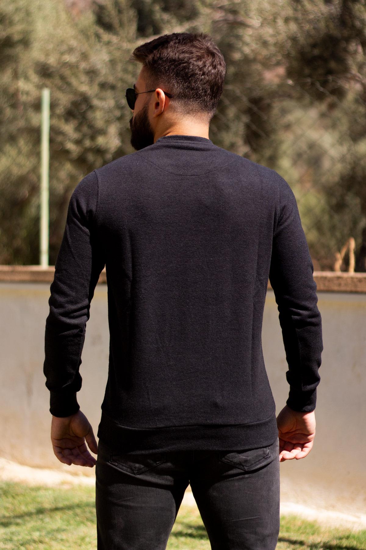 Erkek Siyah Fitilli Selanik Kumaş Sweat Kazak 21EKZKFILL