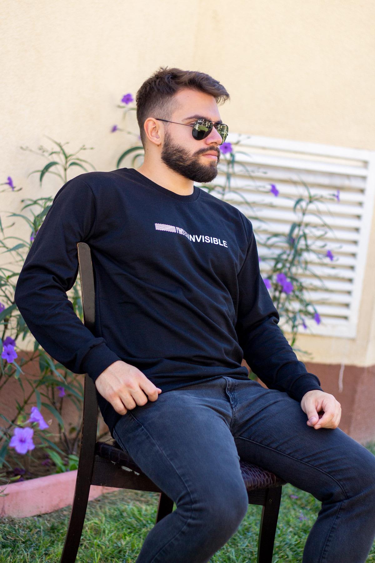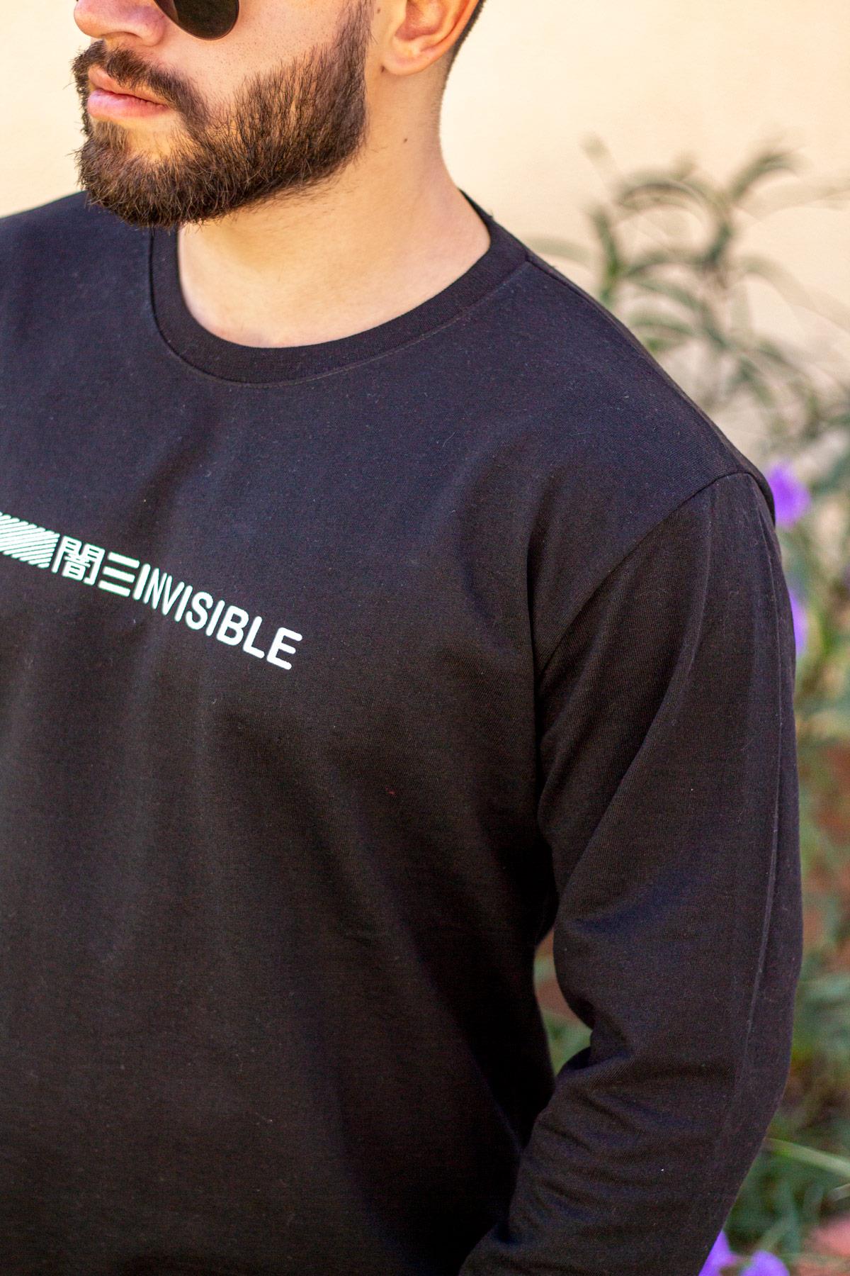 Erkek Siyah Invisible Yazılı Uzun Kollu Sweatshirt 21ESWTINVS