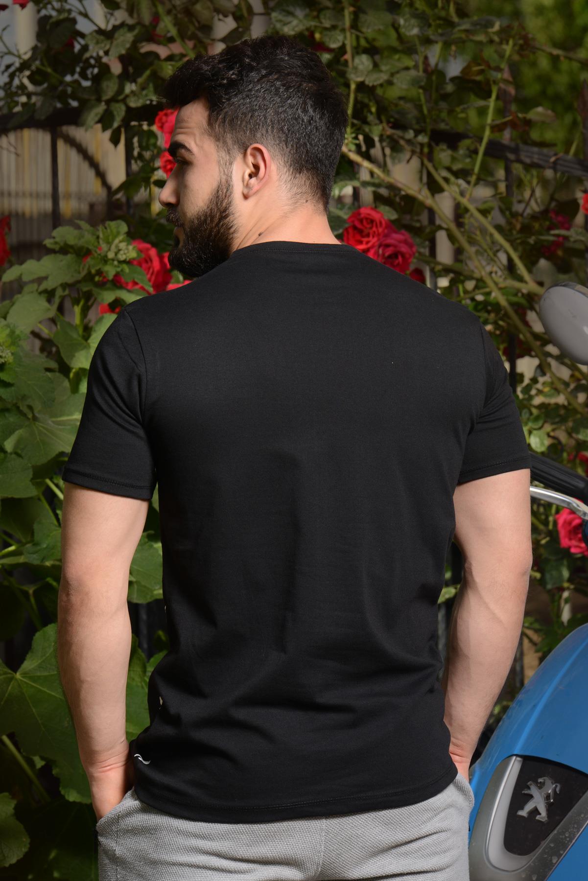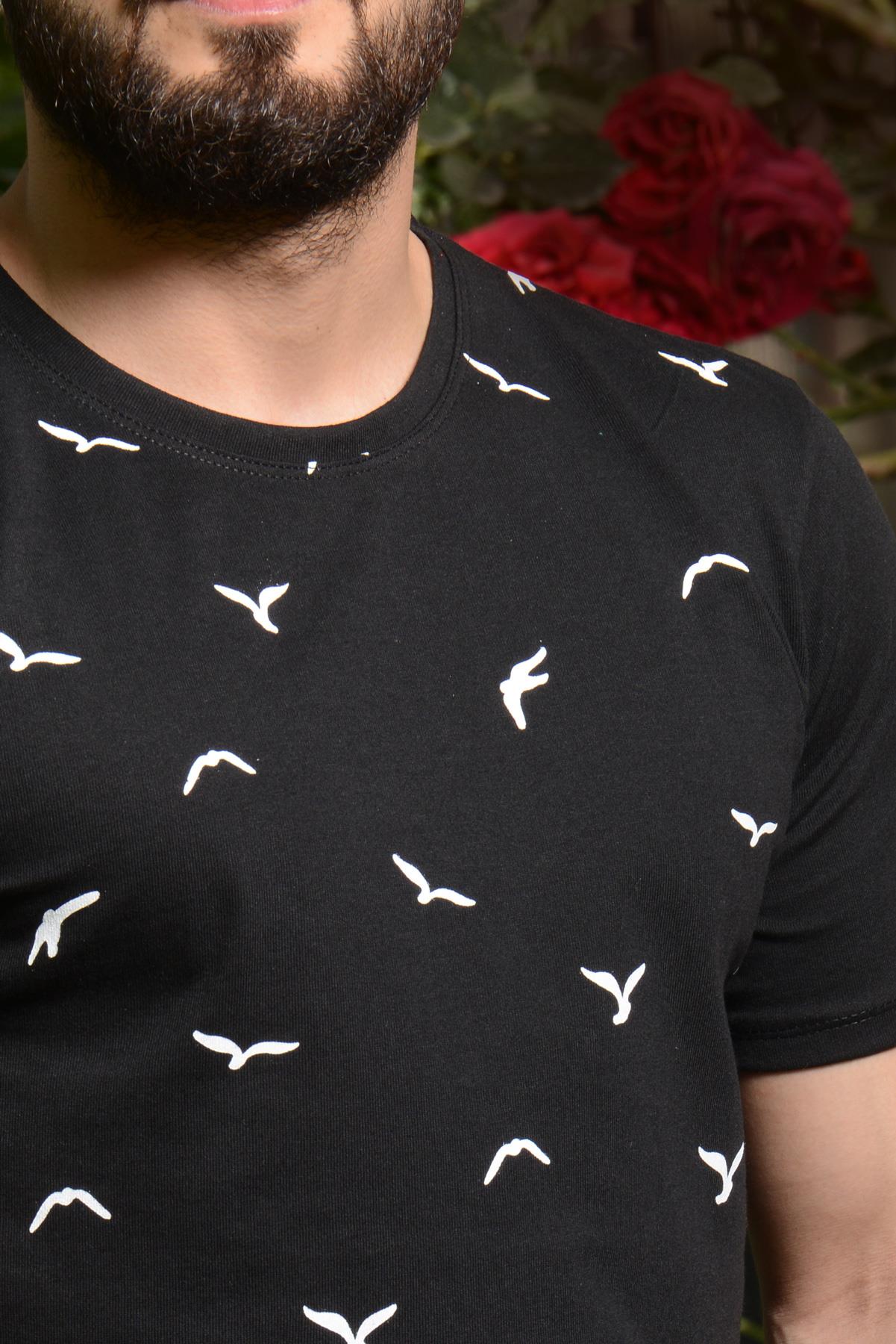 Erkek Siyah Martı Model Kısa Kollu Bisiklet Yaka Tişört 21ETSHMART
