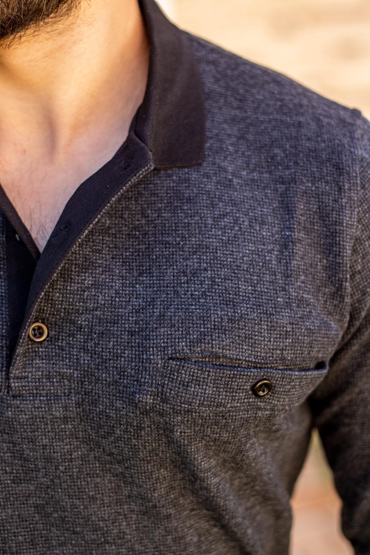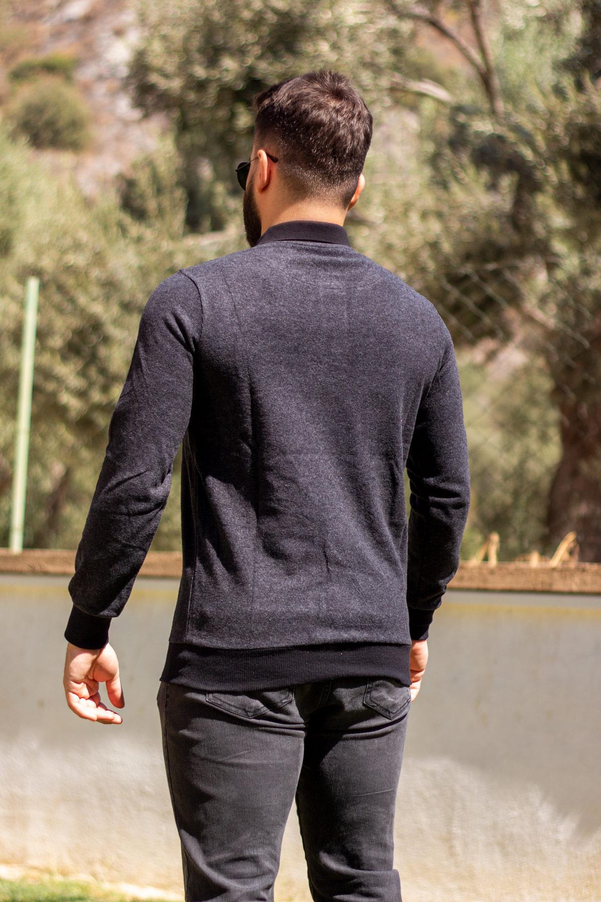 Erkek Gri Polo Yaka Selanik Kumaş Sweat Kazak 21EKZKPLSL