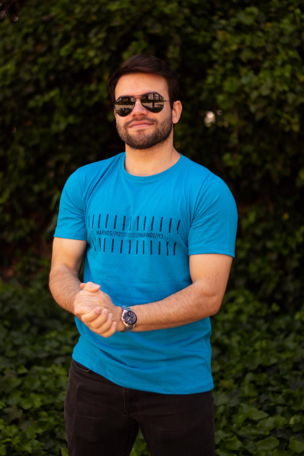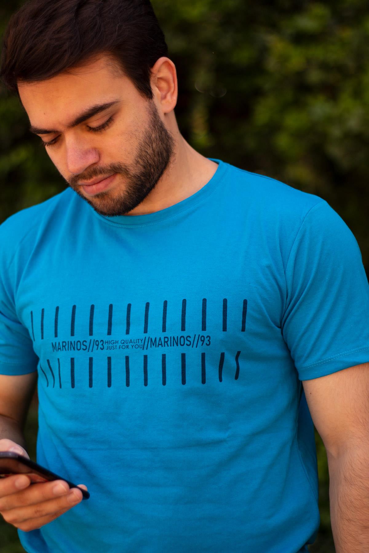 | Etiketler | Erkek Turkuaz Çizgi Baskılı Normal Kesim Bisiklet Yaka Erkek Tişört 22ETSHMROS |