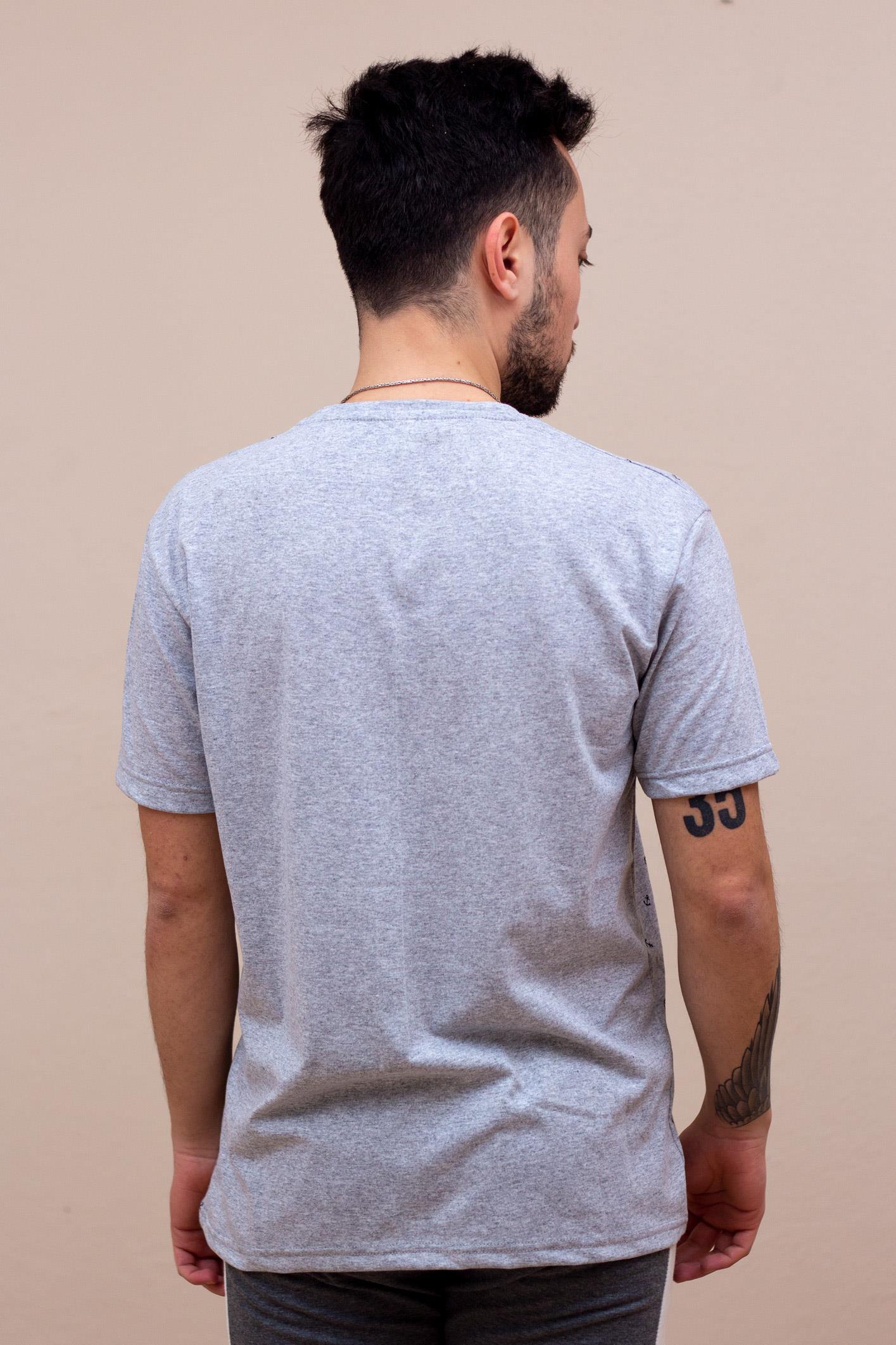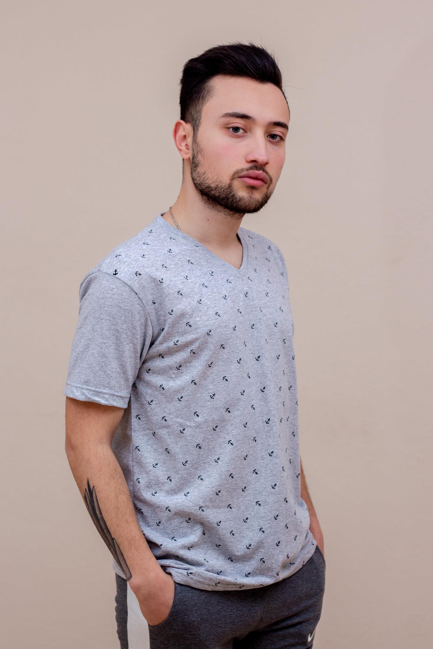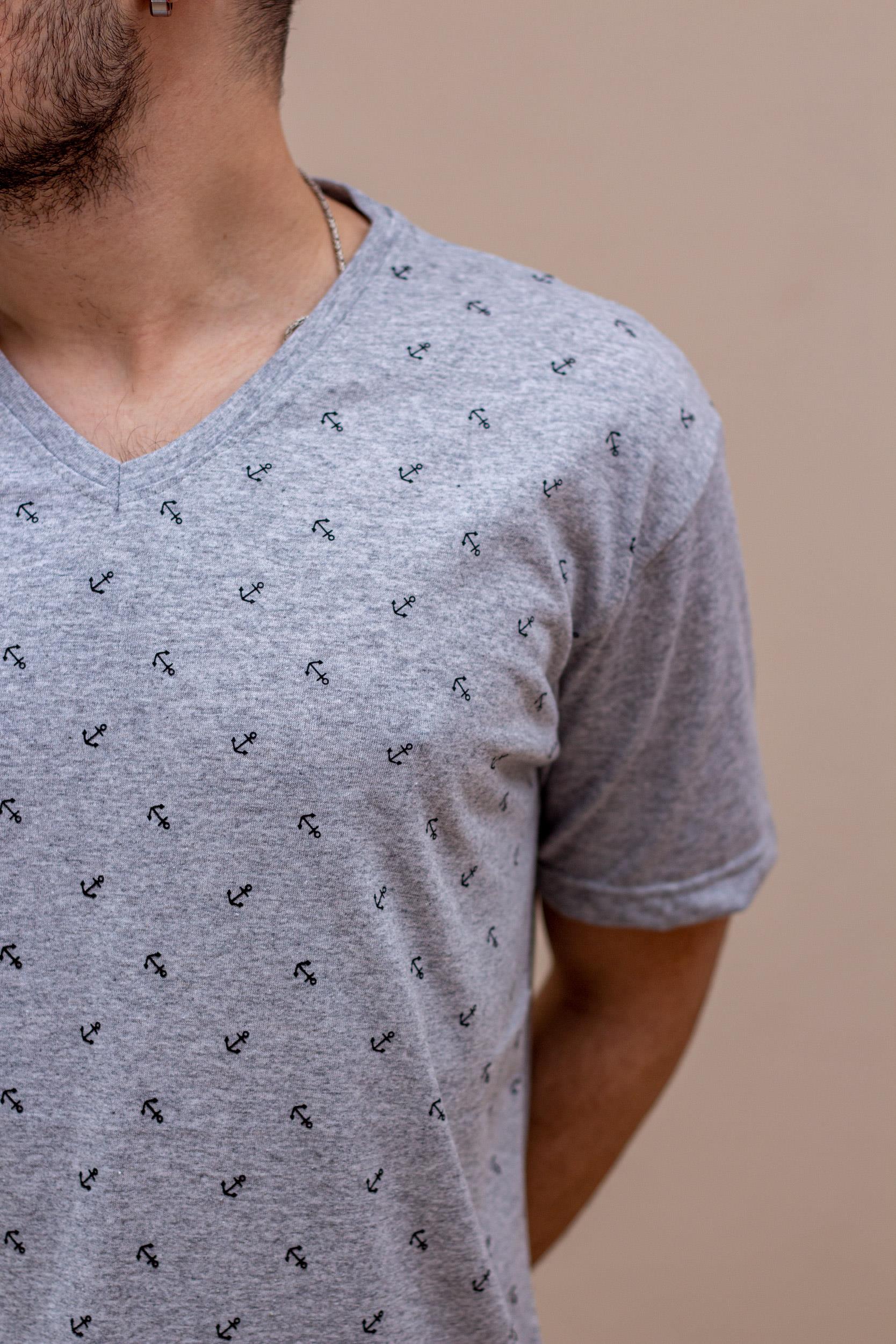 Gri Çapa Baskılı Kısa Kollu V Yaka Erkek Tişört 22ETSHVCPA