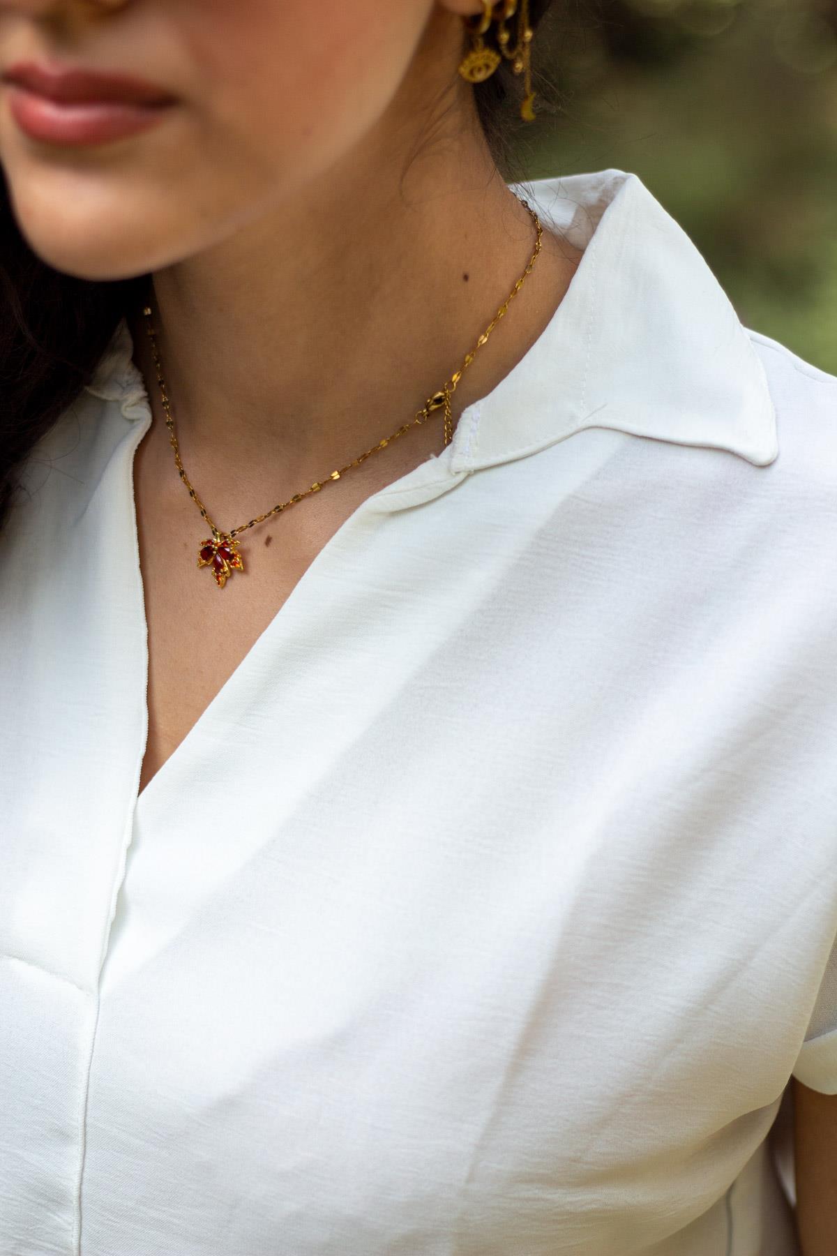 EtiketlerKadın Beyaz Aerobin Kumaş Kısa Duble Kol Gömlek Yaka Bluz 24KBLZK800