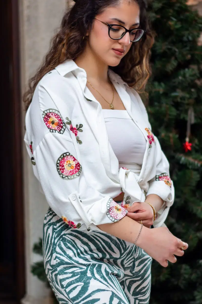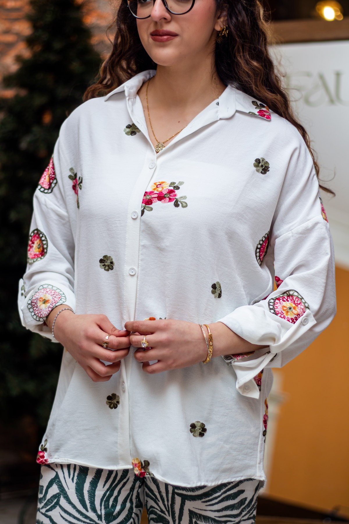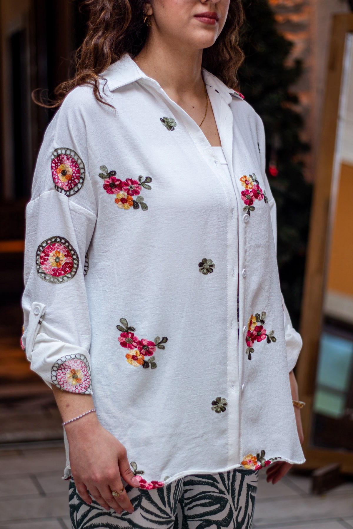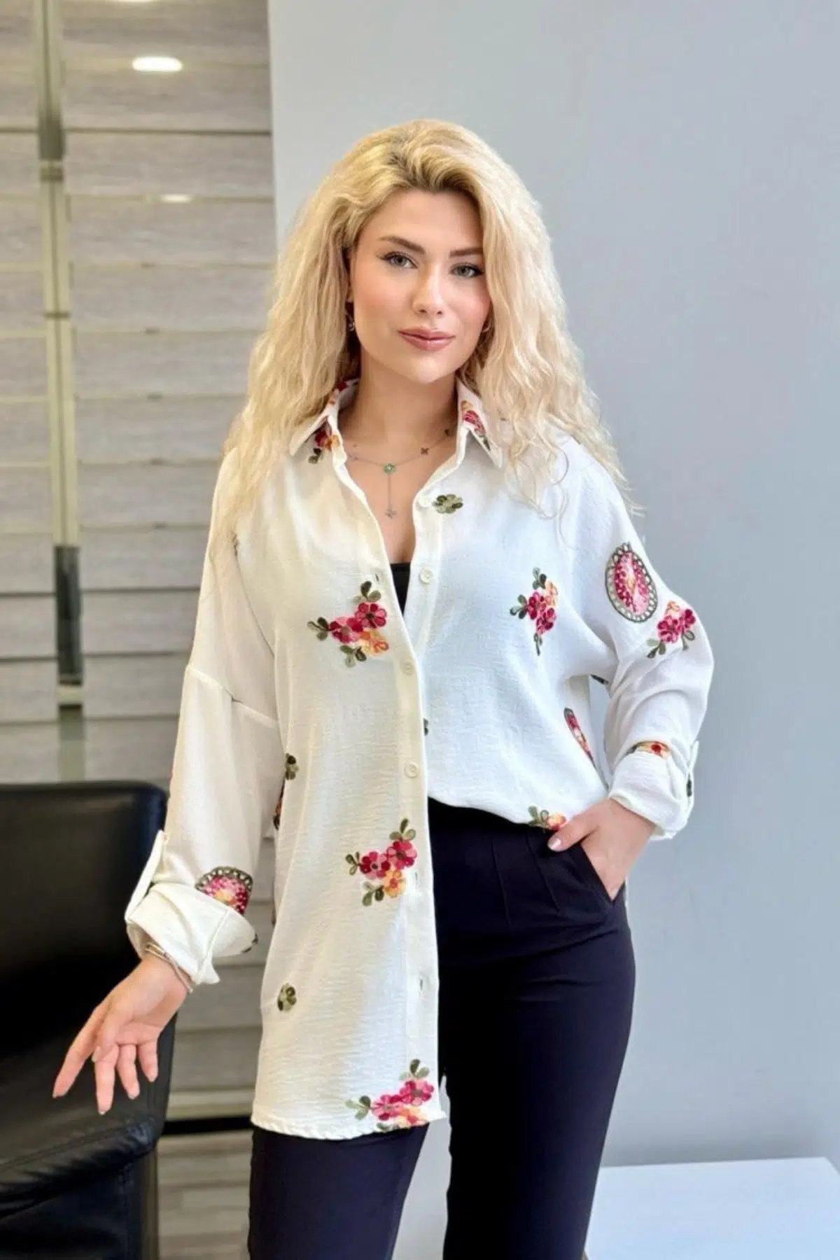 | Etiketler | Kadın Beyaz Nalış İşlemeli Oversize Rahat Kalıp Keten Aerobin Gömlek 25KGMLP028 |