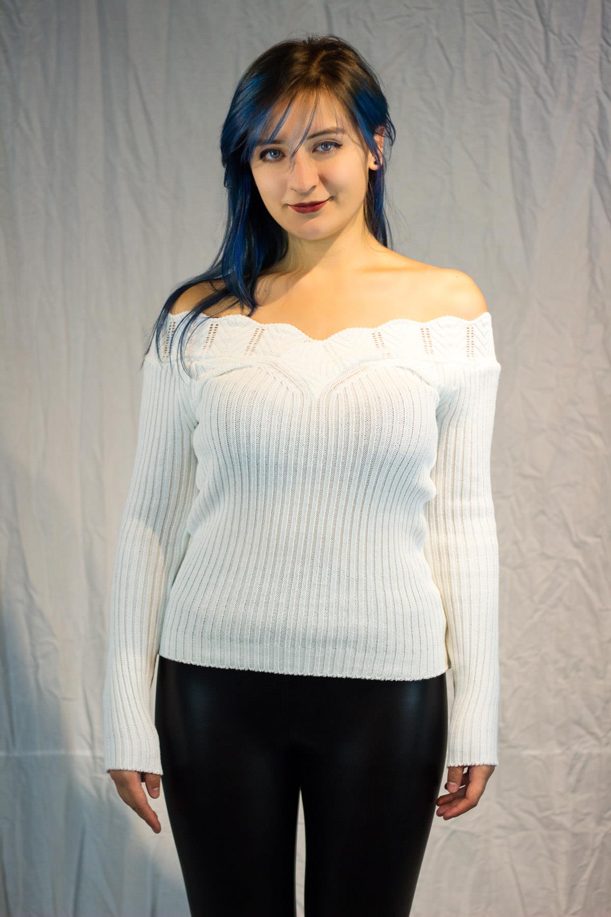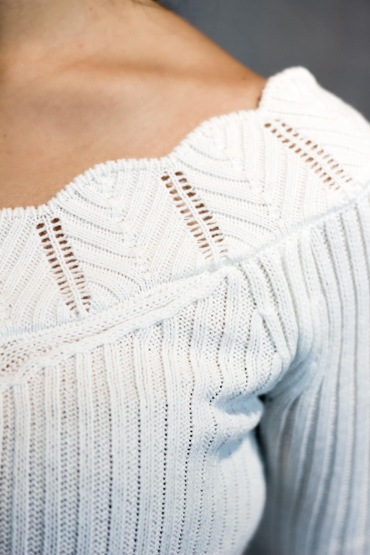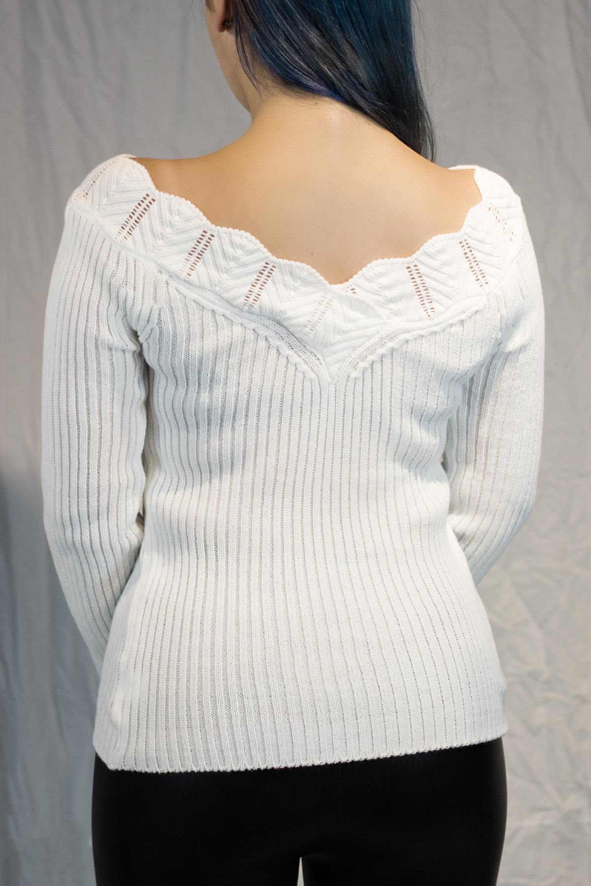 EtiketlerKadın Beyaz Ön Arka V Yaka Fitilli Triko Kazak 20KKZKVALK