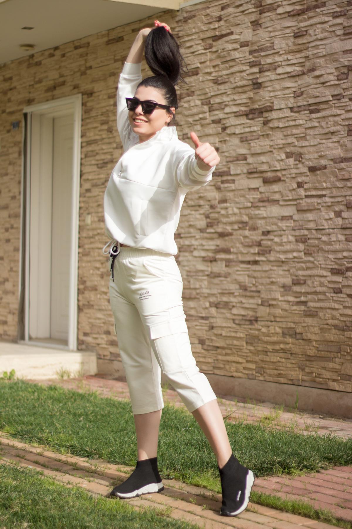 Kadın Beyaz Regular Fit Jogger Kısa Eşofman Altı 21KESAJGGR