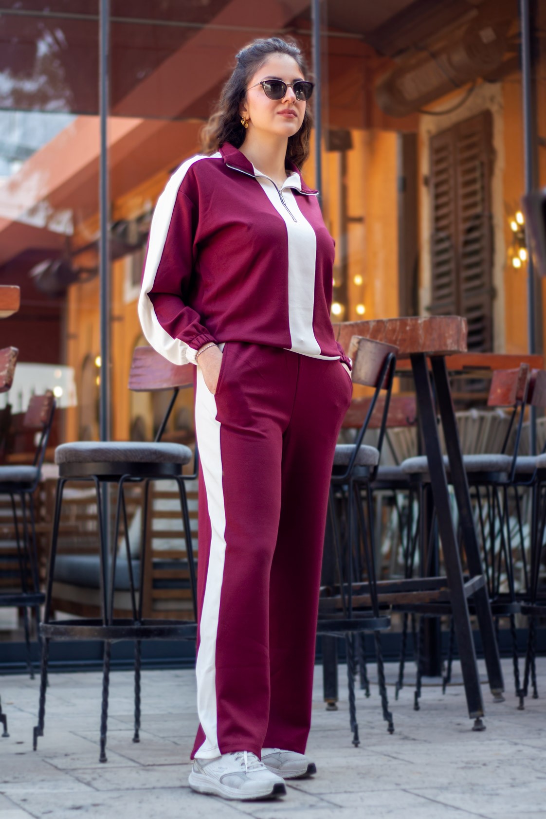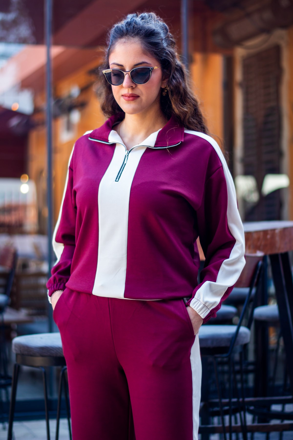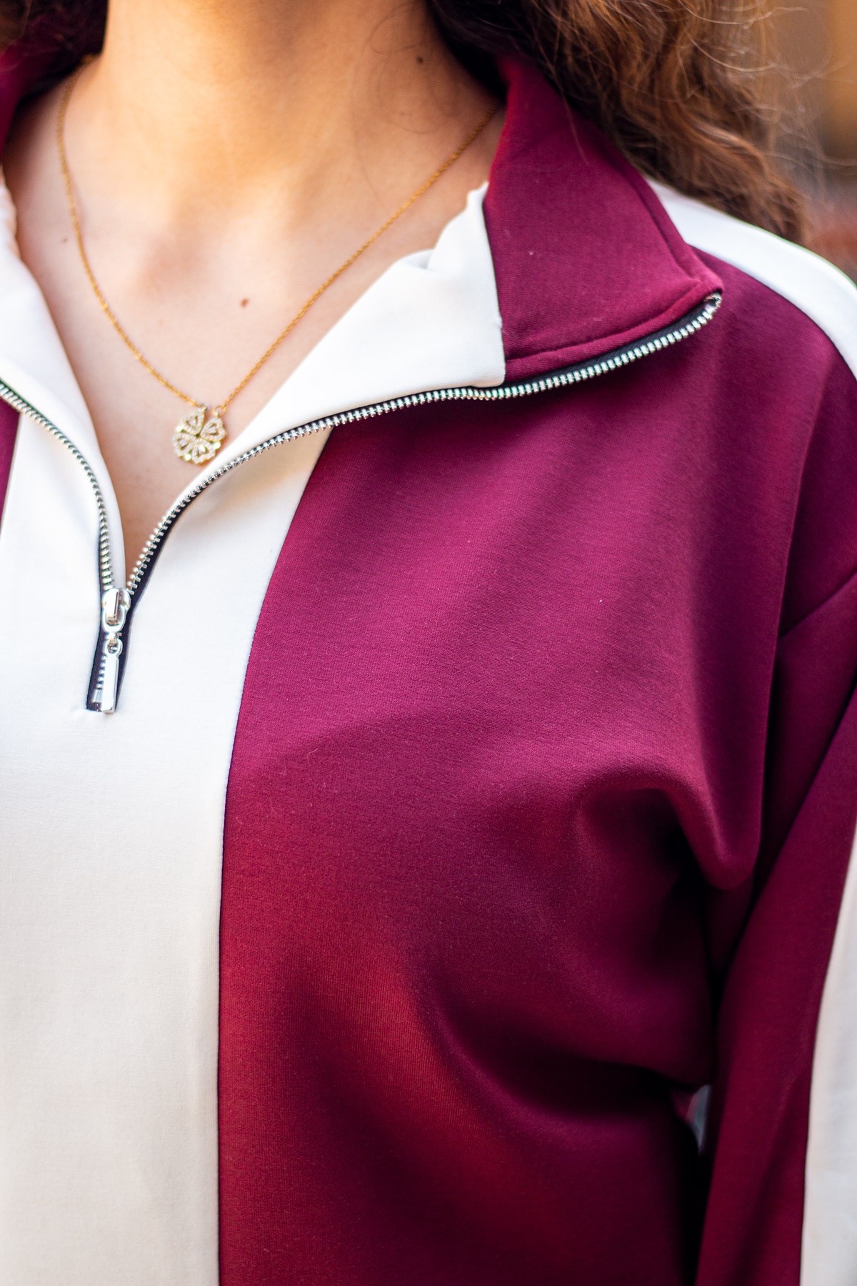 | Etiketler | Kadın Bordo Beyaz Modal Kumaş Yarım Fermuarlı Bel Büzgülü Lastikli Paça Eşofman Takımı 25KESTYOTA |