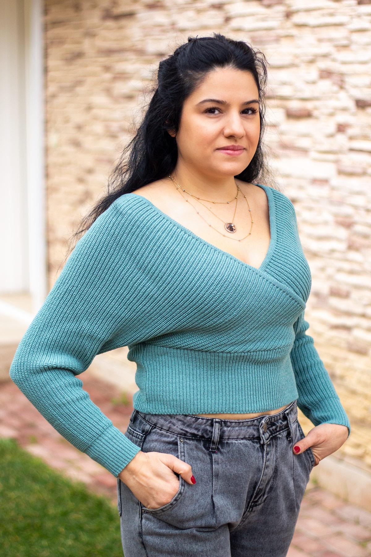 Kadın Çağla Kruvaze V Yaka Fitilli Tiko Kazak 20KKZKKRVZ