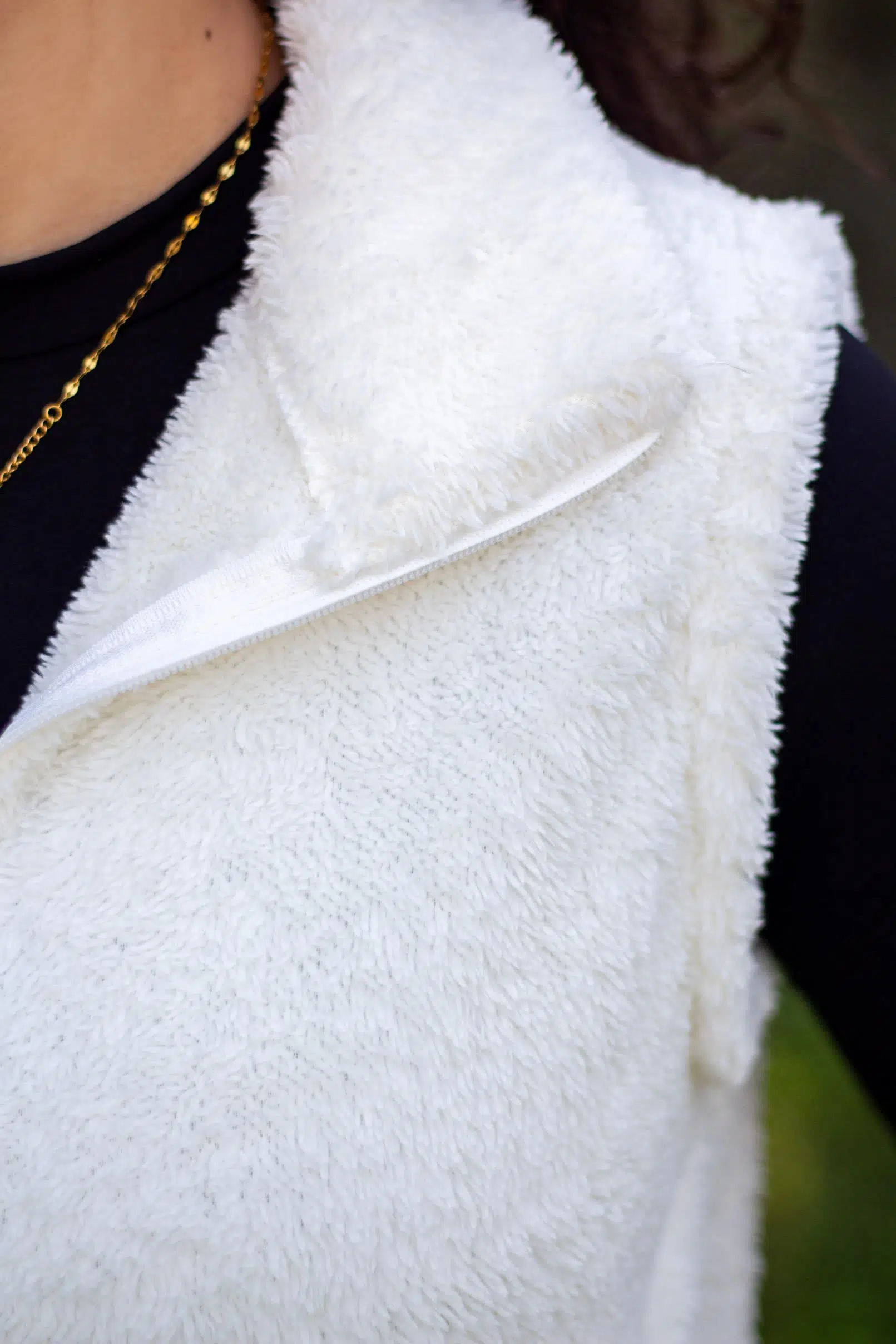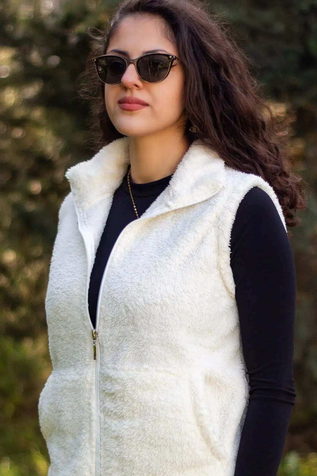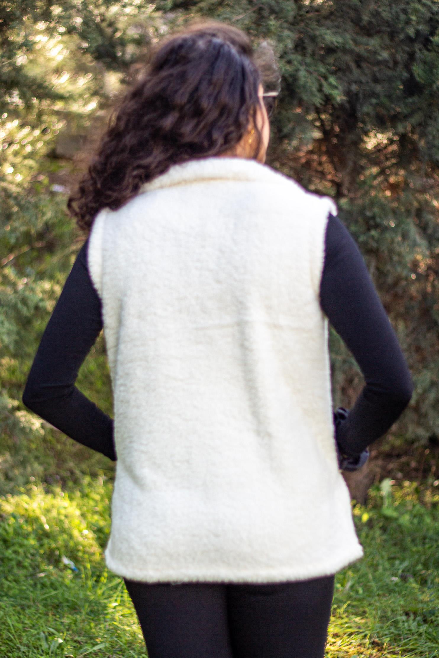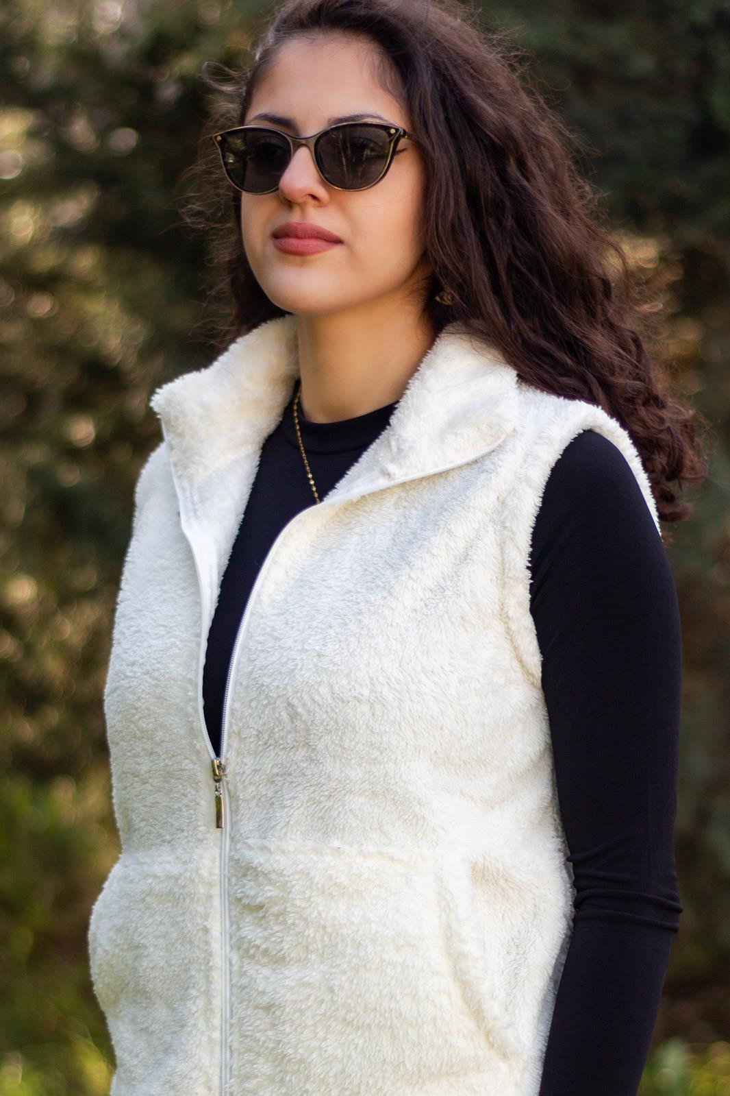 EtiketlerKadın Ekru Beyaz Dik Yaka Kalın Peluş Fermuarlı Yelek 24KYLKK215