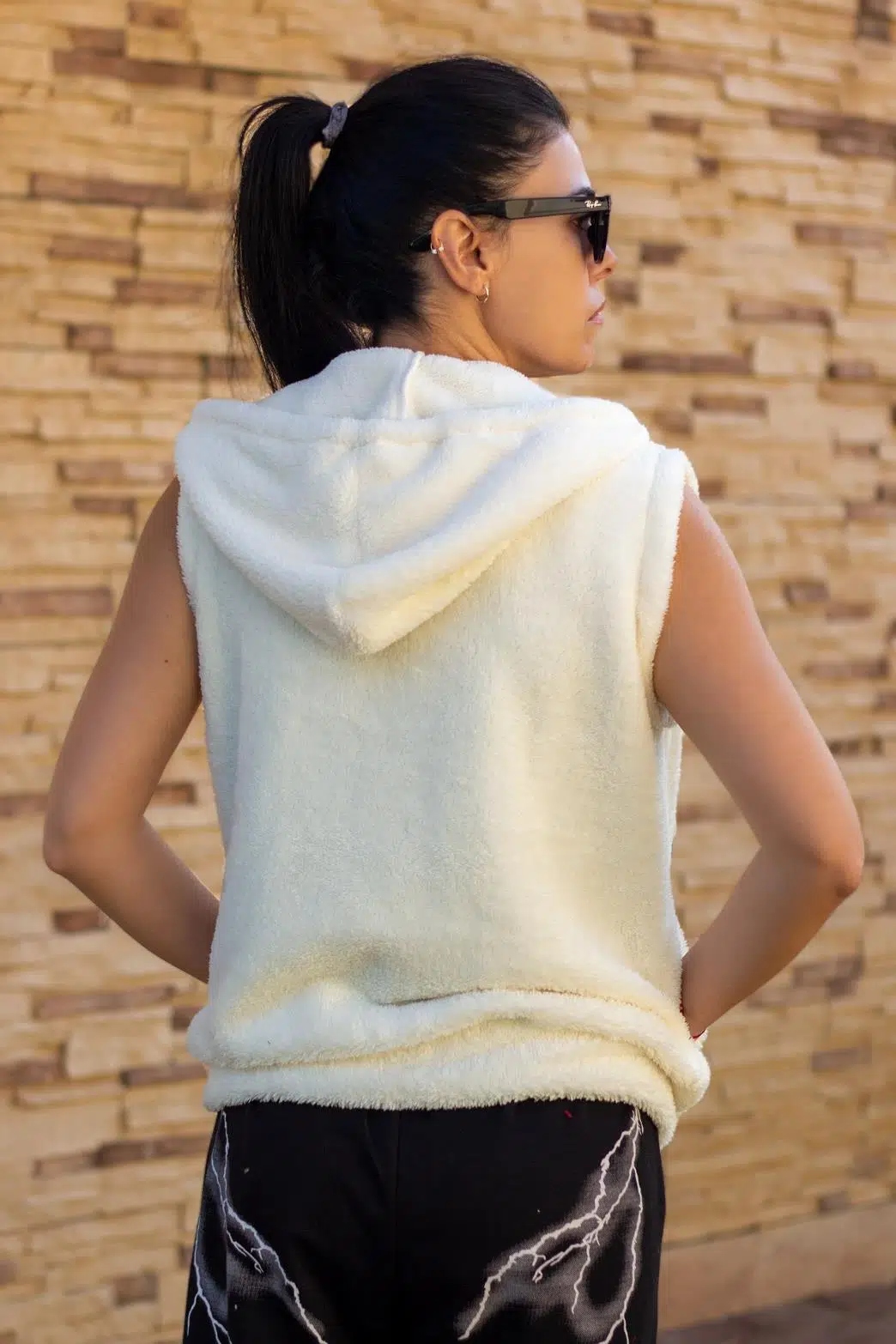 Çok yumuşak formda peluş yelek sıcak tutar. | Very soft form plush vest keeps you warm.