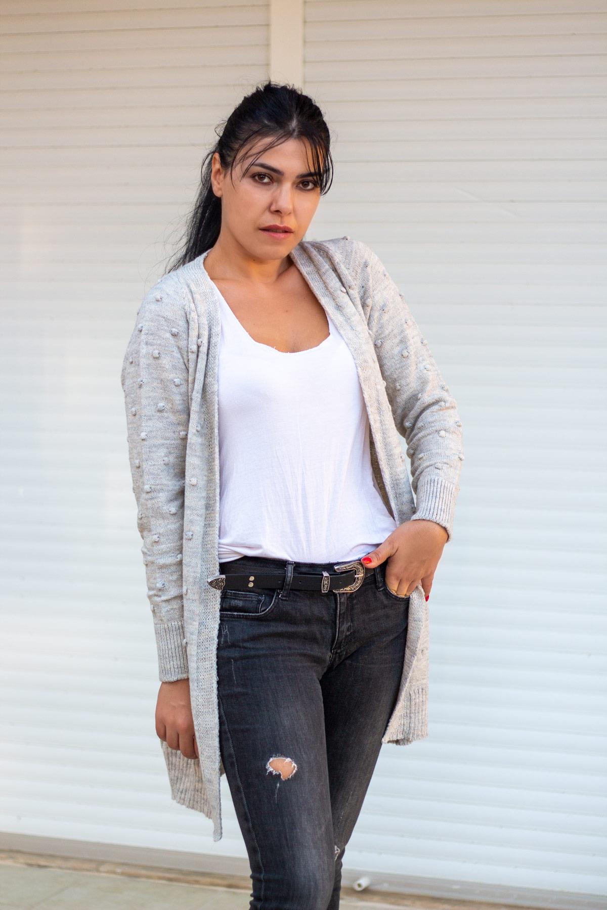 EtiketlerKadın Gri Ajurlu Örgü Triko Hırka Ceket 21KHRKPNTY