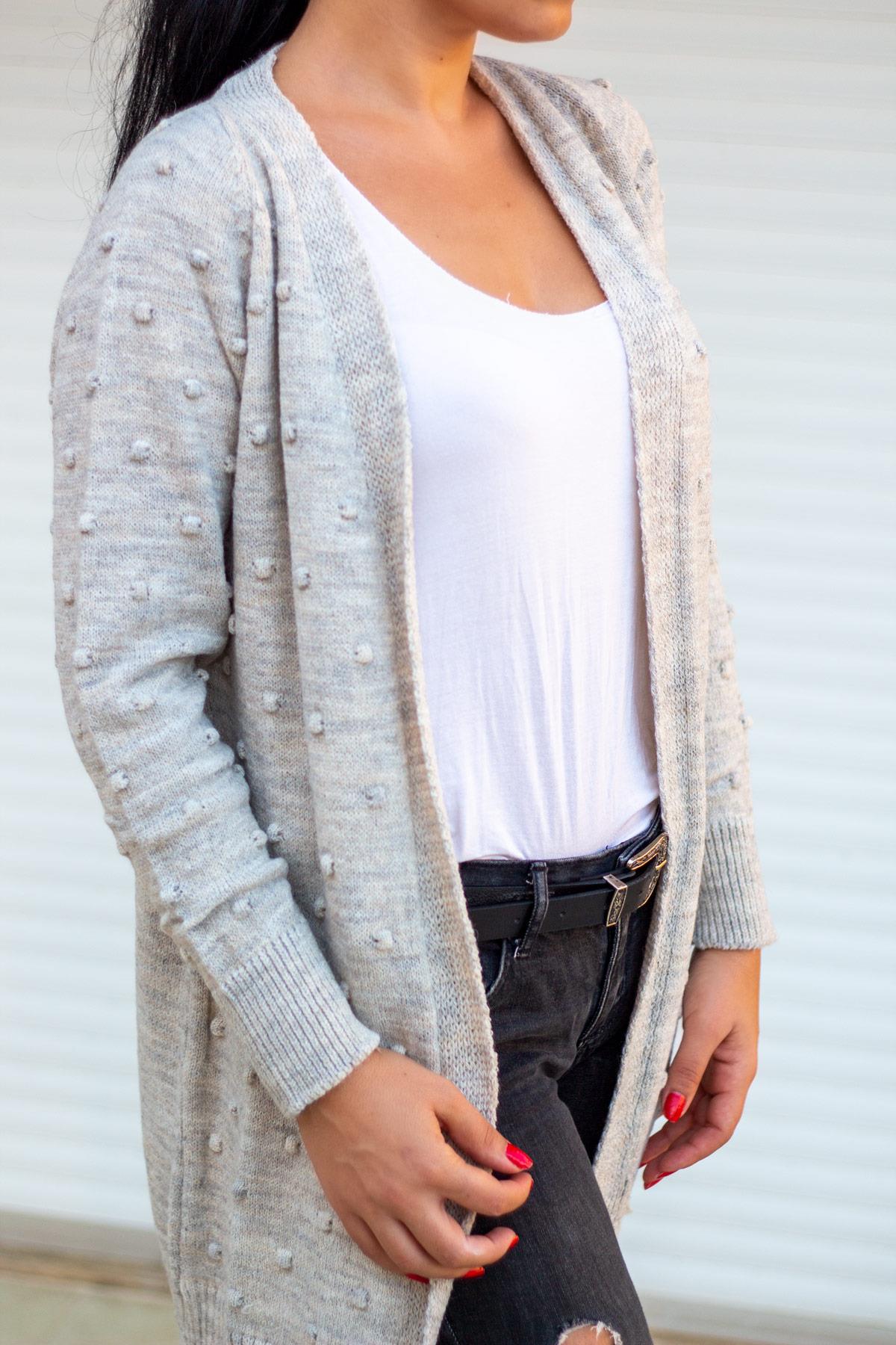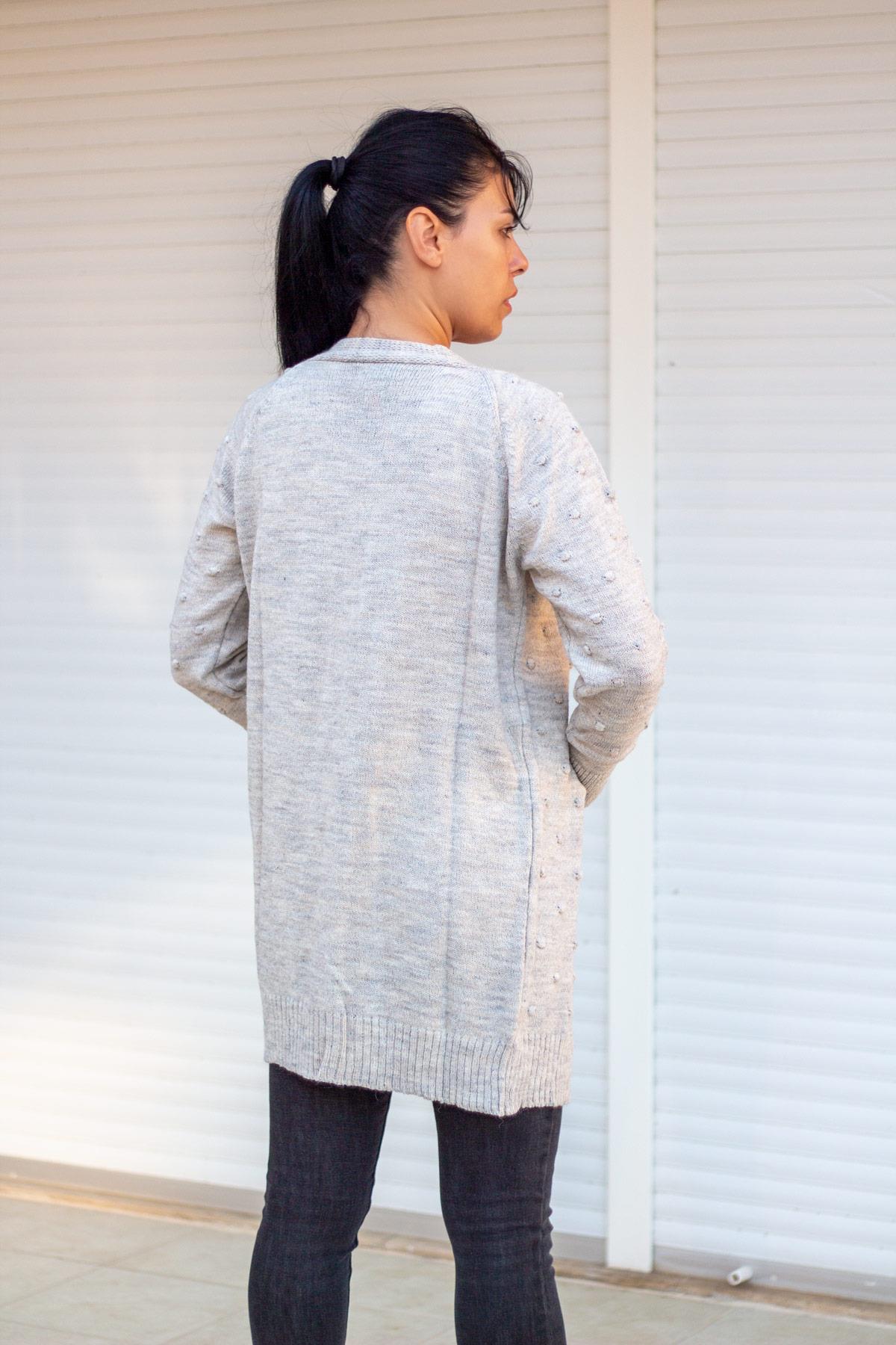 Kadın Gri Ajurlu Örgü Triko Hırka Ceket 21KHRKPNTY