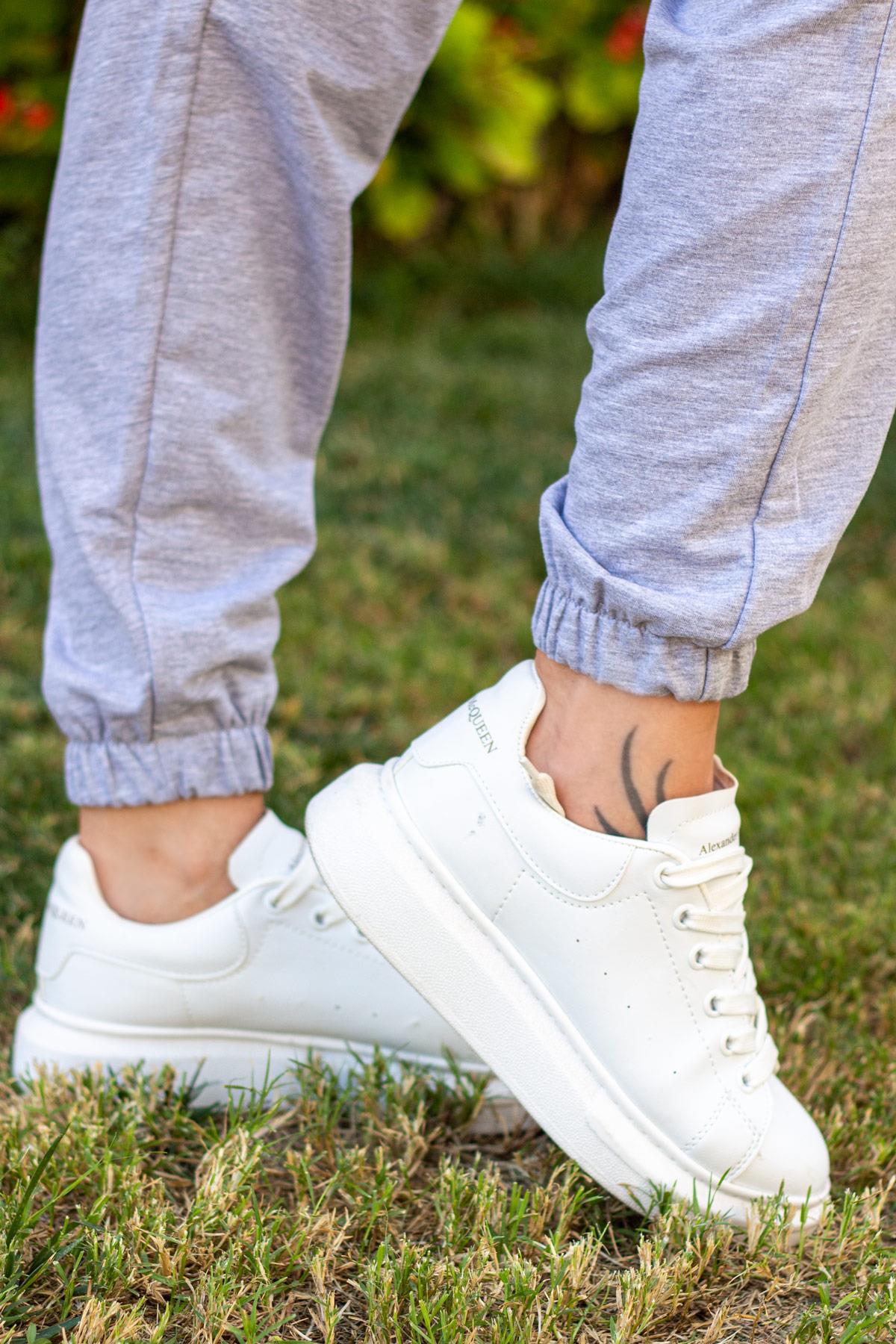 EtiketlerKadın Gri Bel Lastikli Paça Ribanalı Eşofman Altı 21KESAOPAC