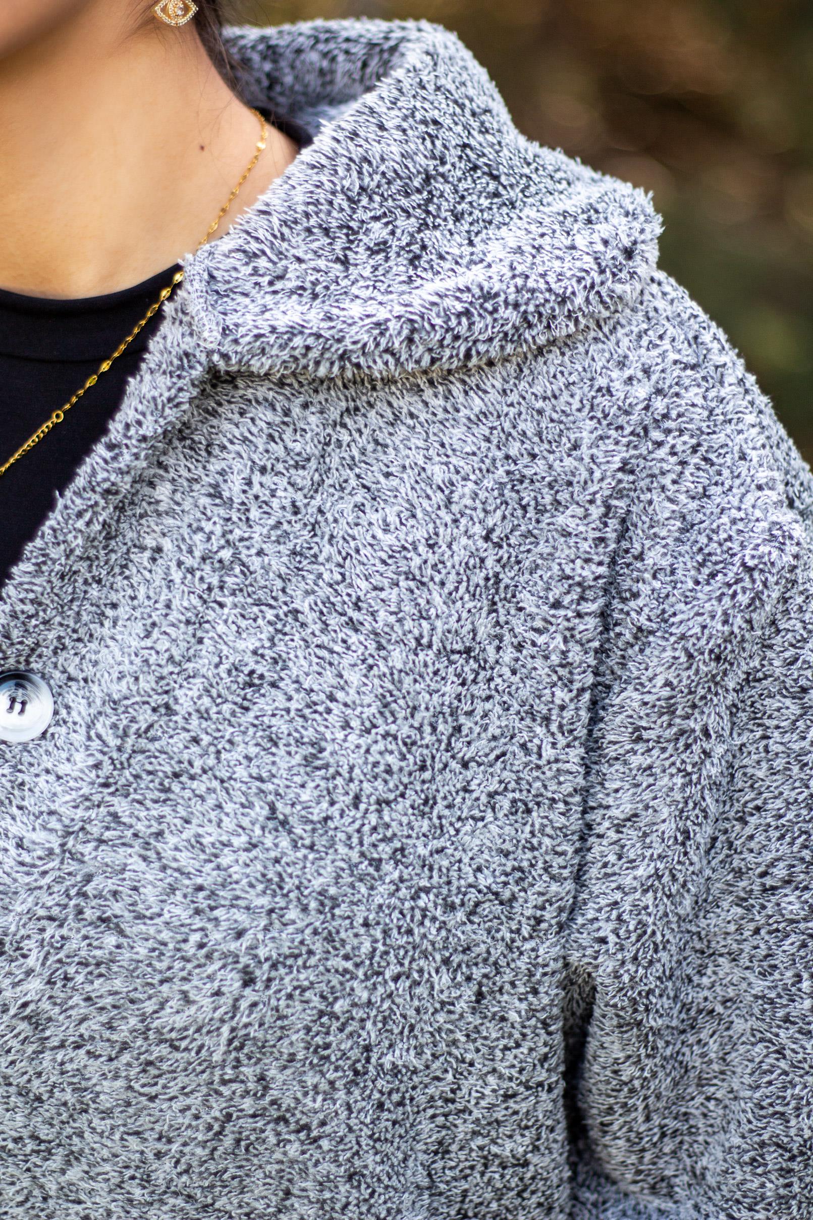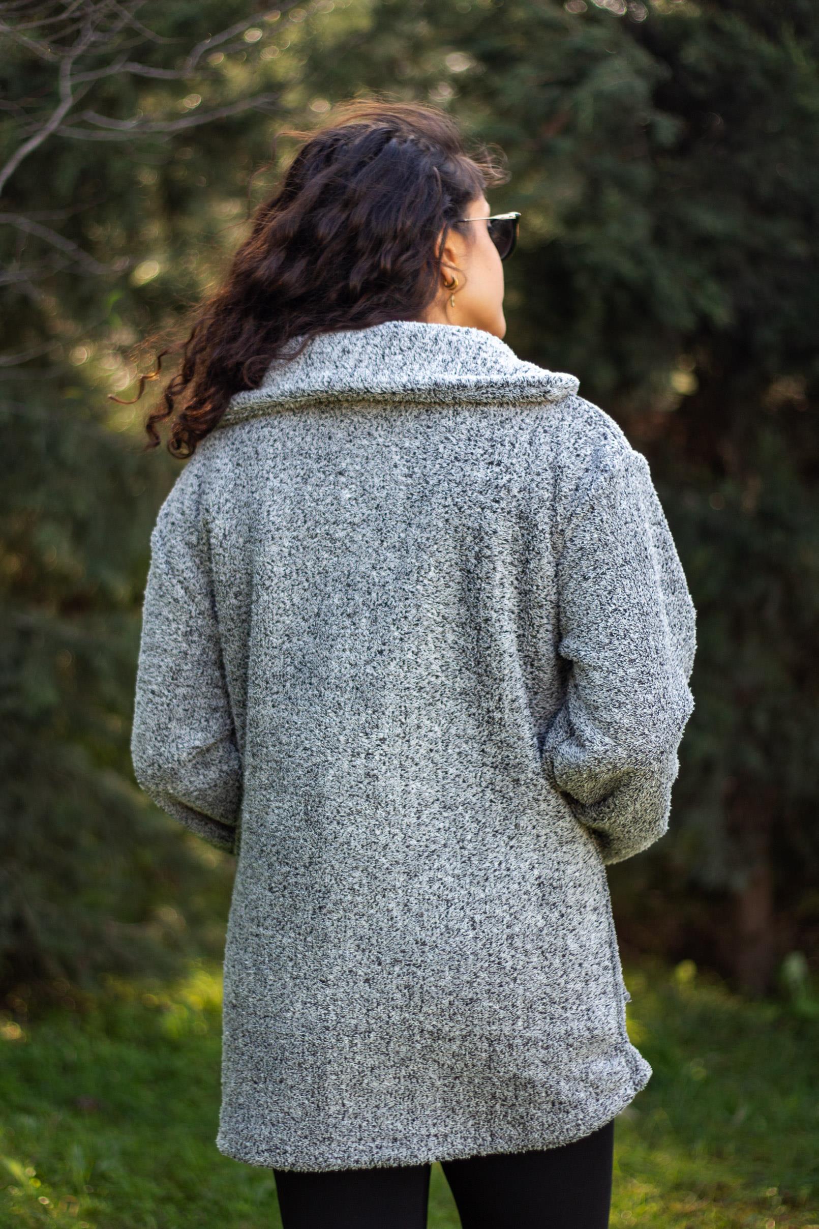| Etiketler | Kadın Gri Düğmeli Yüksek Yaka Uzun Bol Rahat Kesim Welsoft Peluş Ceket 24KCKTDUME |