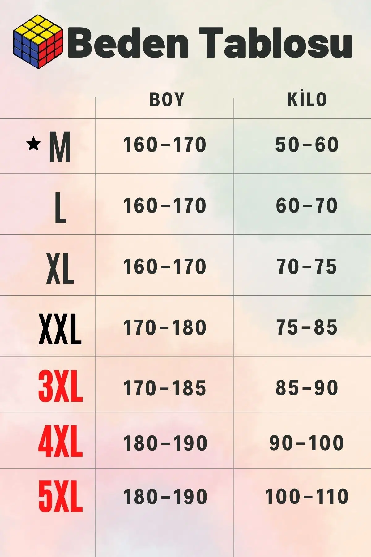 Beden aralığı: (Size range:) M - L - XL - XXL -- 3XL - 4XL - 5XL