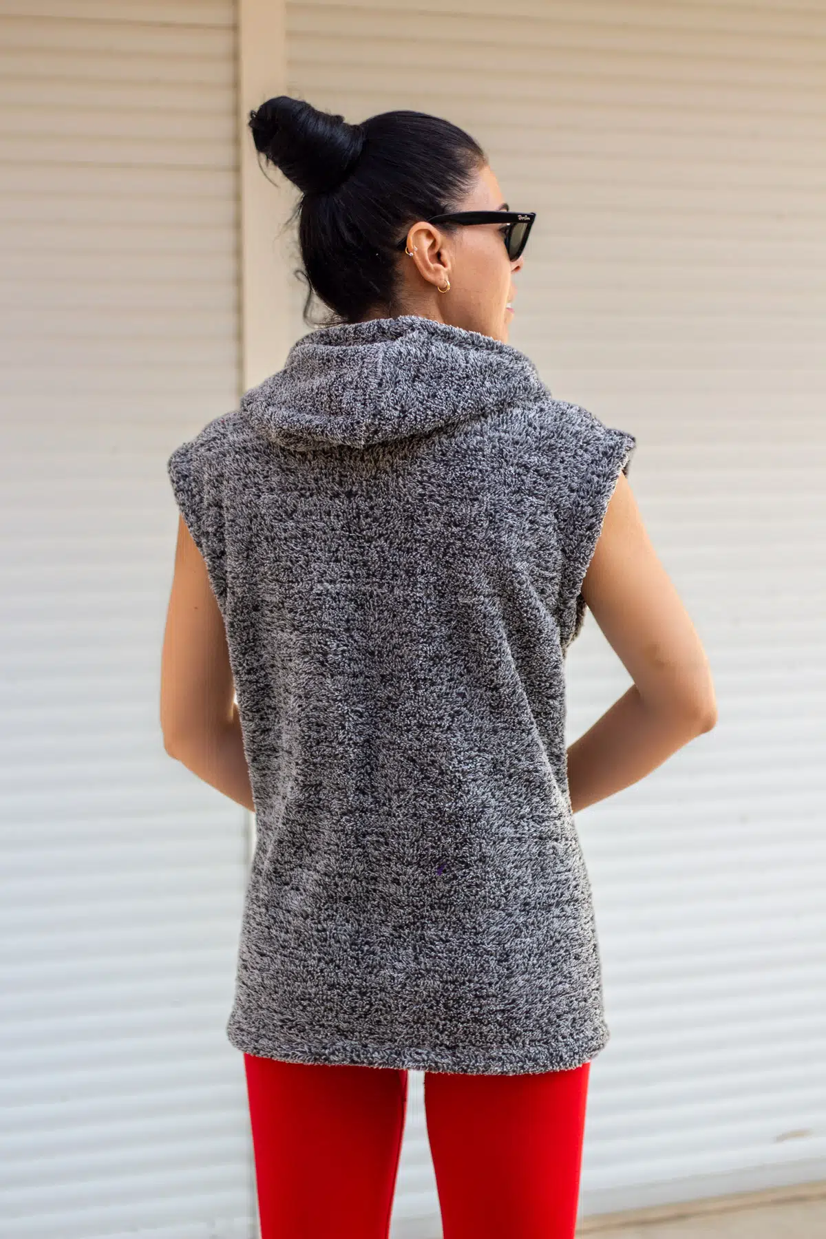 Çok yumuşak formda peluş yelek sıcak tutar. | Very soft form plush vest keeps you warm.