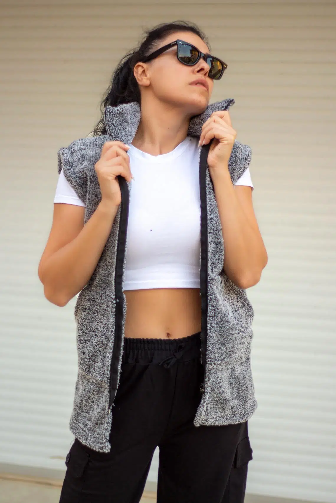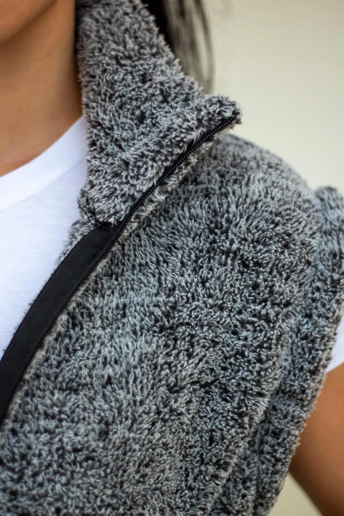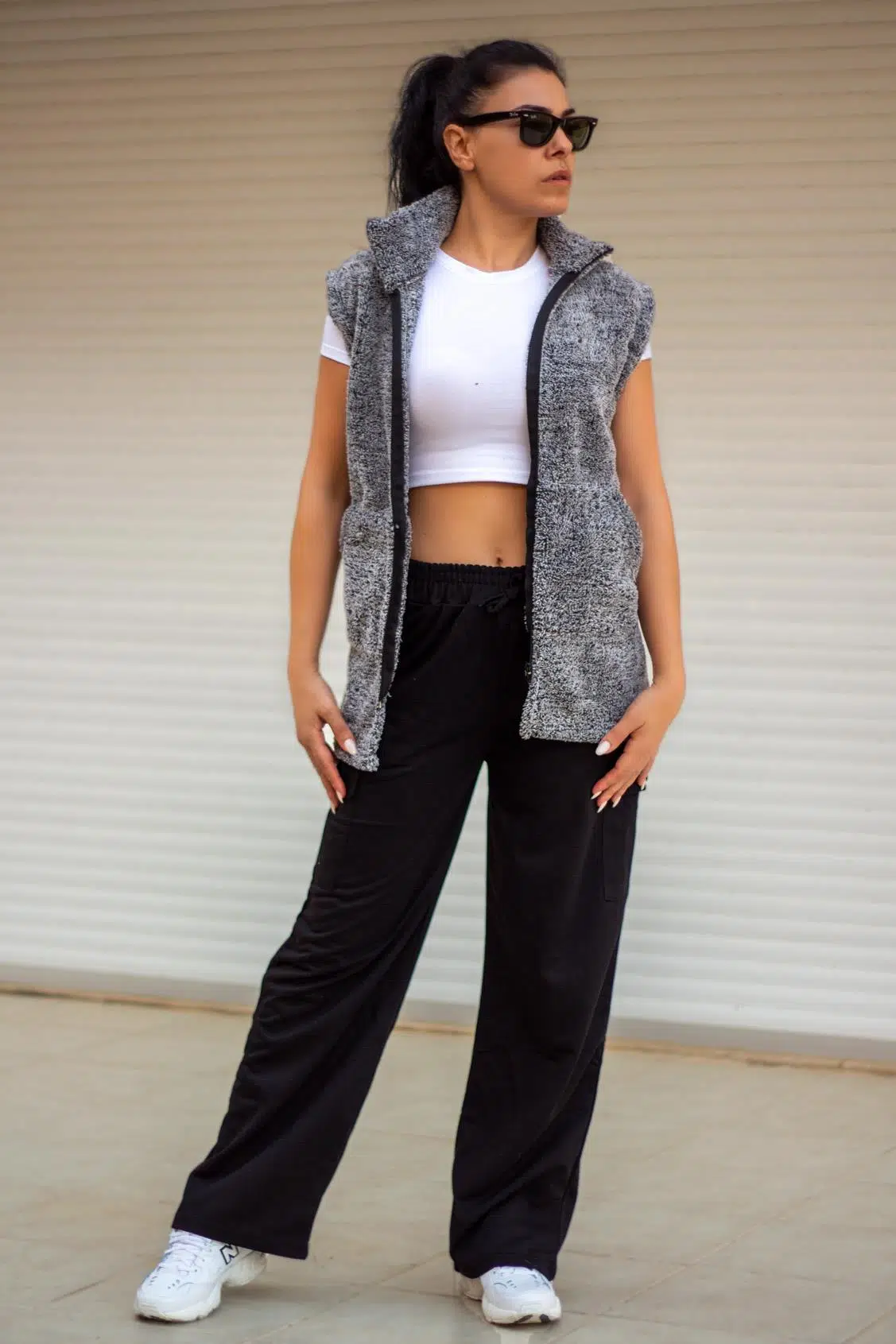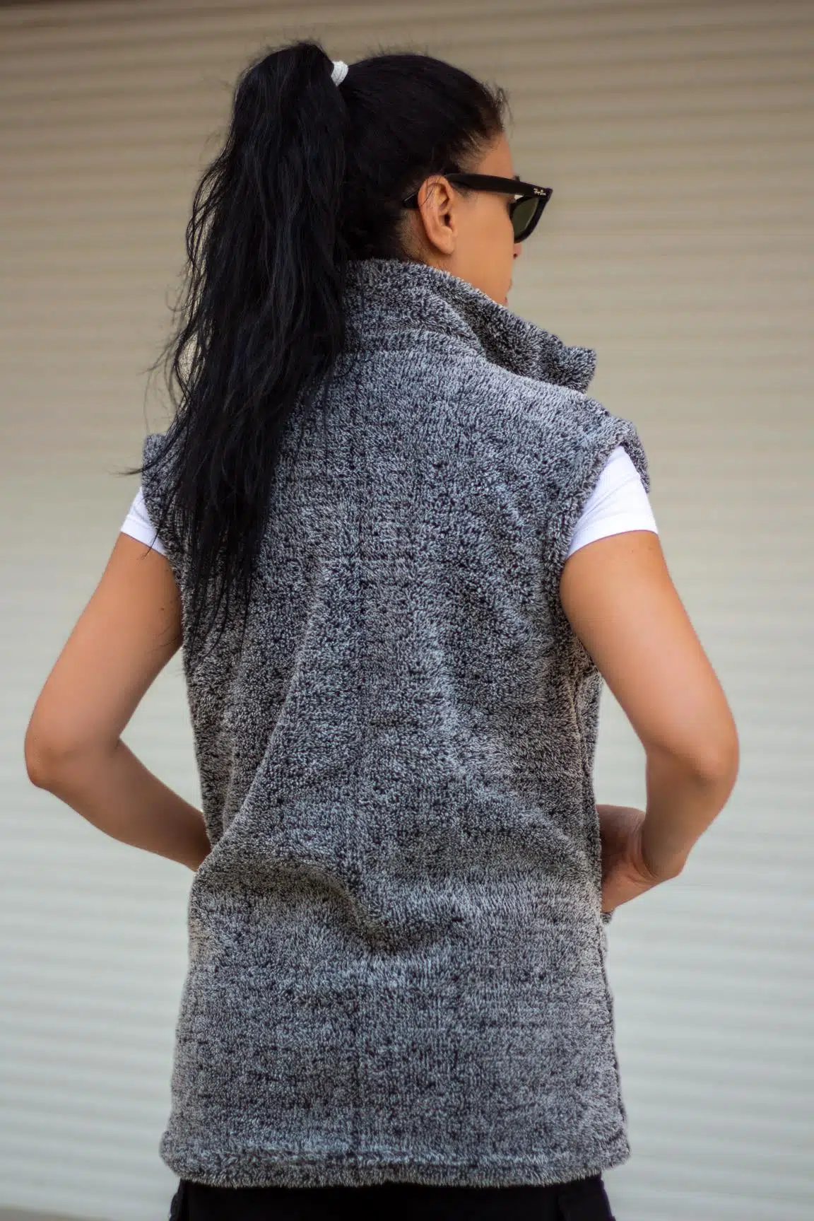 EtiketlerKadın Gri Peluş Welsoft Kalın Fermuarlı Hakim Yaka Yelek 23KYLKMY10
