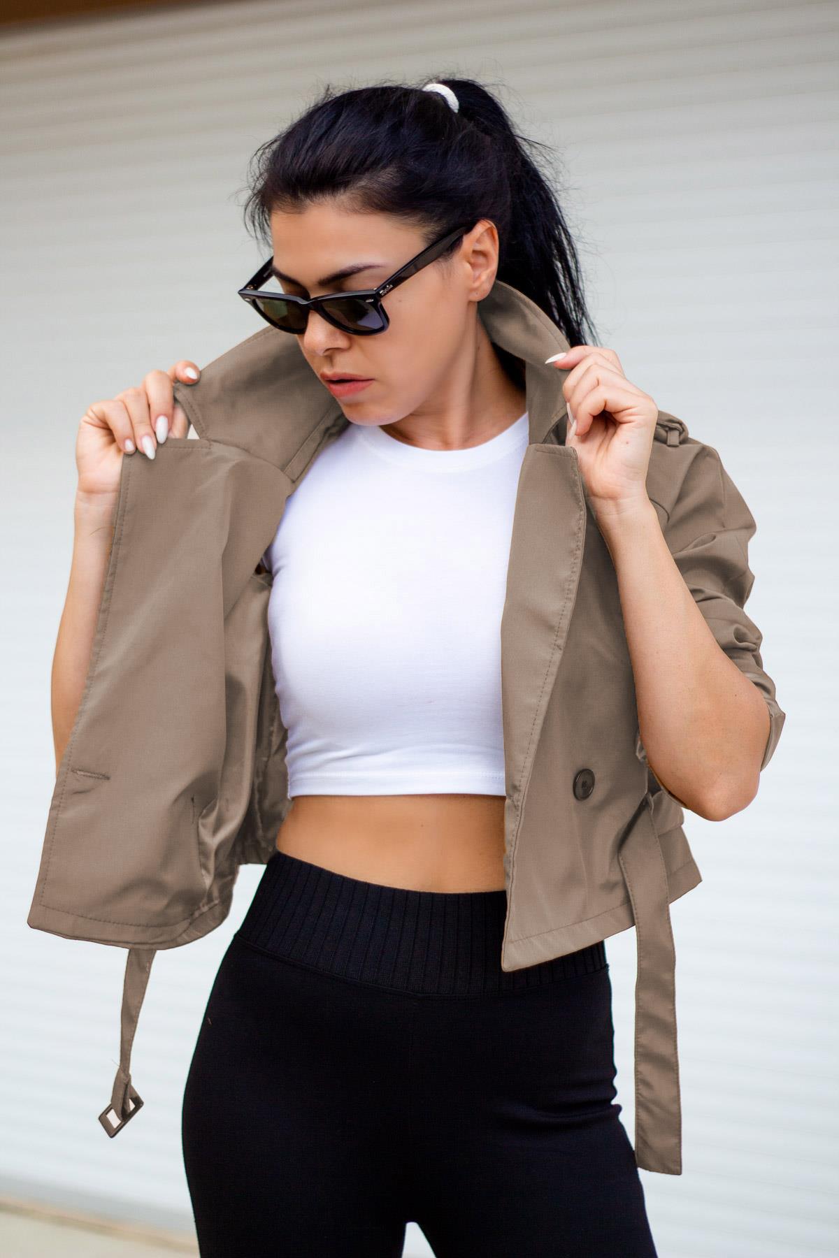 | Etiketler | Kadın Gri Taş Kemer Detaylı Su İtici Kısa Crop Oversize Trençkot 23KTRTP014 |