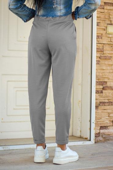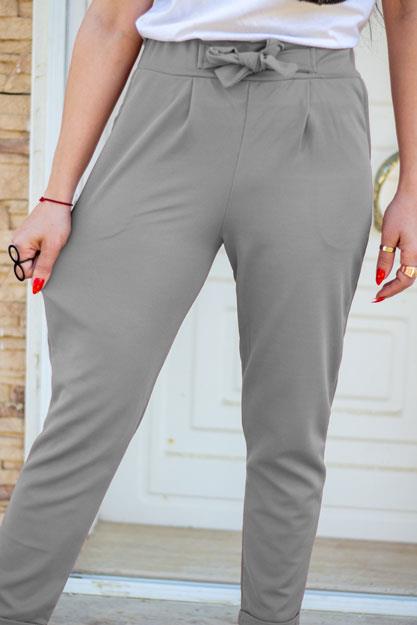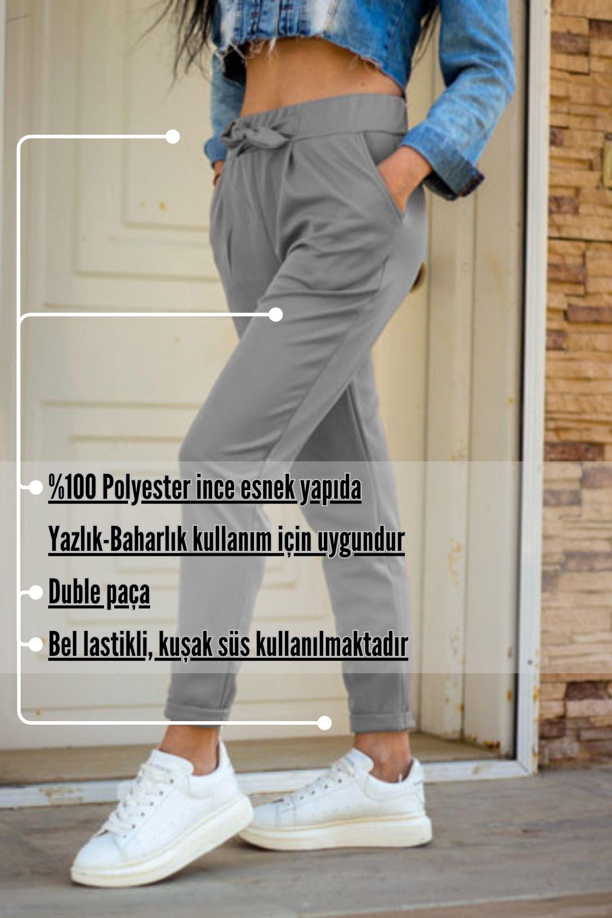 Kadın Gri Yüksel Bel Duble Paça Esnek Havuç Pantolon 23KPNTHAVC
