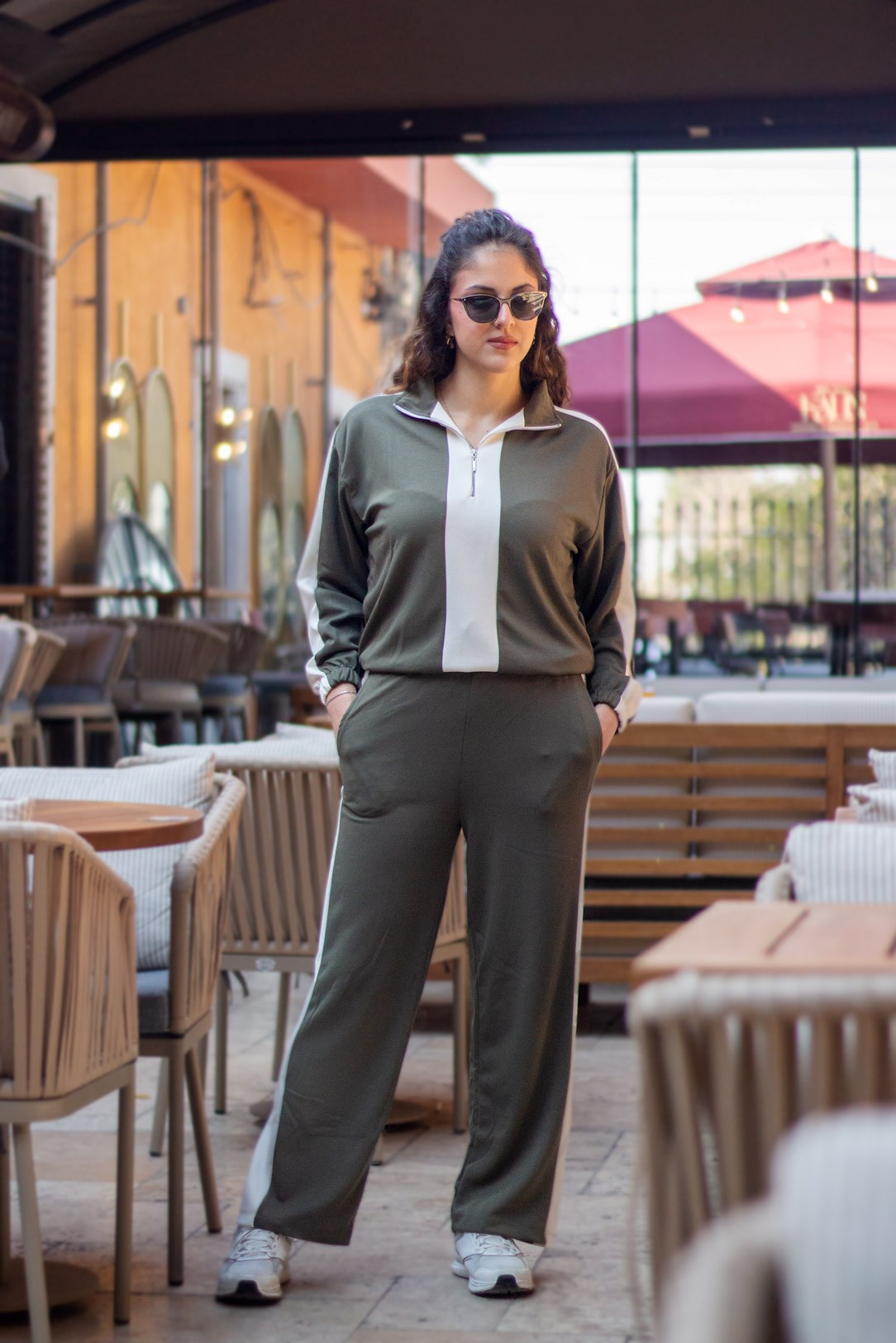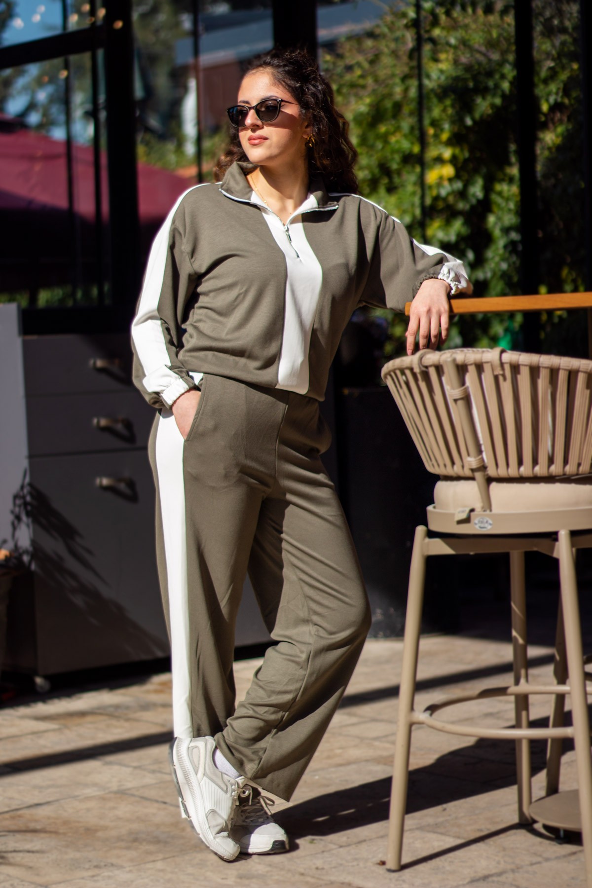 | Etiketler | Kadın Haki Beyaz Modal Kumaş Yarım Fermuarlı Bel Büzgülü Lastikli Paça Eşofman Takımı 25KESTYOTA |