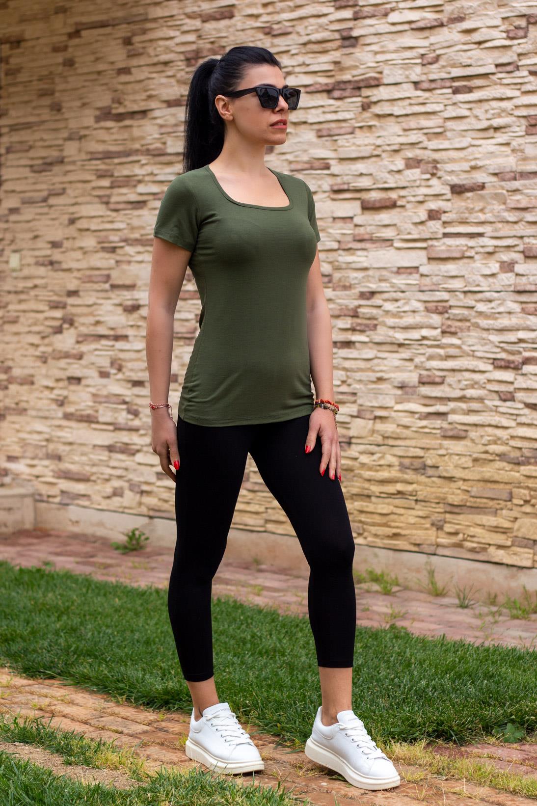 EtiketlerKadın Haki Kısa Kollu Pamuk Kare Yaka İnce Body 21KBDYKKRE
